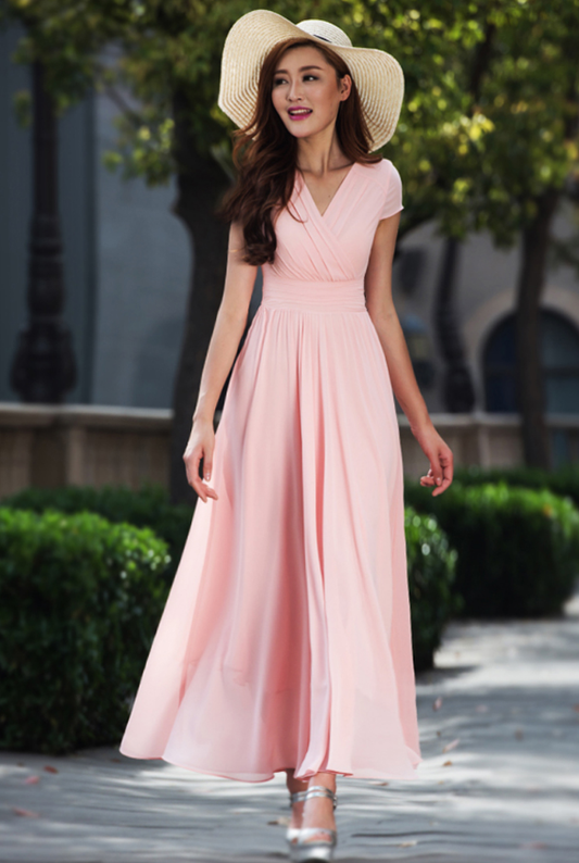 Light Blue Chiffon Dress – Fit & Flare Summer Swing Midi | Xiaolizi 5206