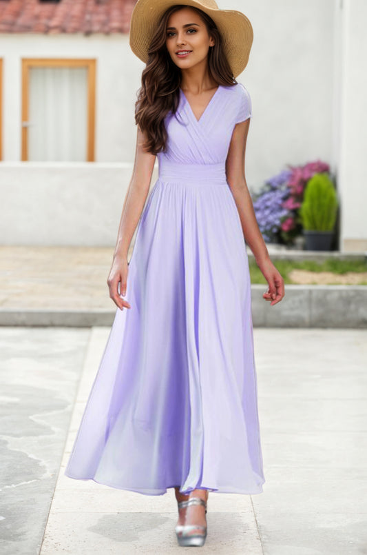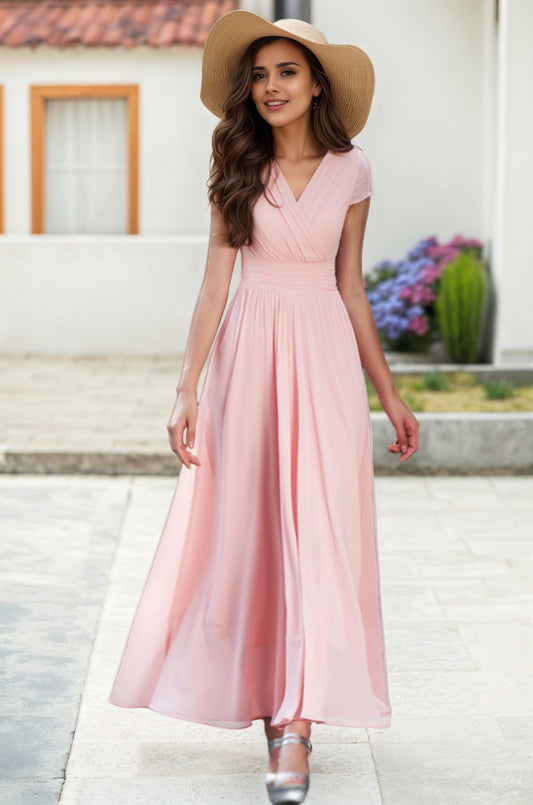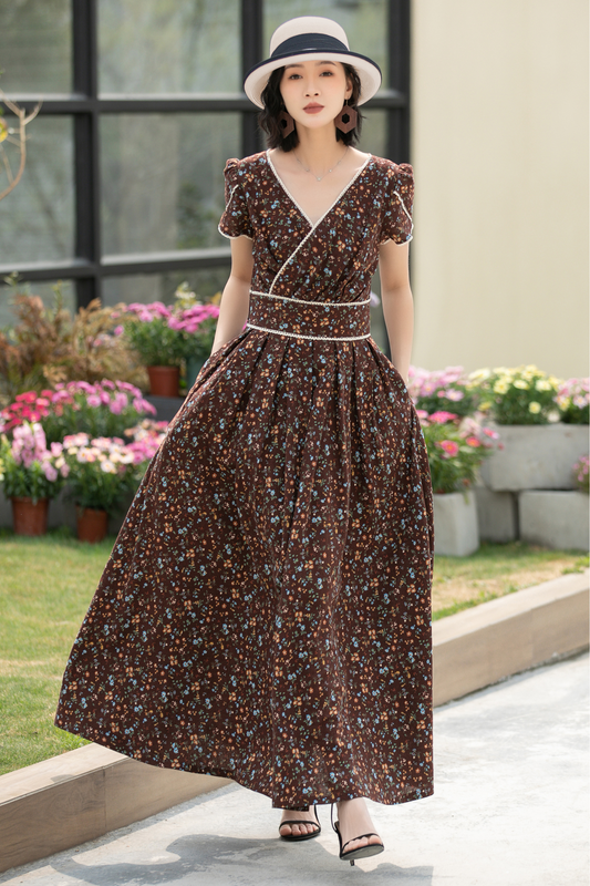 Vintage Floral Linen Cotton Maxi Dress – Women’s Puff Sleeve Wedding & Prom Dress 5833