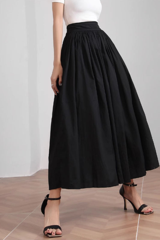 Handmade Charcoal Grey Plaid Wool Maxi Skirt – High Waist Winter Elegance | Xiaolizi 6426