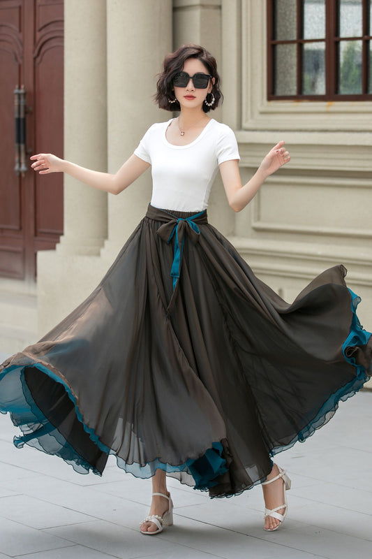 Reversible Chiffon Maxi Skirt – Two-Tone Swing Circle Skirt for Summer 5171