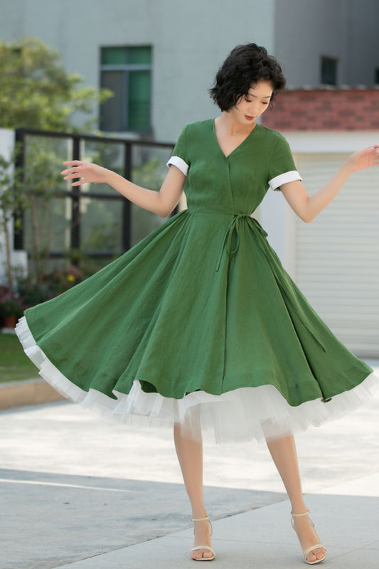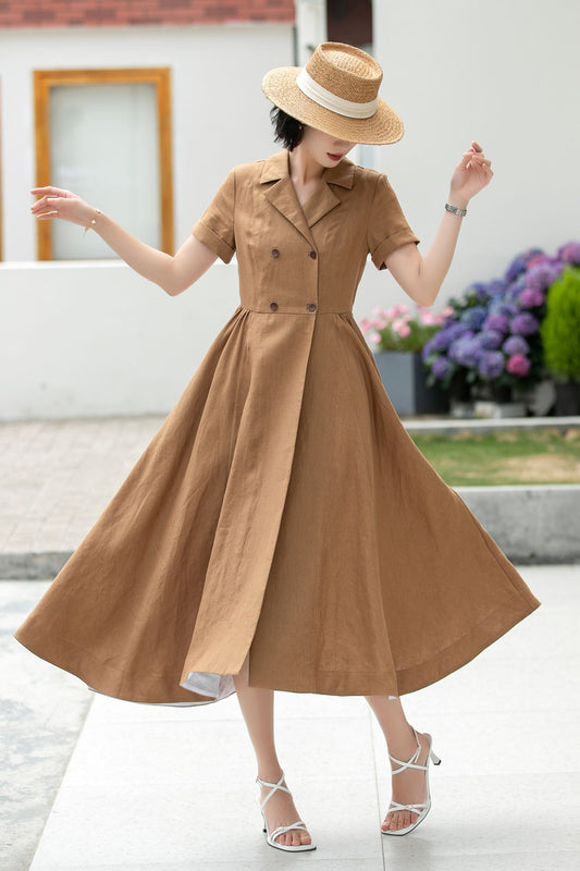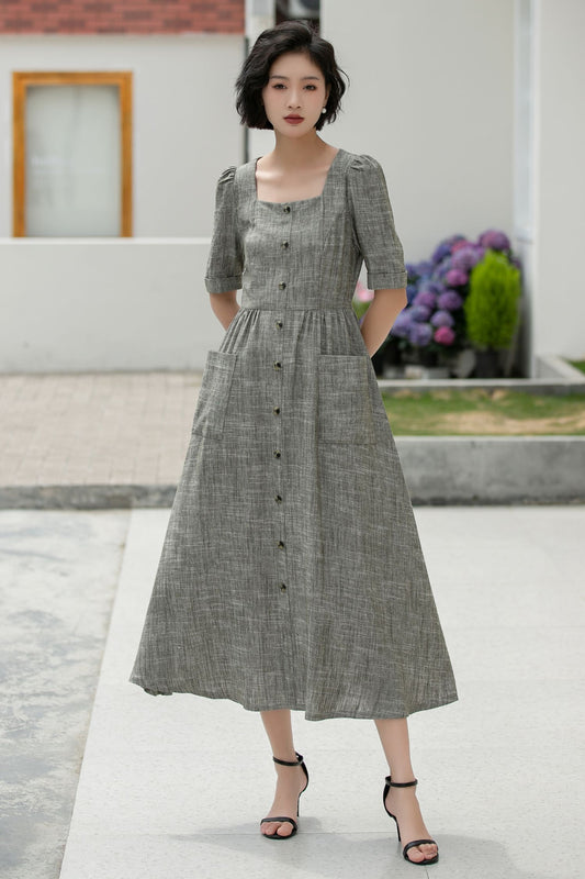 Wool Blend Fit and Flare Midi Dress – Vintage Winter Dress with 3/4 Sleeves 5301