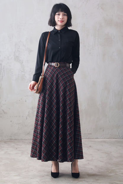 Plaid Wool Maxi Skirt – Vintage British Tartan High Waist Winter Skirt 3100