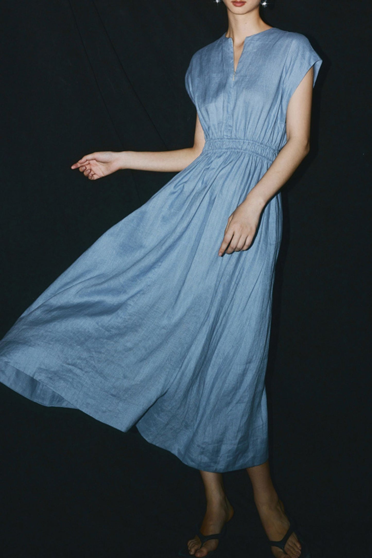 Unleash your inner adventurer with our A-line blue summer linen dress for women! Made of high-quality linen, this dress is perfect for taking risks and exploring new horizons. Its flowy A-line silhouette and cool summer shade will make you stand out in any crowd. Take on the season with confidence and style in our HY0021 dress!