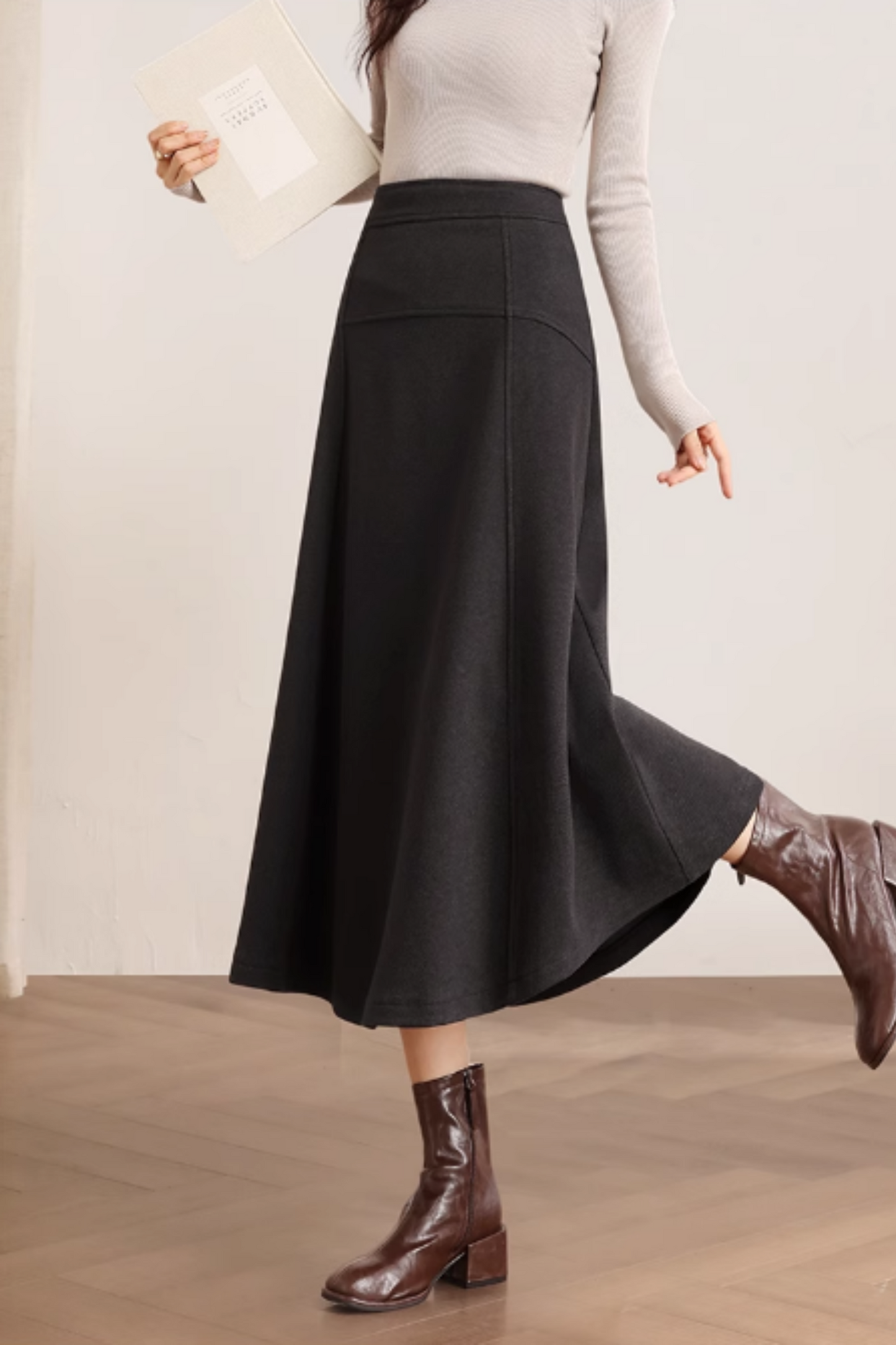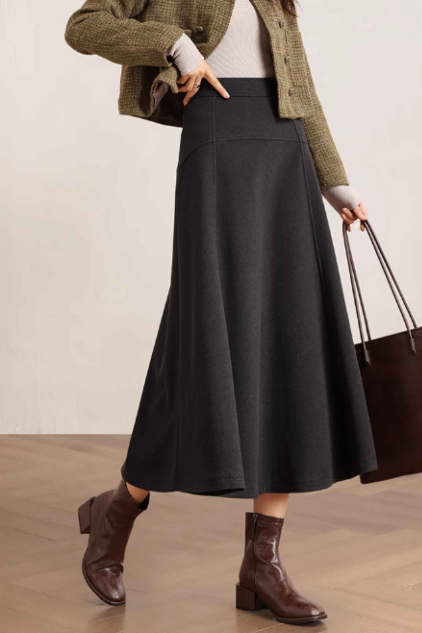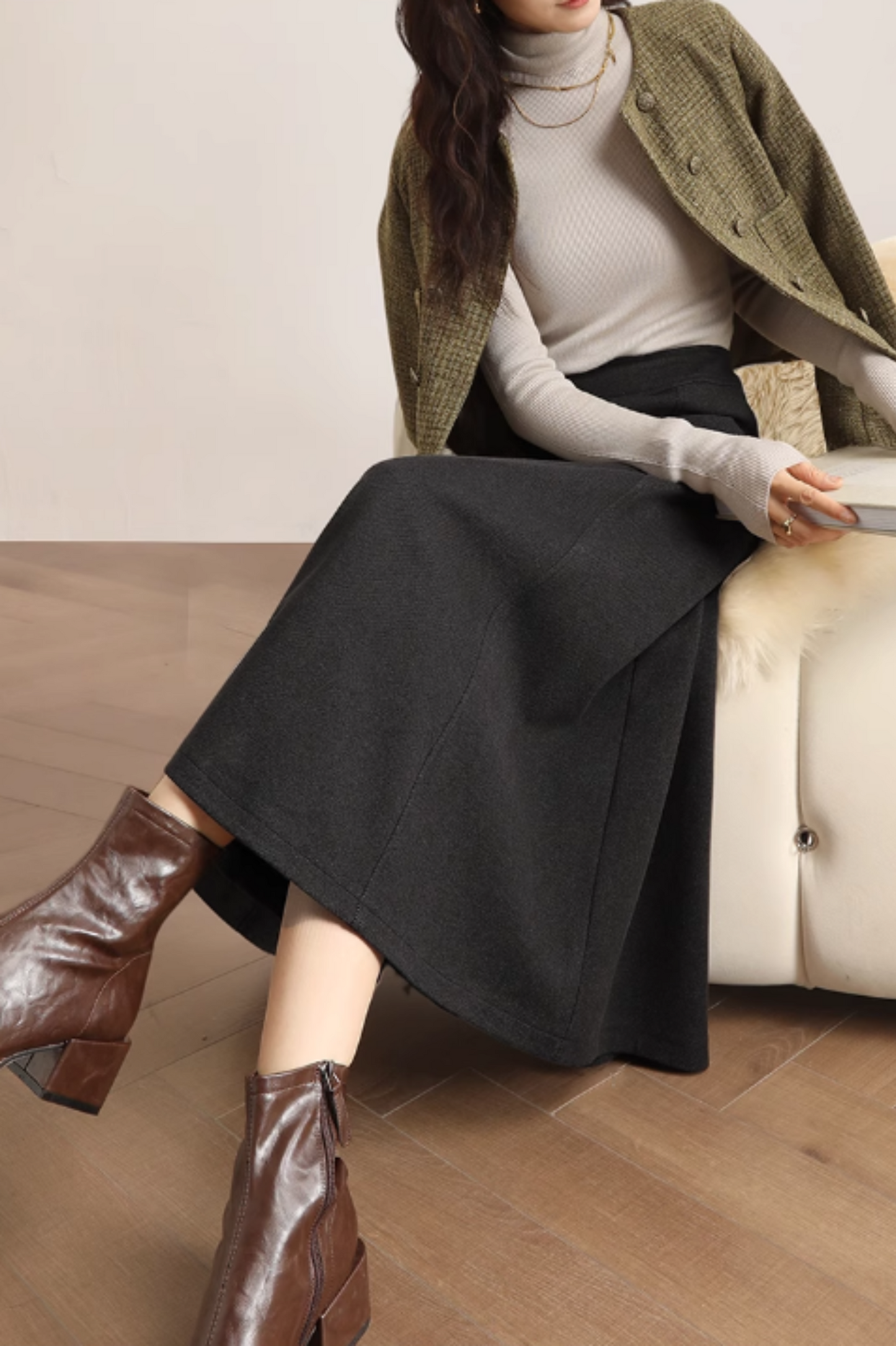 Expertly crafted from high-quality wool, this A-line midi skirt offers both style and warmth for the winter season. Its sleek design and flattering fit make it a versatile addition to any wardrobe. Made with durable materials, this skirt is sure to become a staple piece for any winter outfit.