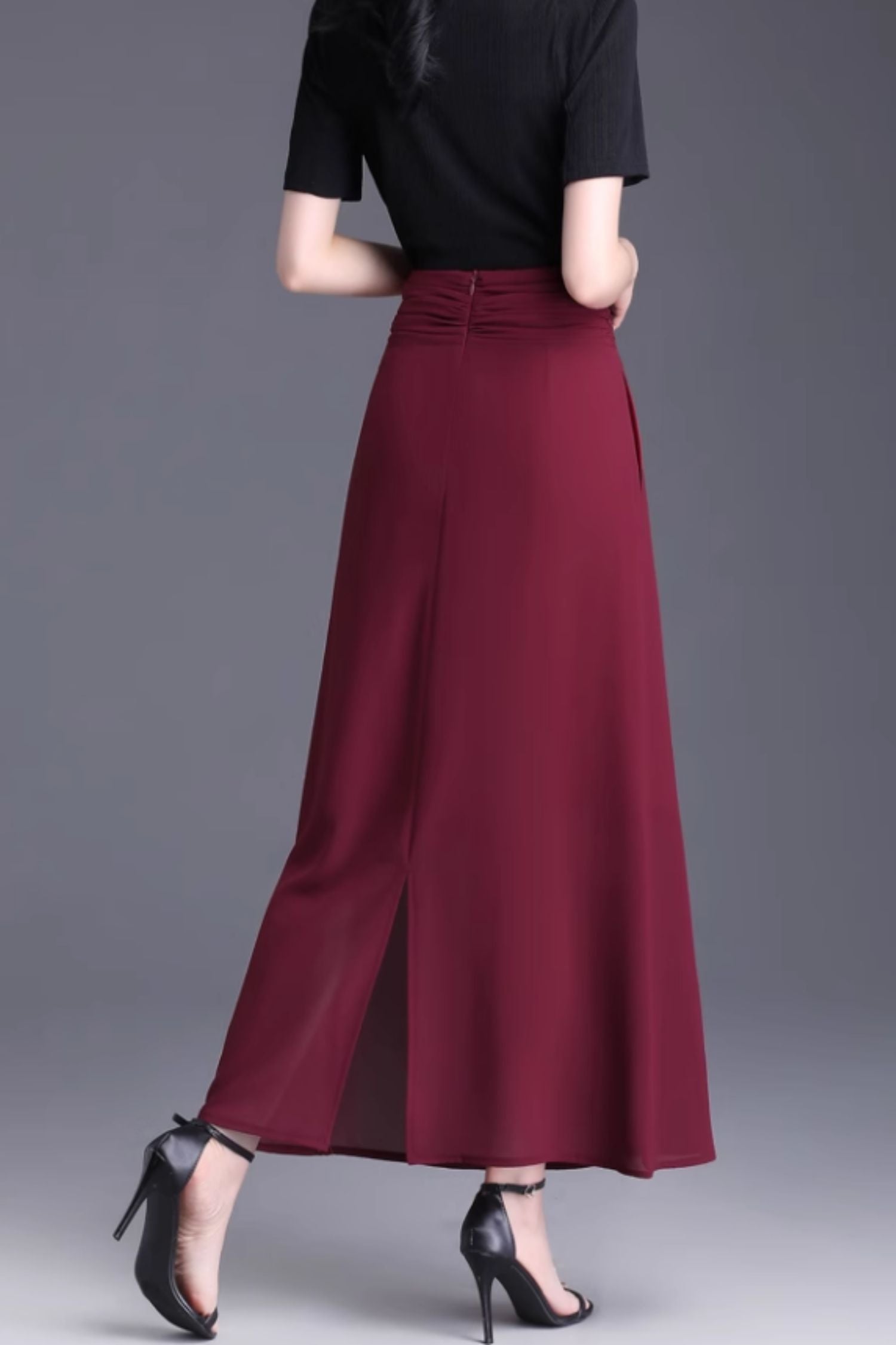 This A-line long summer chiffon skirt offers lightweight comfort and elegant flow, perfect for warm weather. Its breathable fabric ensures all-day freshness, while the flattering silhouette suits various body types, making it a versatile addition to your summer wardrobe.
