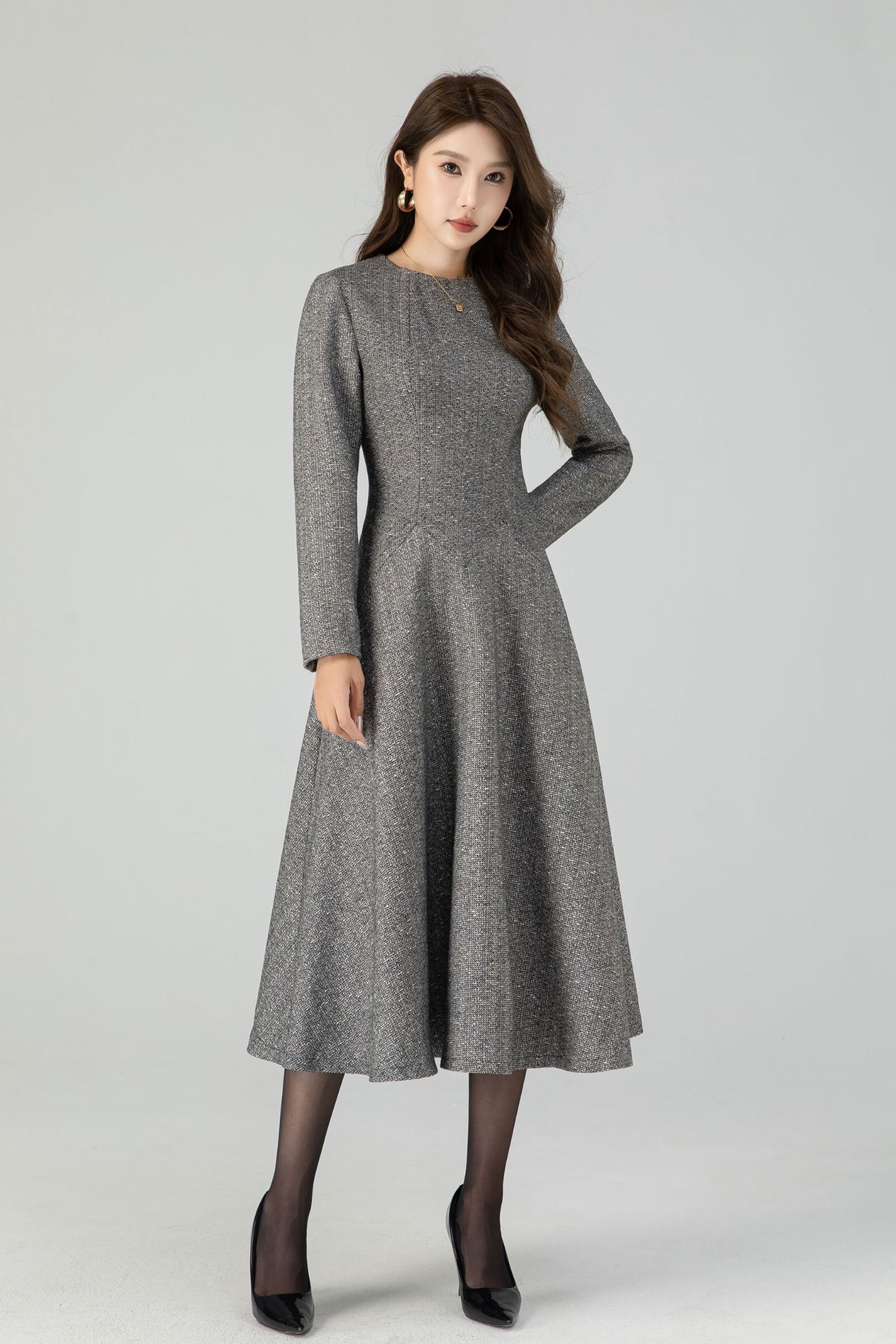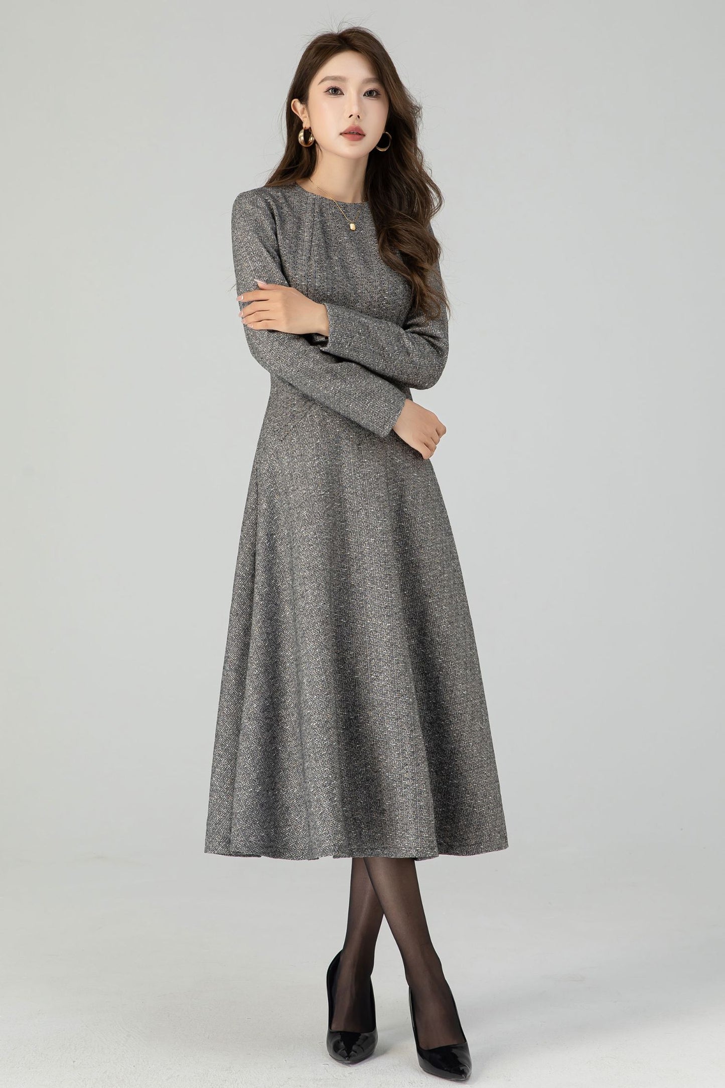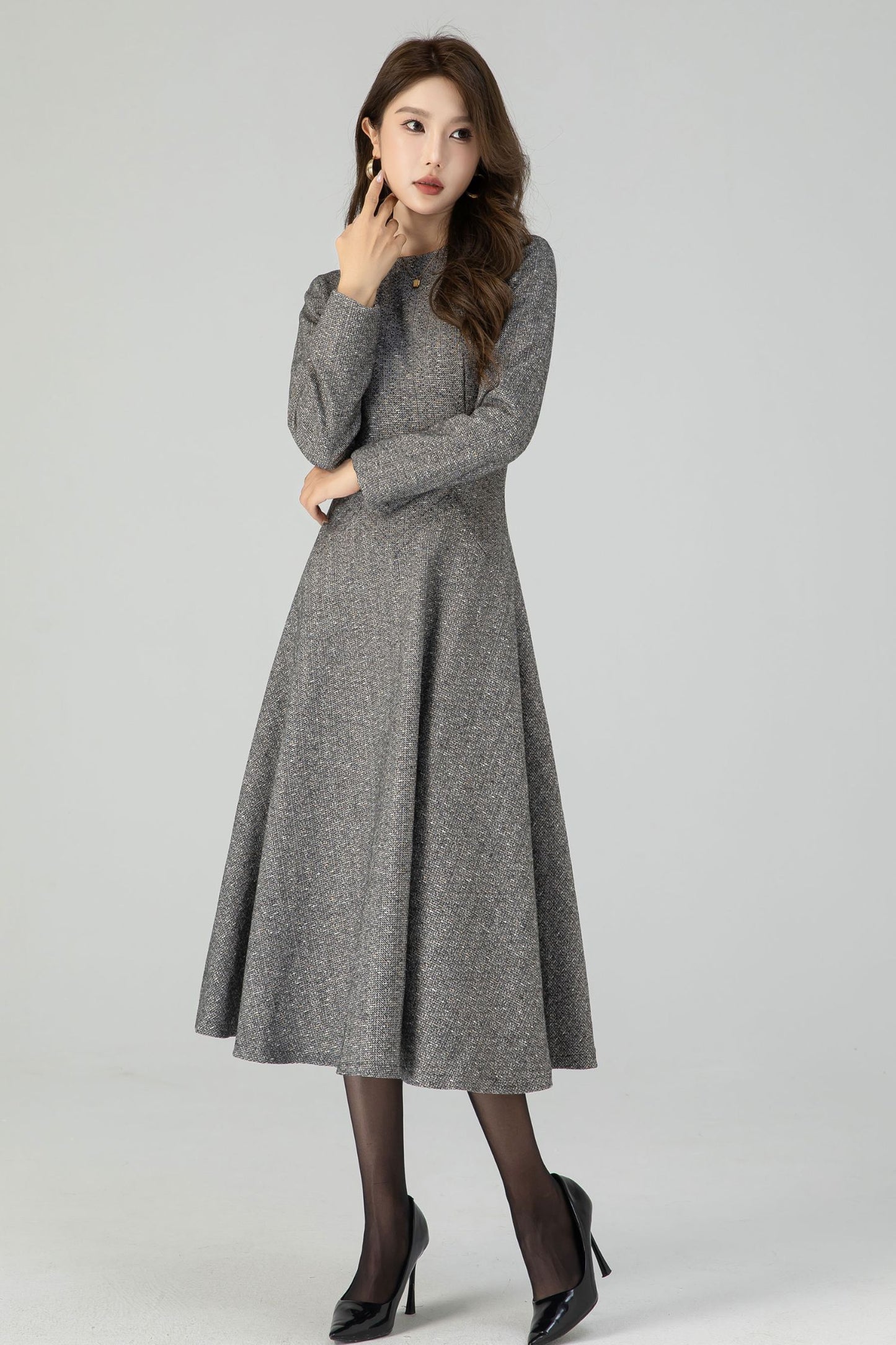 A-Line winter gray wool dress 4548- Size XS #CK2301174