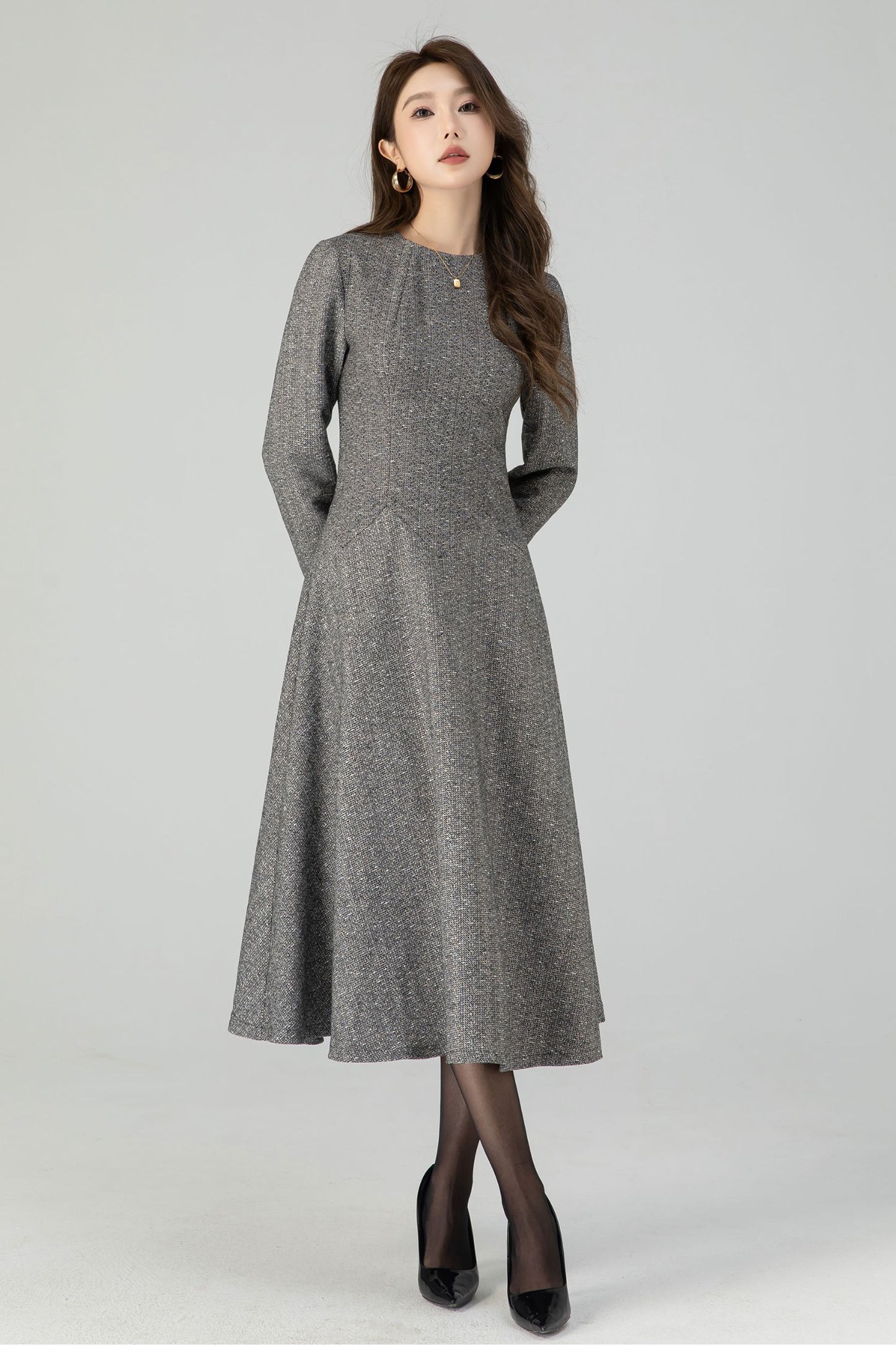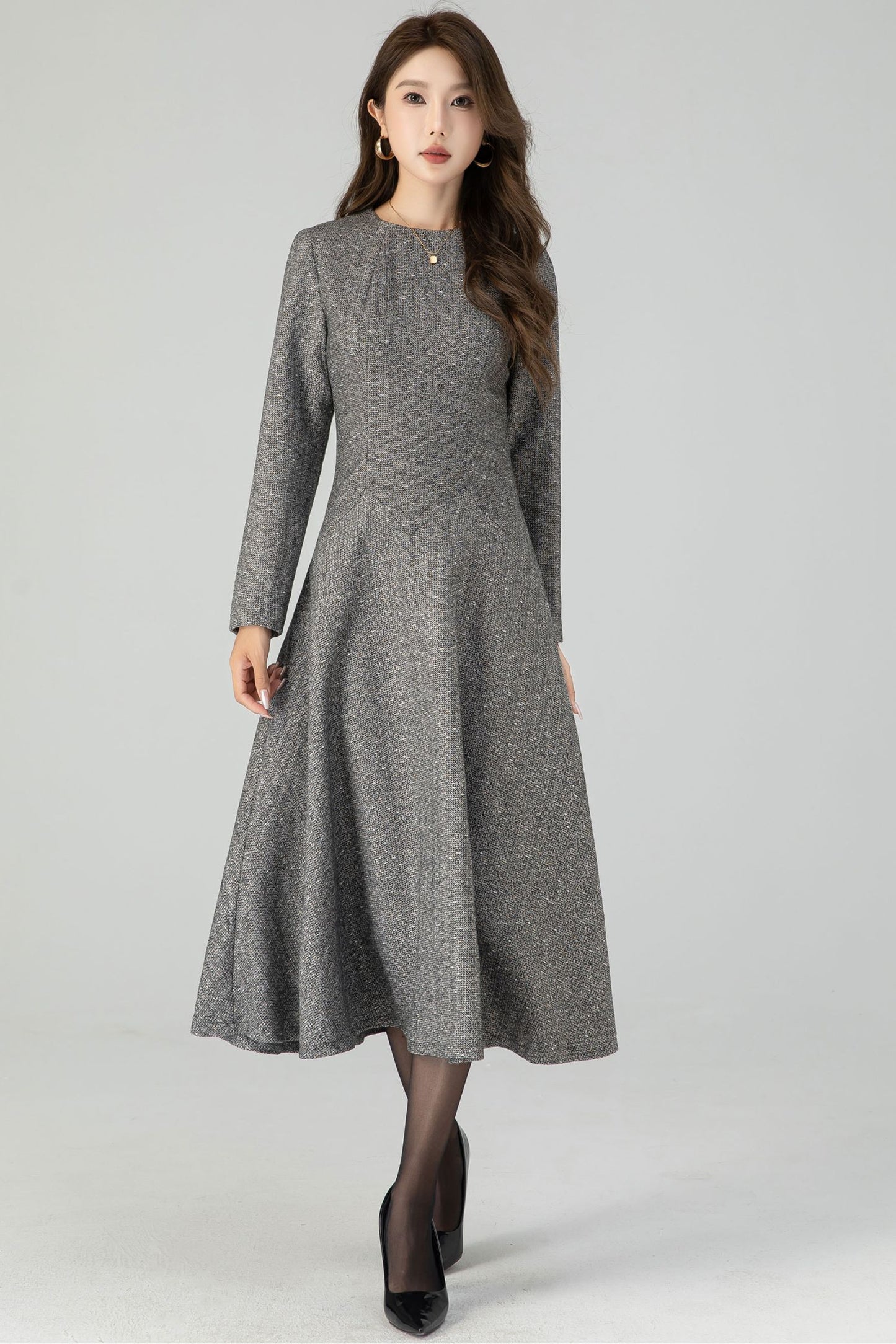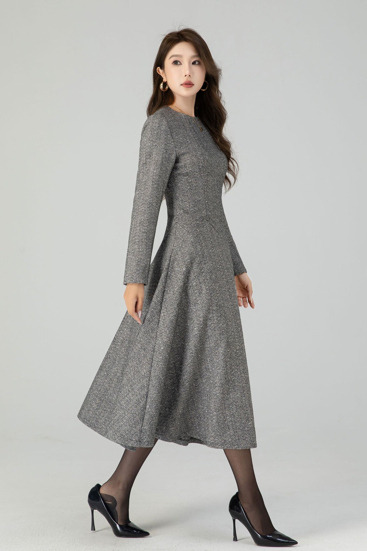 A-Line winter gray wool dress 4548- Size XS #CK2301174