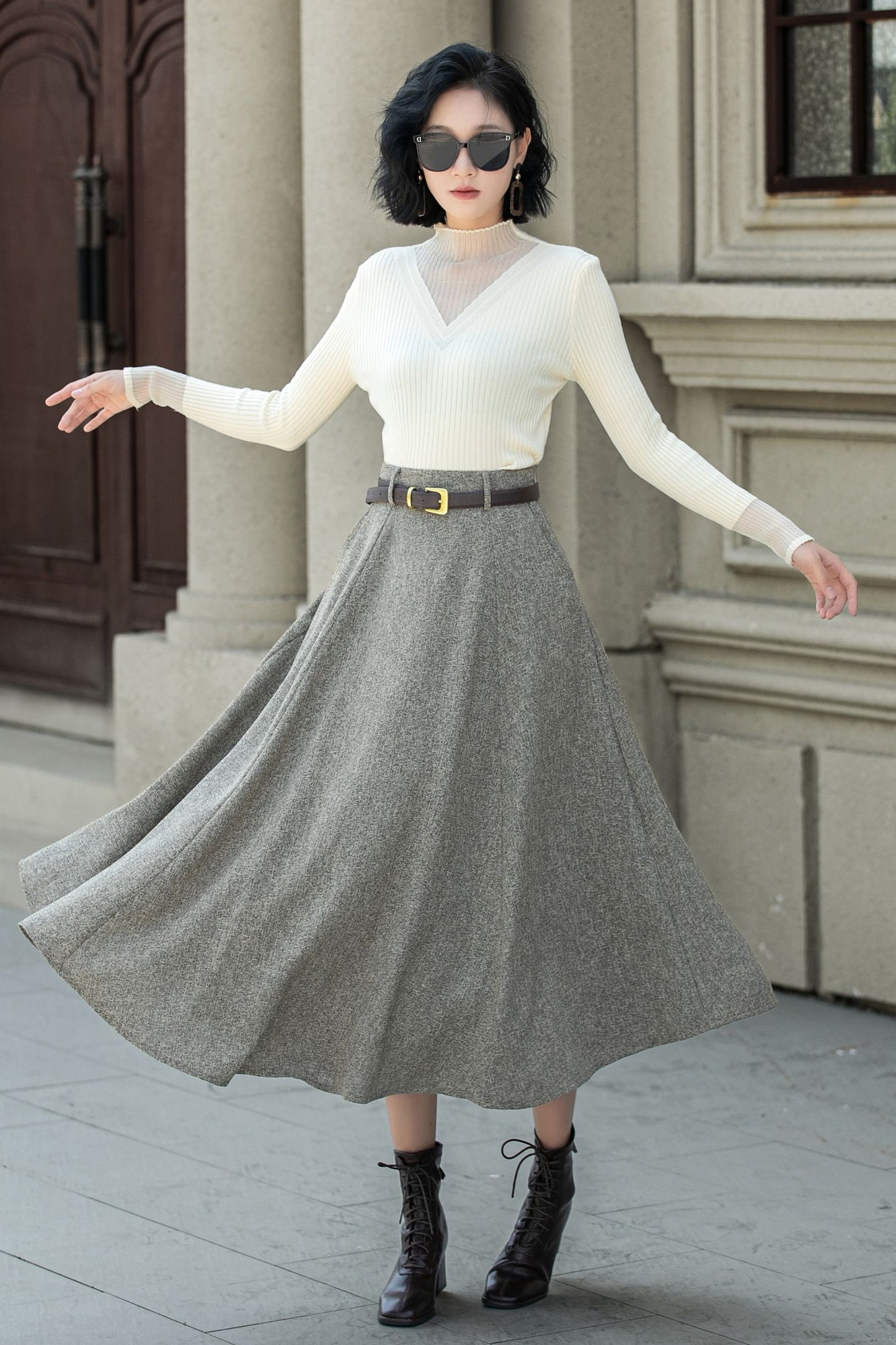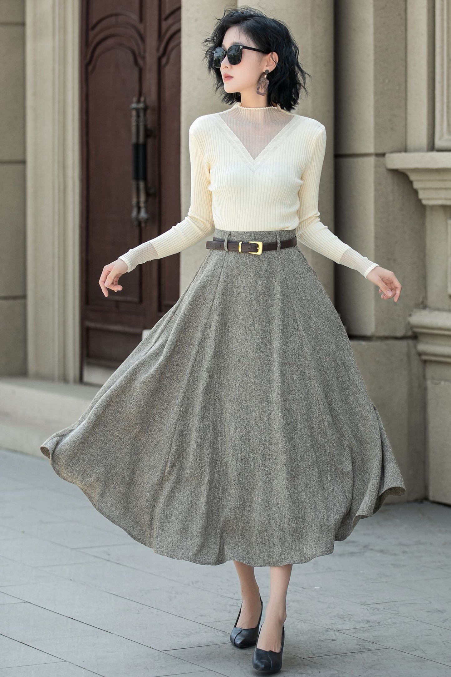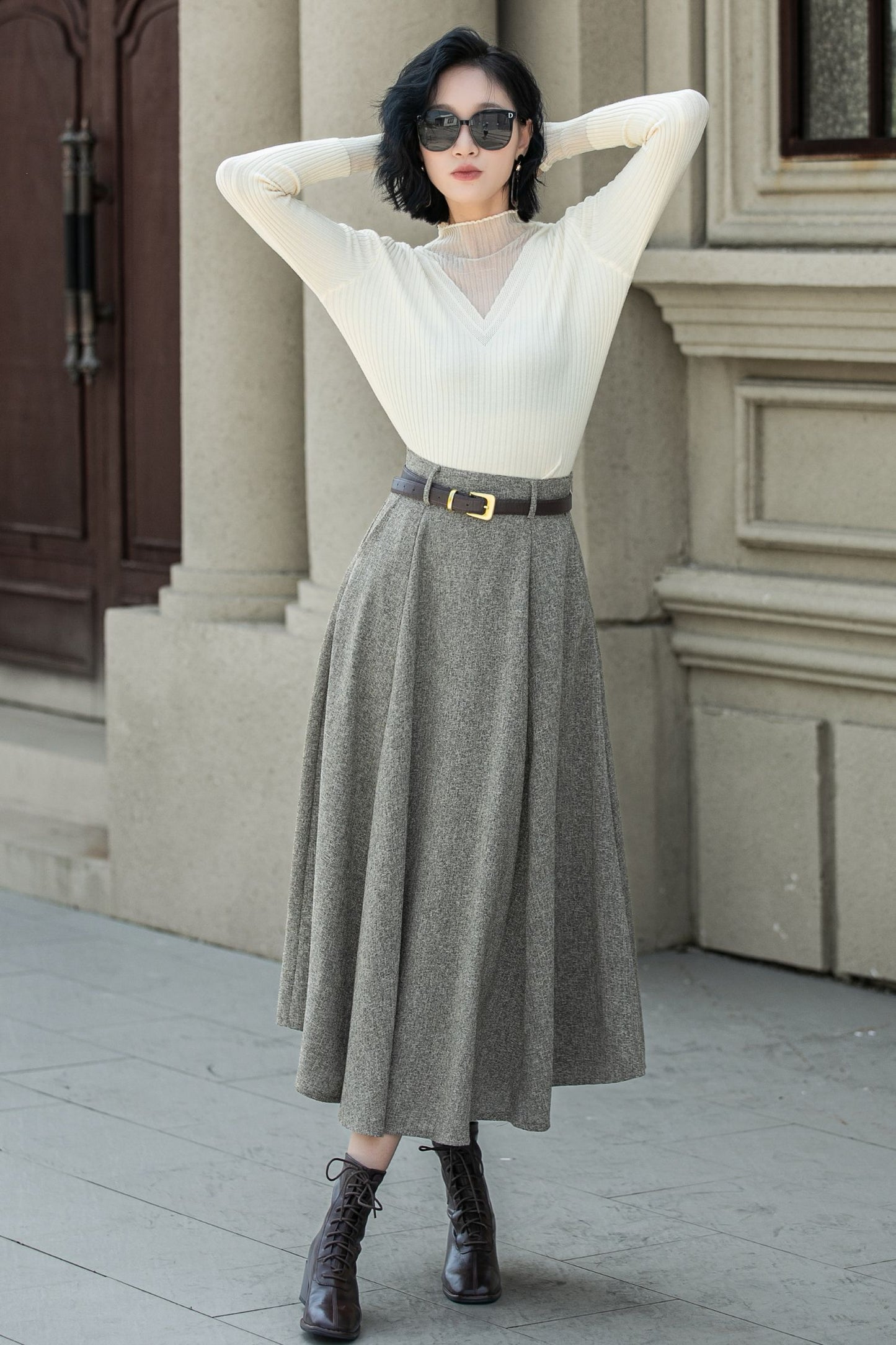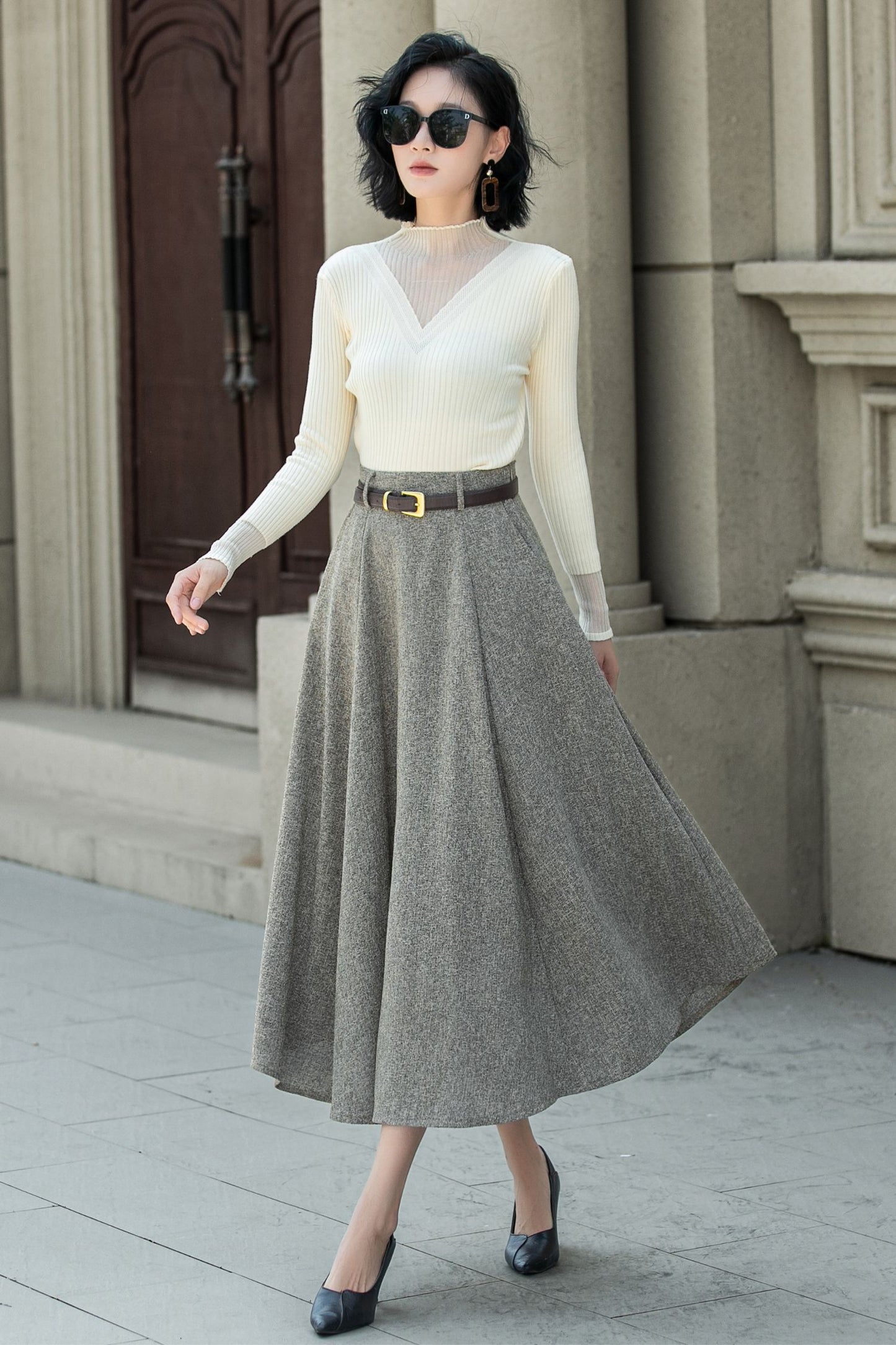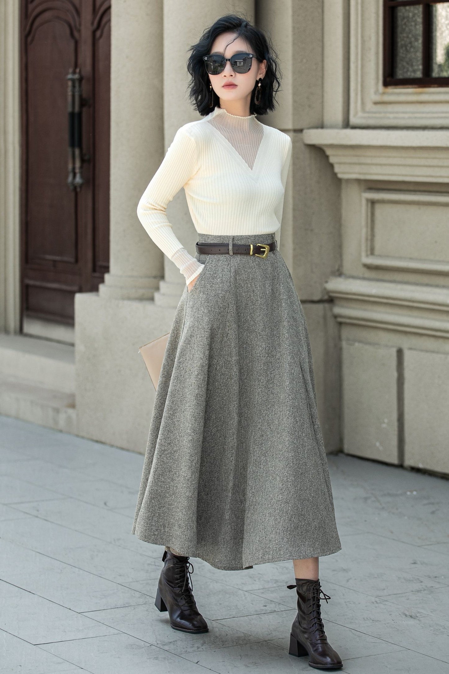 A line wool skirt with pockets 5313