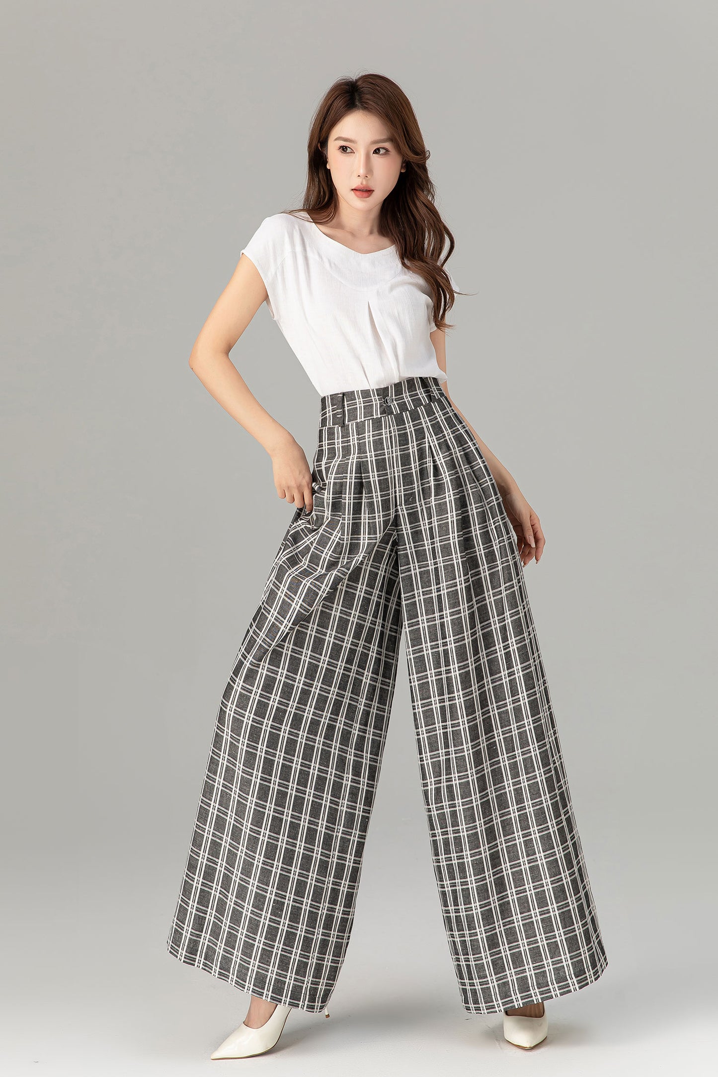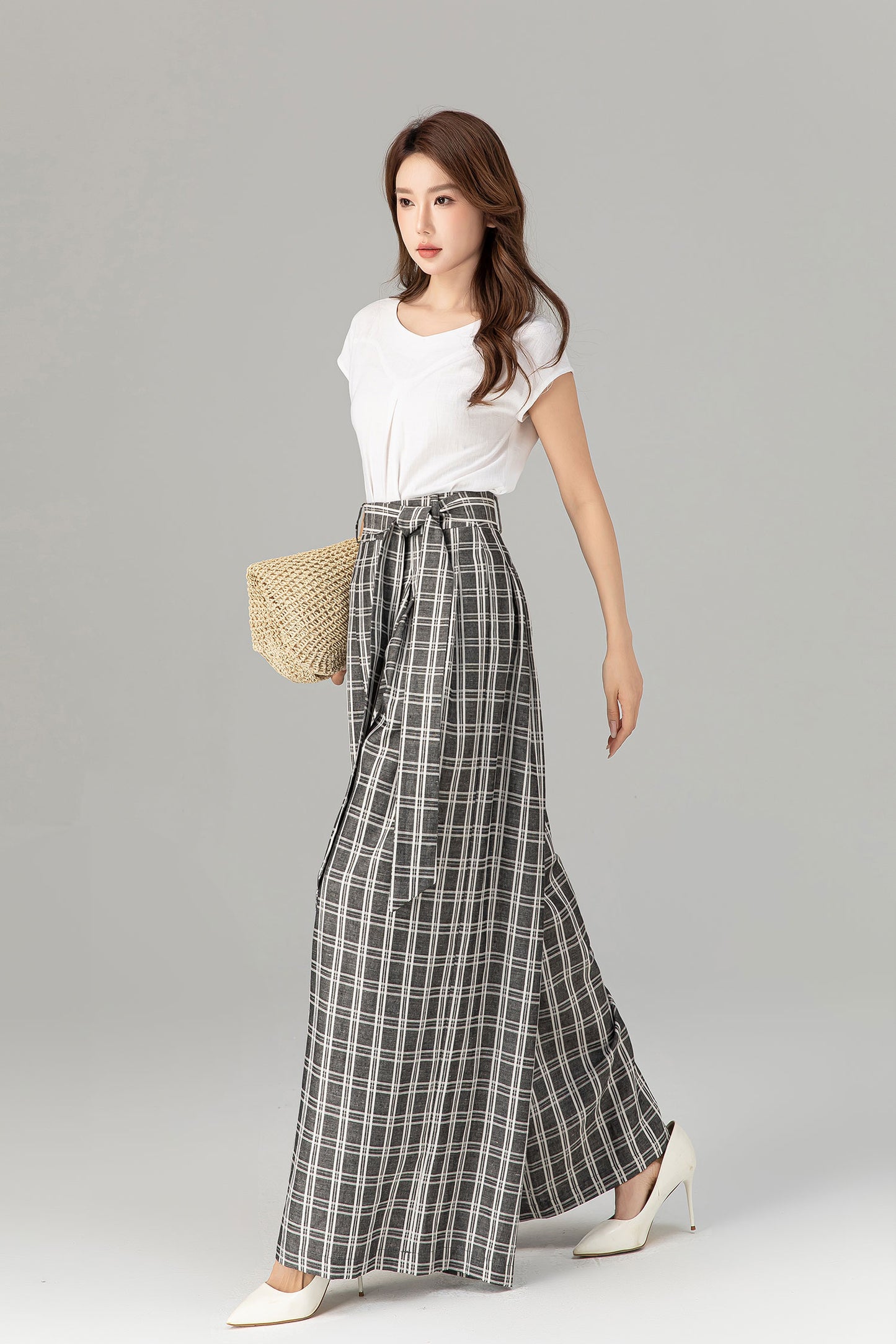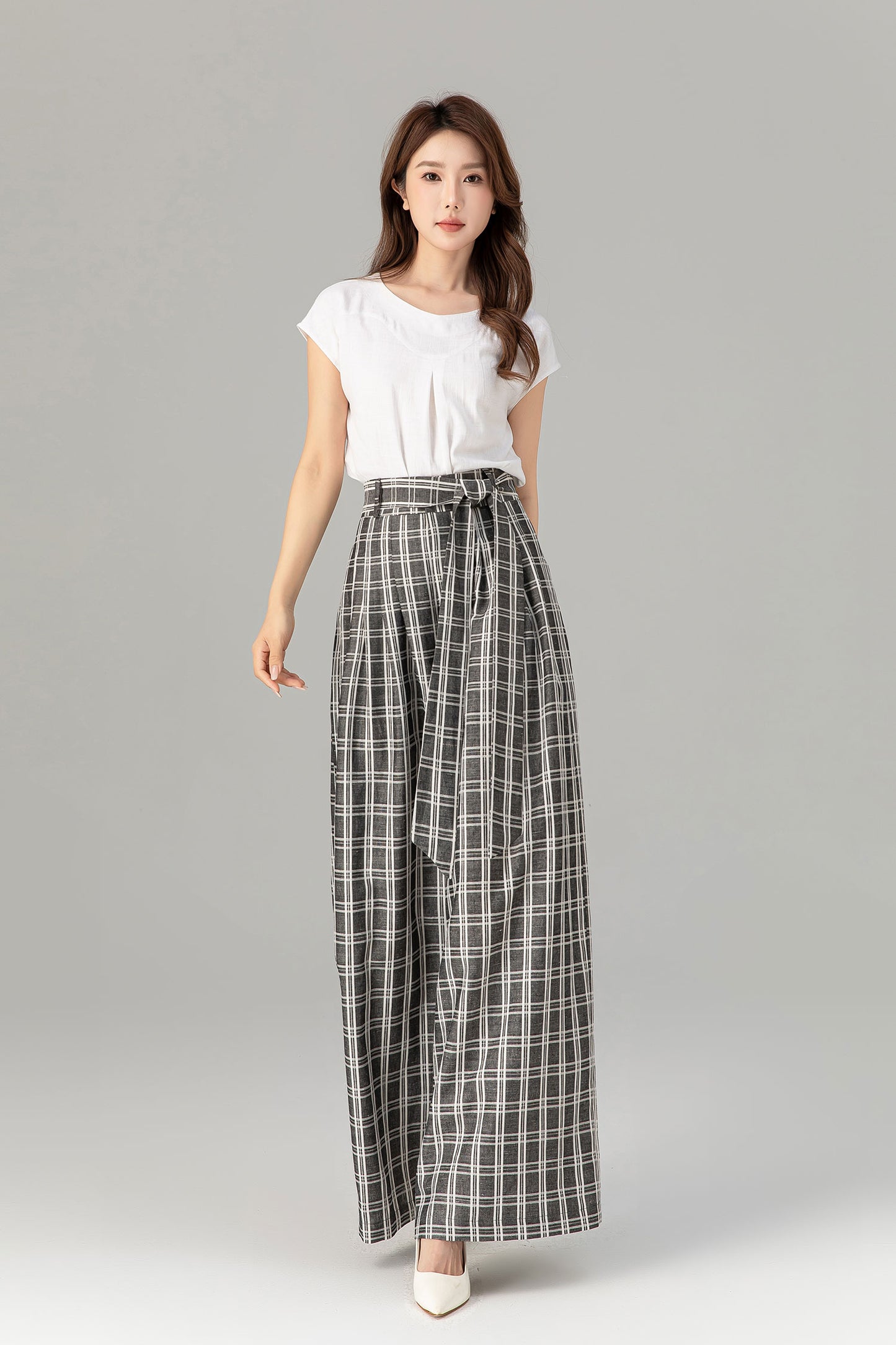 Stay comfortable and stylish in these black and white plaid wide leg long linen pants. Made with soft and breathable fabric, these pants feature a unique and playful design. Perfect for adding a hint of personality to any outfit. (But seriously, who doesn't love a good plaid pant?!)