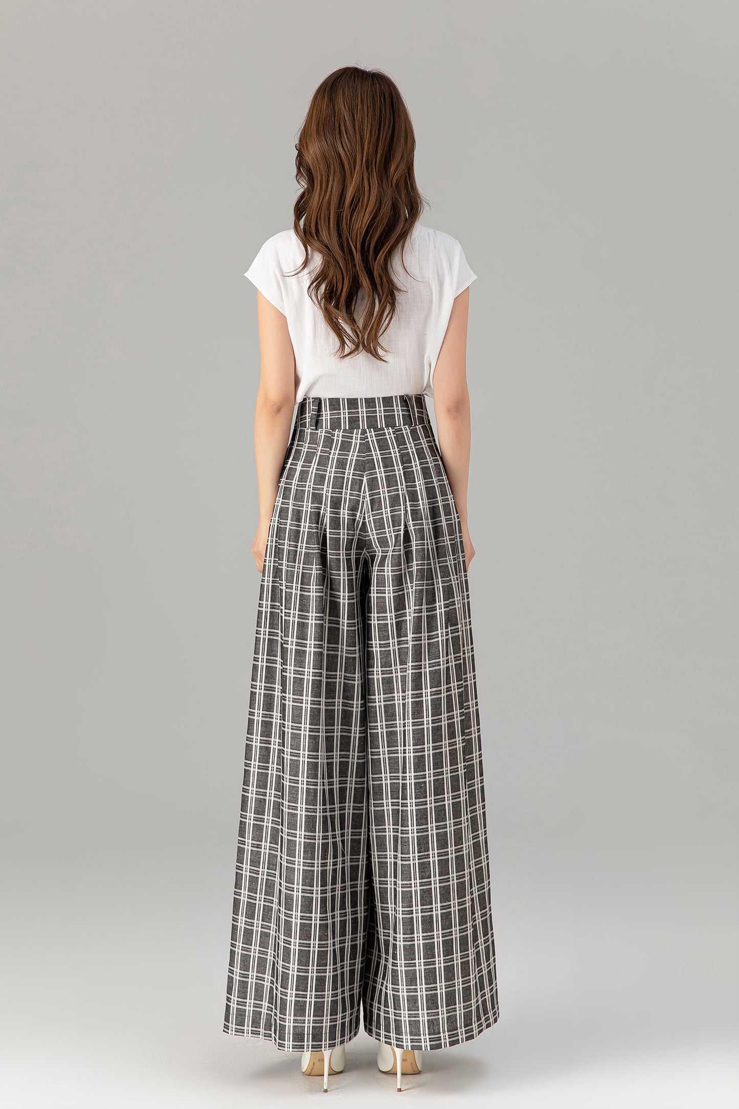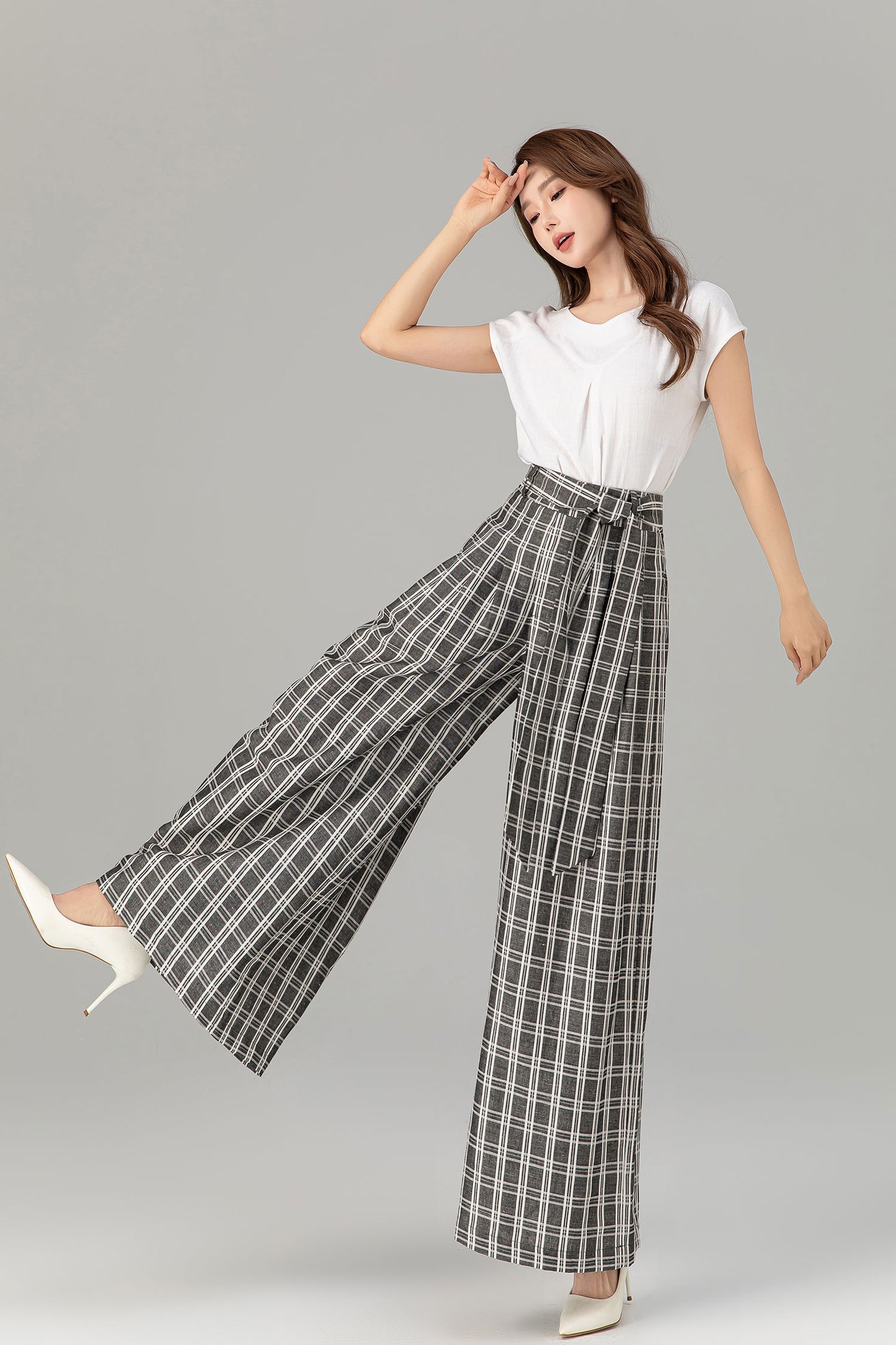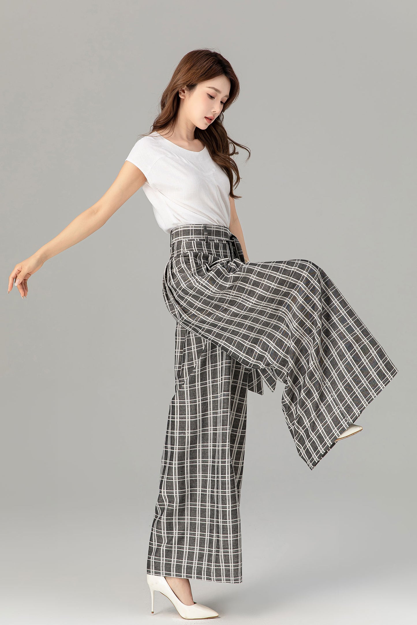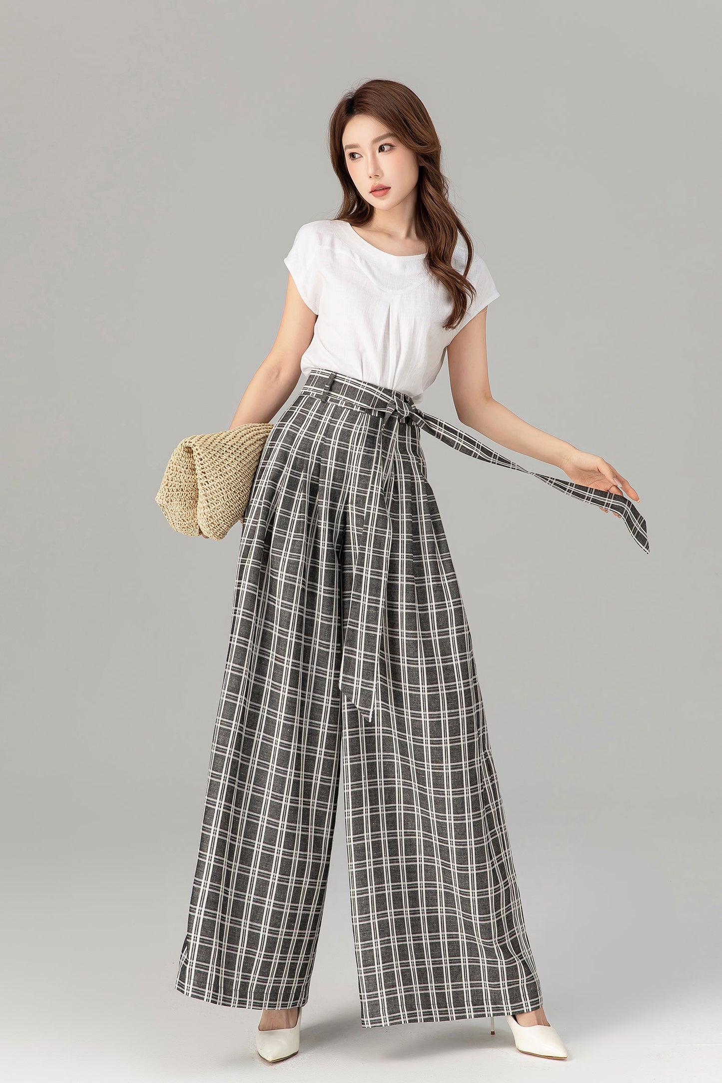 Stay comfortable and stylish in these black and white plaid wide leg long linen pants. Made with soft and breathable fabric, these pants feature a unique and playful design. Perfect for adding a hint of personality to any outfit. (But seriously, who doesn't love a good plaid pant?!)