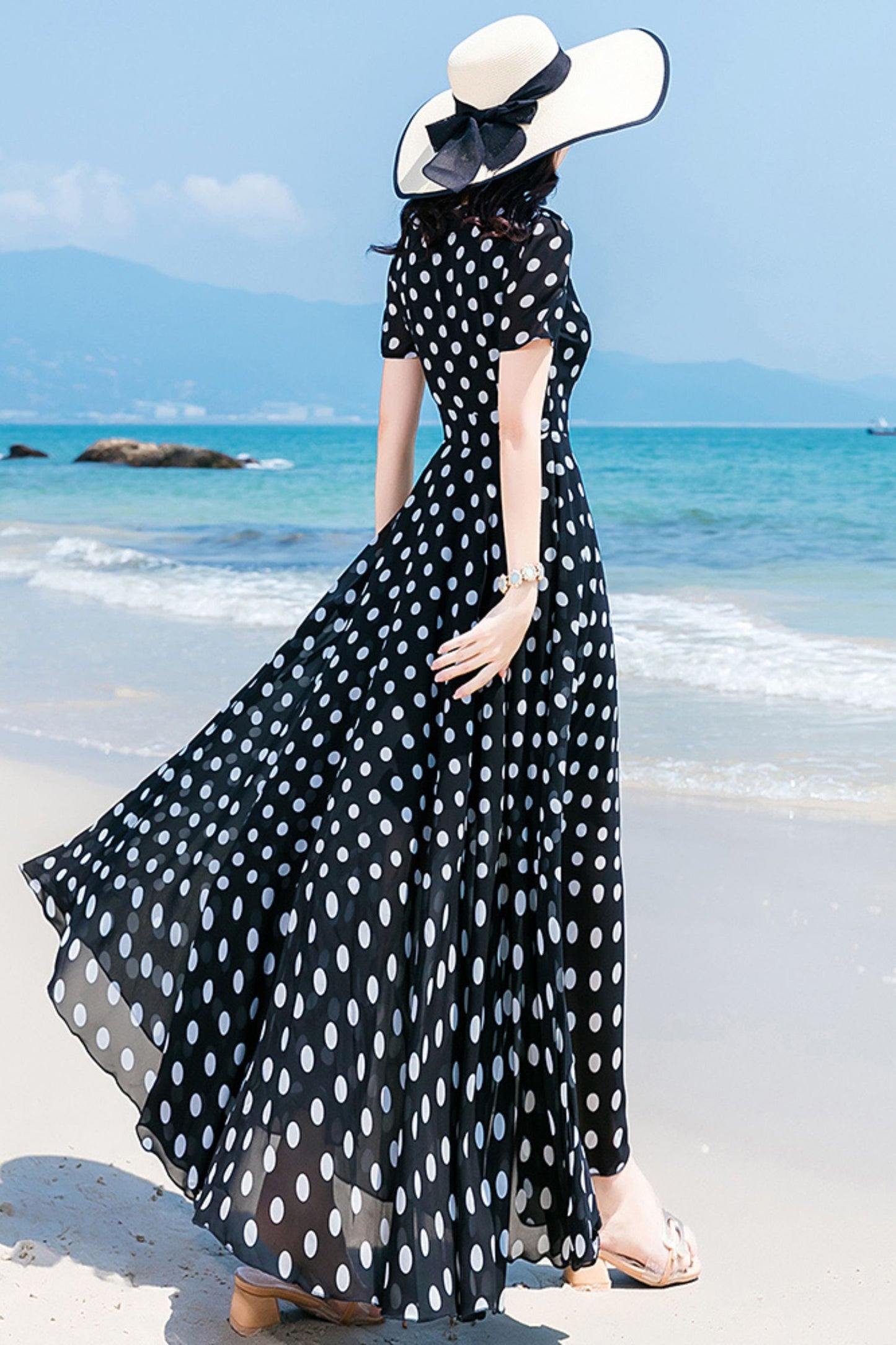Embrace the thrill of the unknown in our black and white polka dot prom chiffon dress HY0030! This striking dress features a bold polka dot pattern that is sure to turn heads at any event. Made from flowing chiffon, it offers both comfort and style for a truly unforgettable look. Make a statement and take a risk with this daring and adventurous dress!