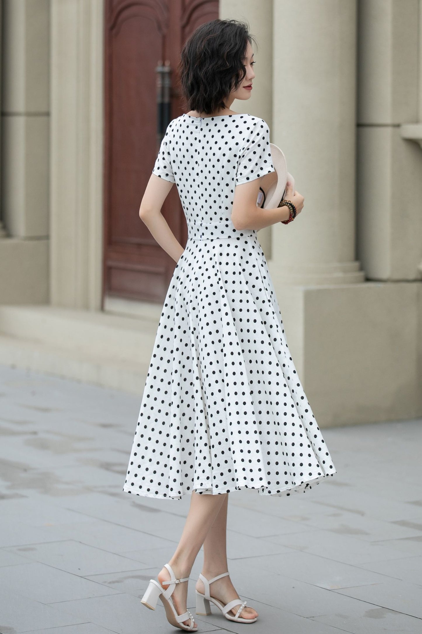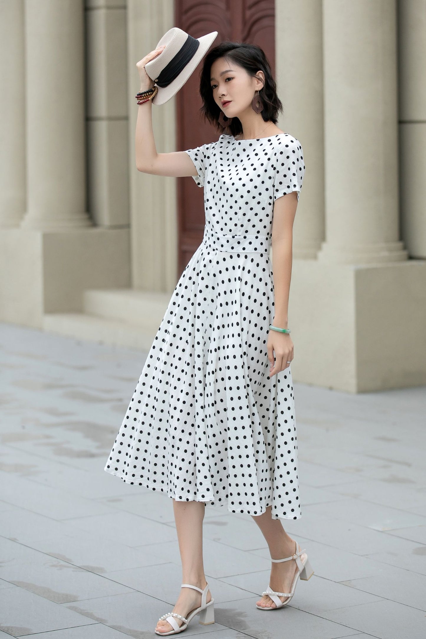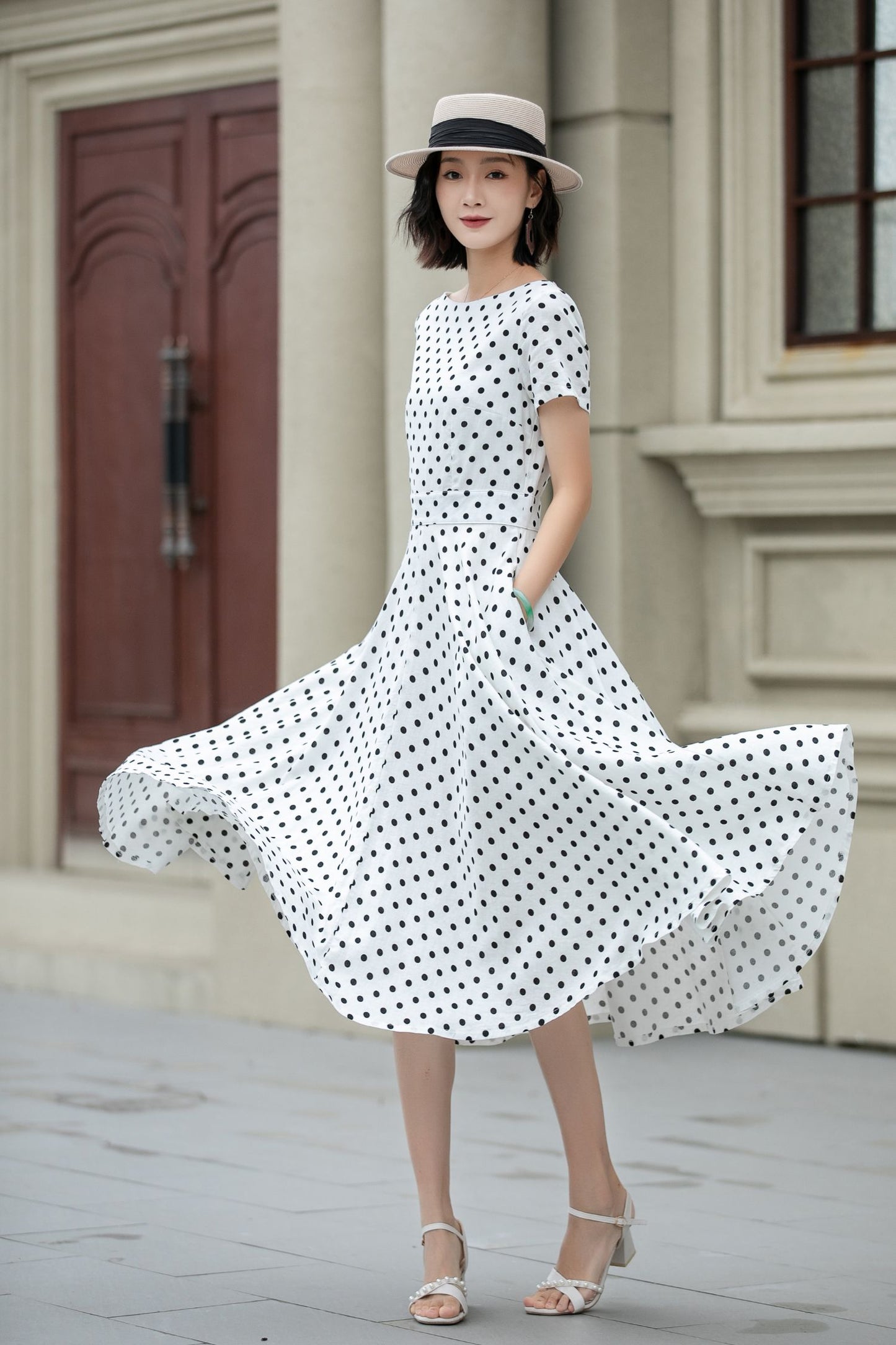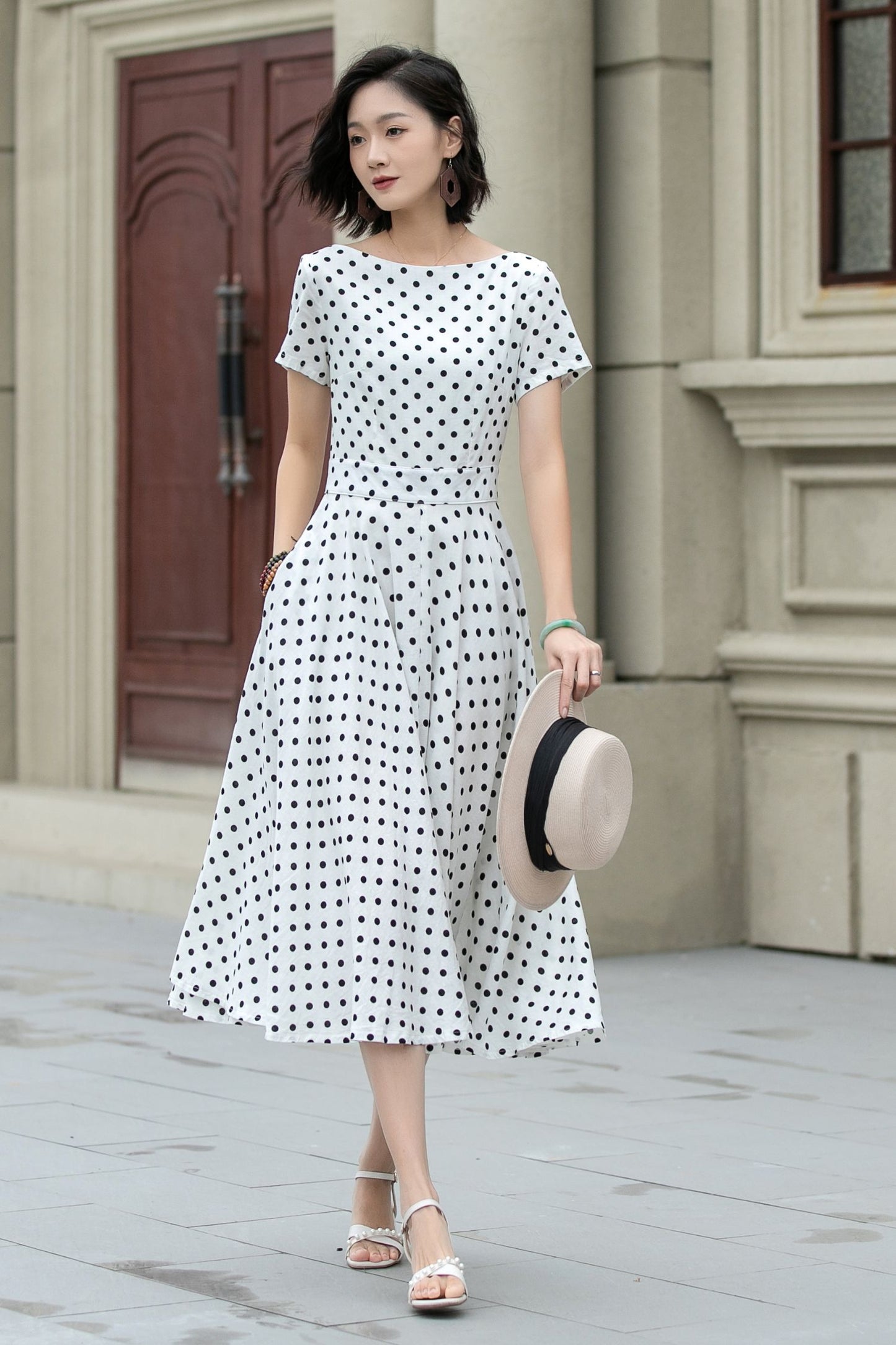 This black and white polka dot summer linen dress is perfect for warm weather occasions. Made from breathable linen material, it provides all-day comfort while adding a touch of fun and elegance with its classic polka dot design. Stay stylish and cool this summer with this must-have dress.