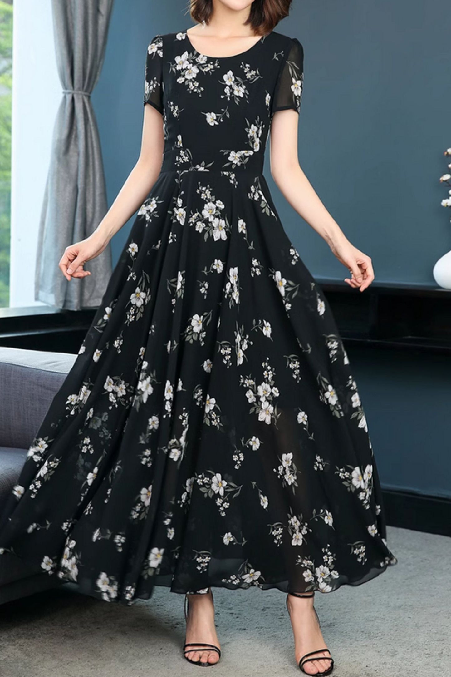 Unleash your bold and adventurous side with our Black Flower Printed Maxi Chiffon Dress 5011! Covered in stunning black flowers, this maxi chiffon dress exudes confidence and style. Perfect for those who love to take risks and stand out from the crowd, this dress is a must-have in any fashion-forward wardrobe.