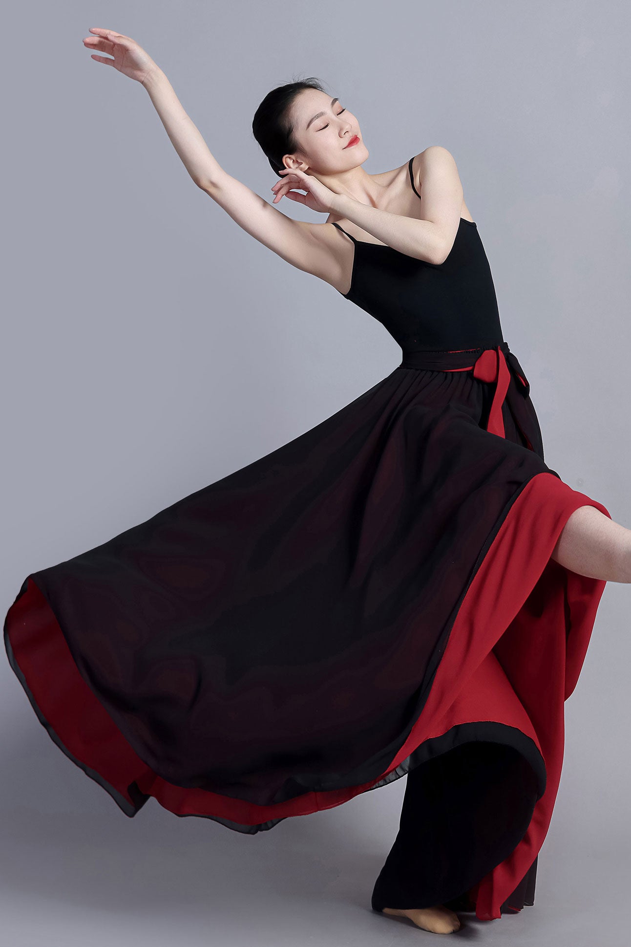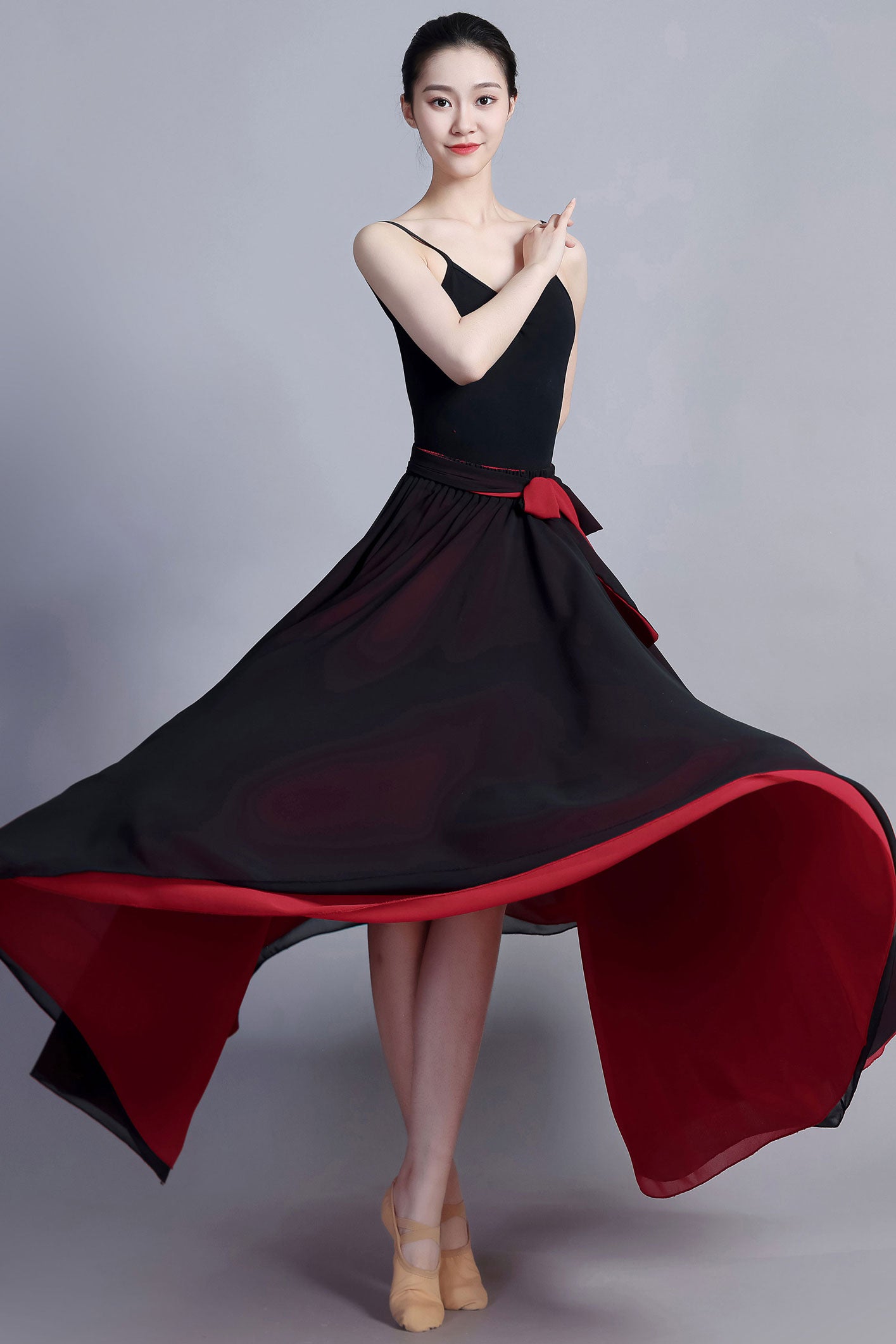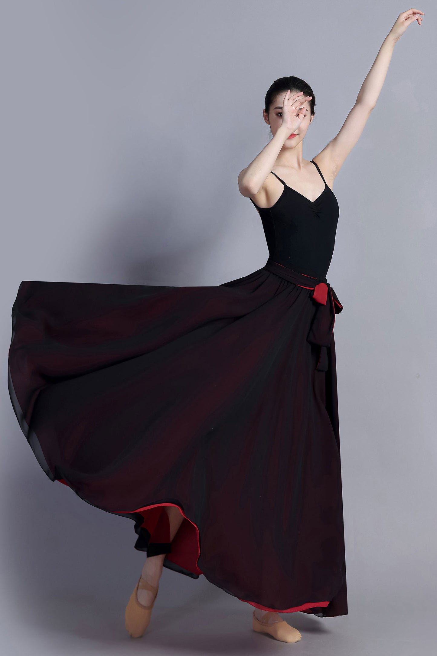 Black Long dance Chiffon Skirt, Summer Chiffon Pleated maxi Skirt 3390