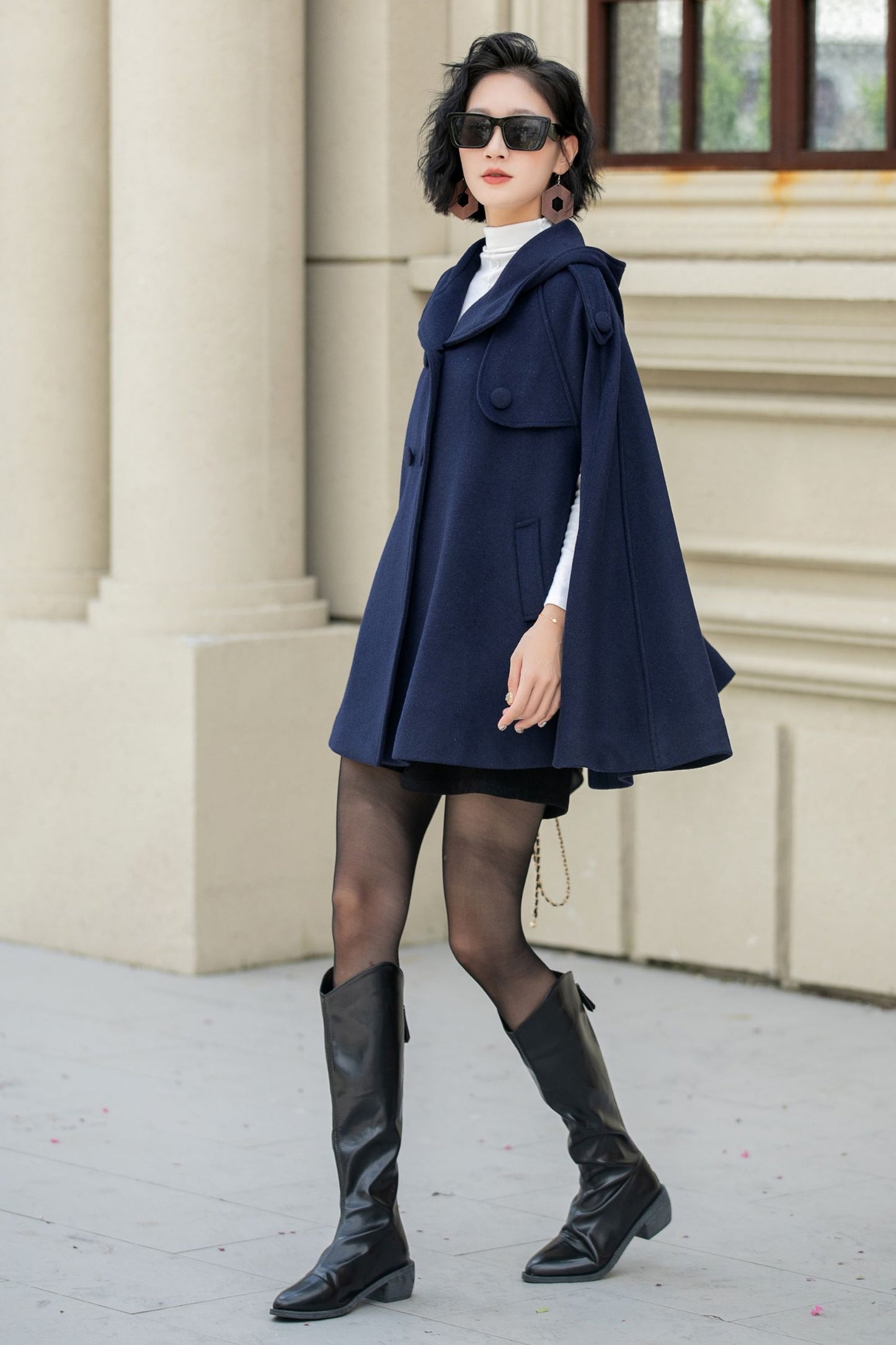 Effortlessly chic and cozy, this handmade blue wool cape coat adds a touch of sophistication to your winter wardrobe. The flowing silhouette moves gracefully while the hooded neckline offers both warmth and a polished finish. Made from a soft wool blend and fully lined in smooth satin, it’s perfect for layering over dresses or sweaters — keeping you stylish and comfortable from city strolls to special gatherings.