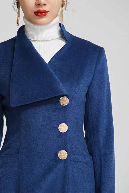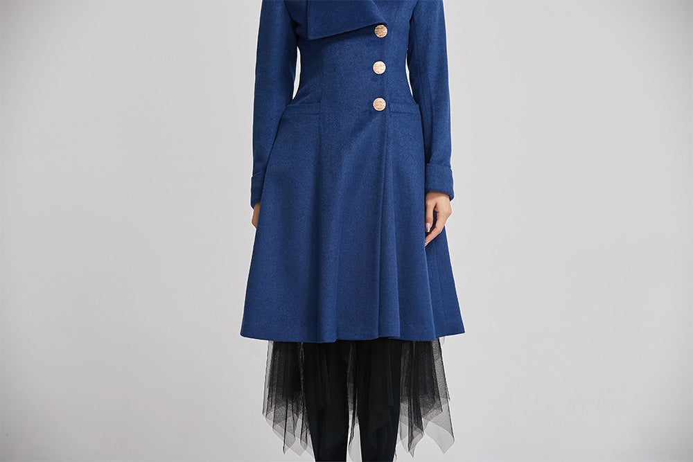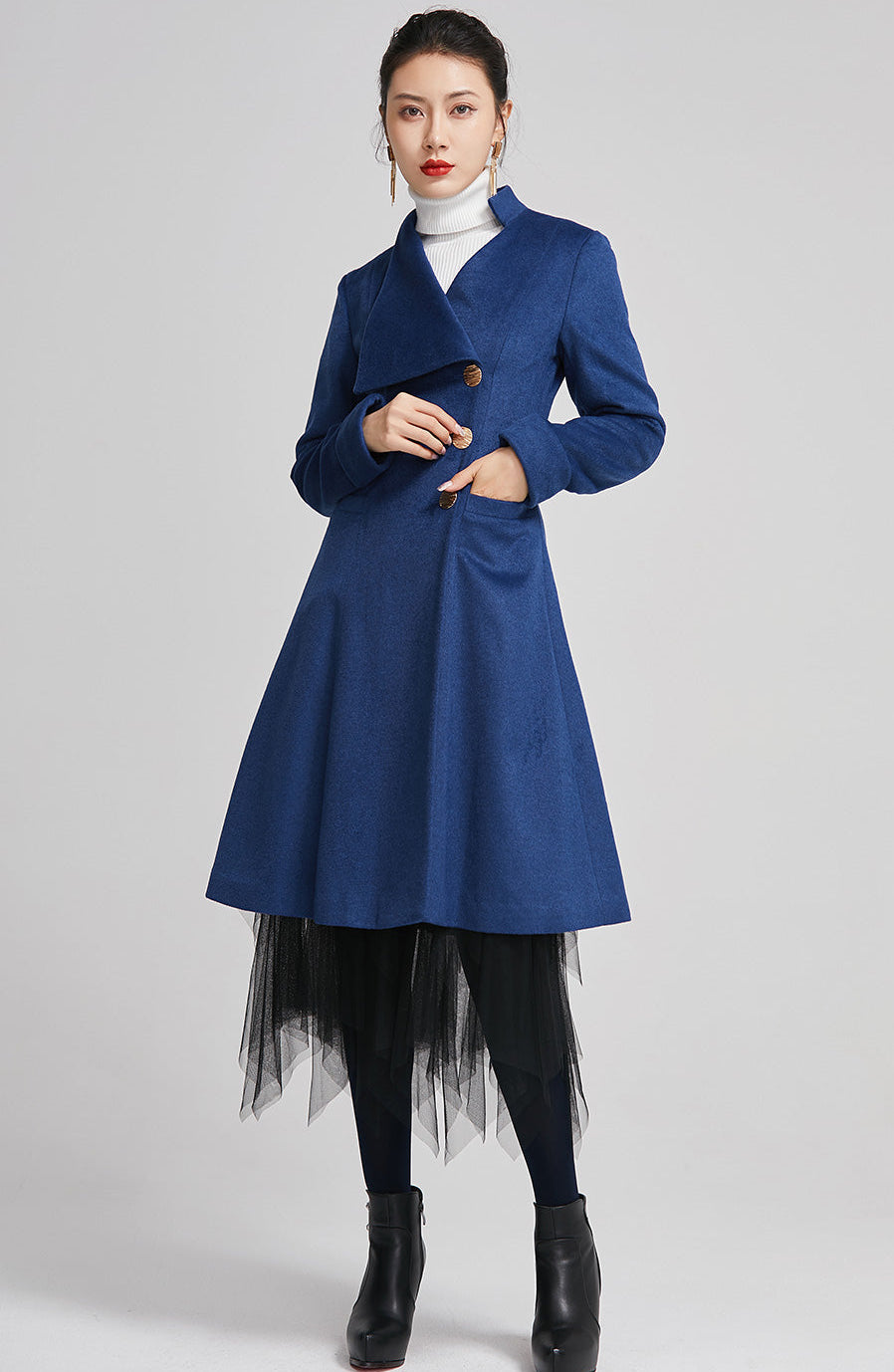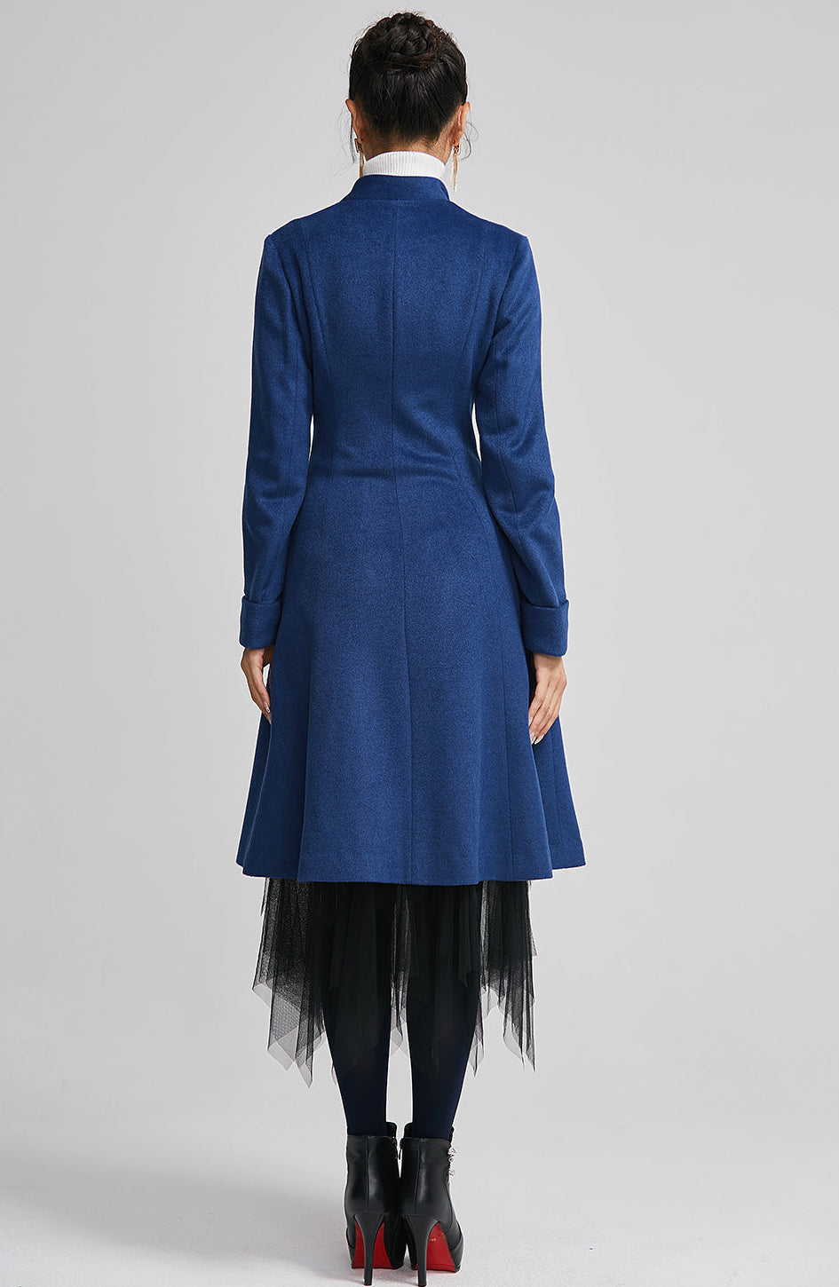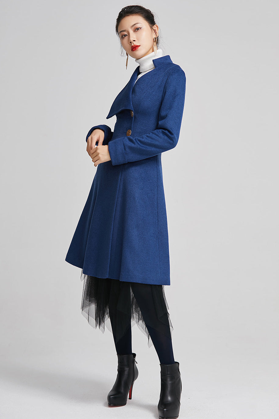 Handmade Blue Wool Coat – Single-Breasted Winter A-Line Overcoat | Xiaolizi 2256