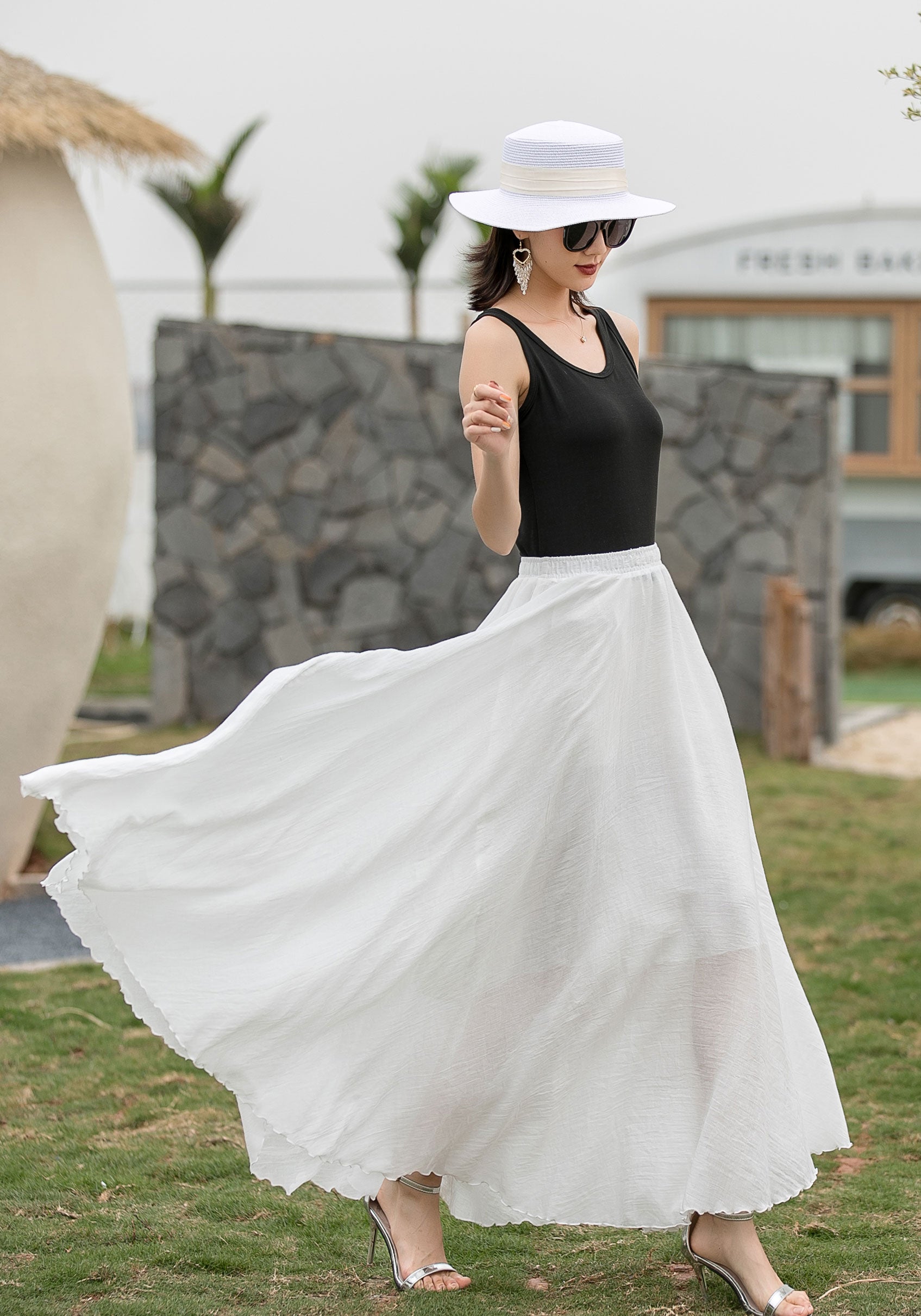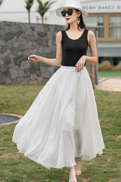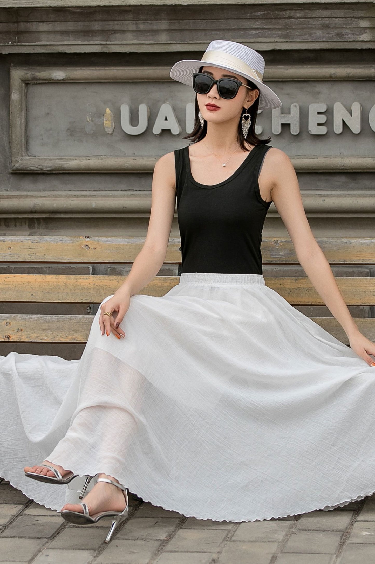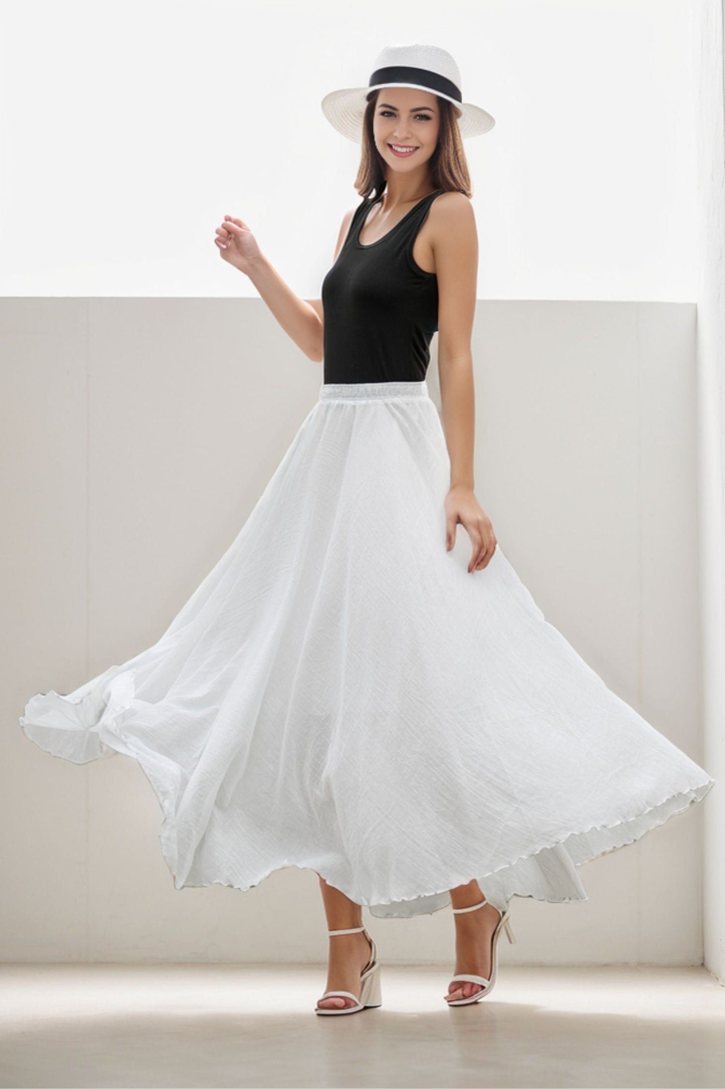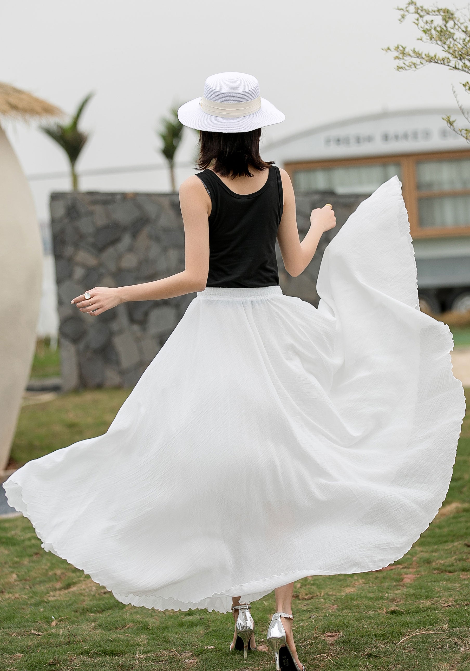 Boho Elastic Waist Pleated Maxi White Skirts 2718