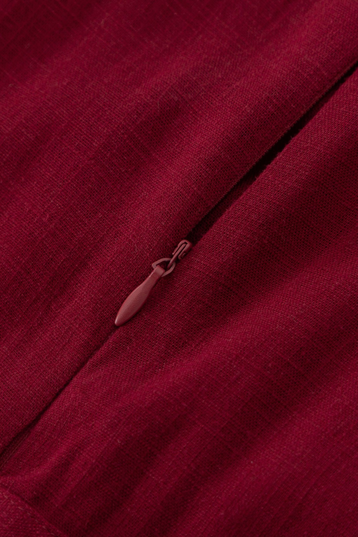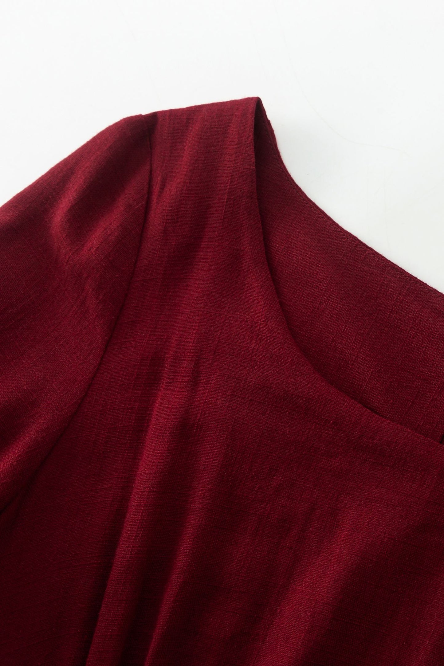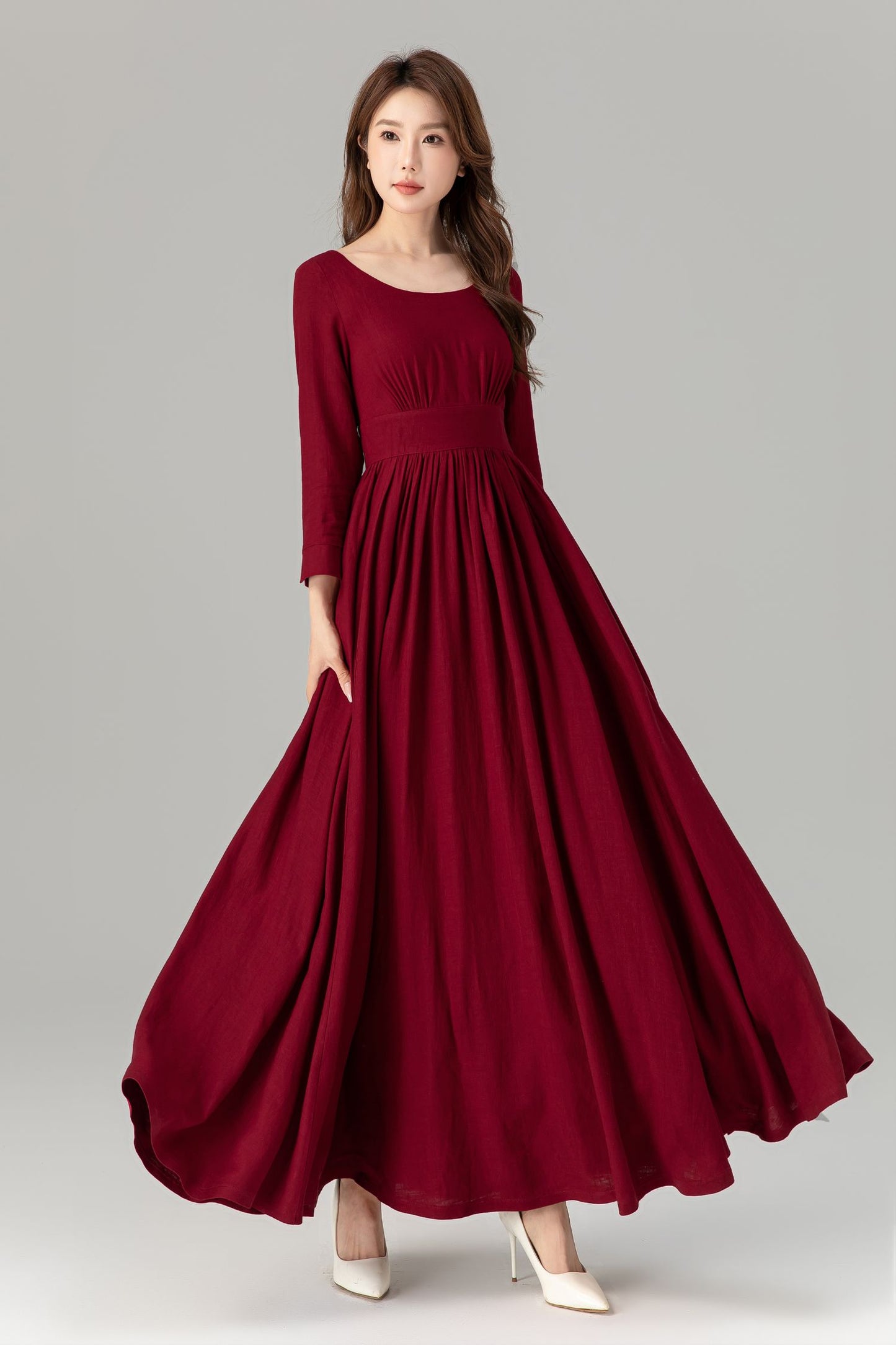 Burgundy prom high waisted spring linen dress 4924