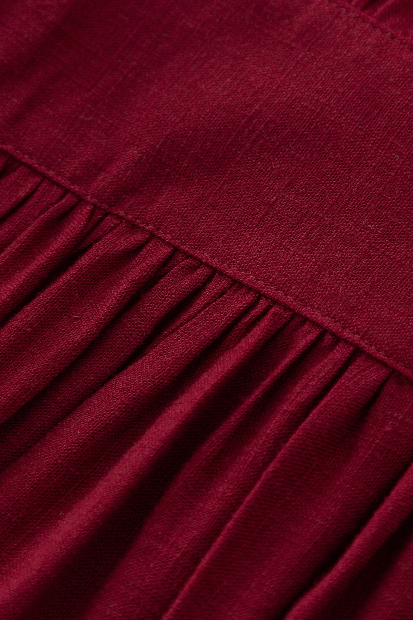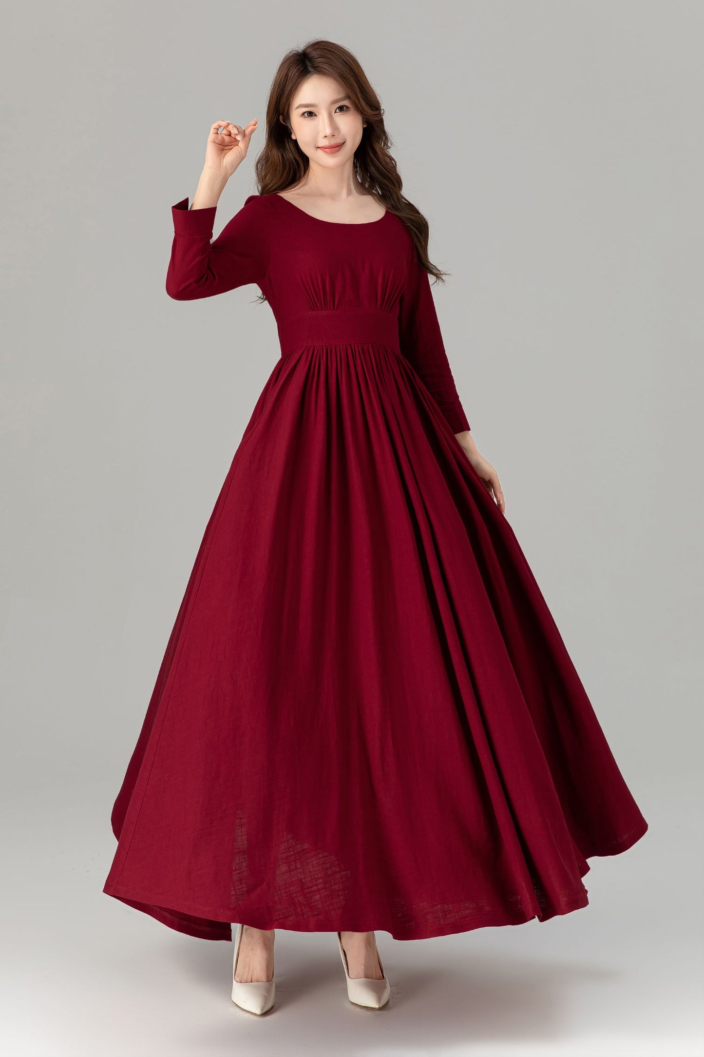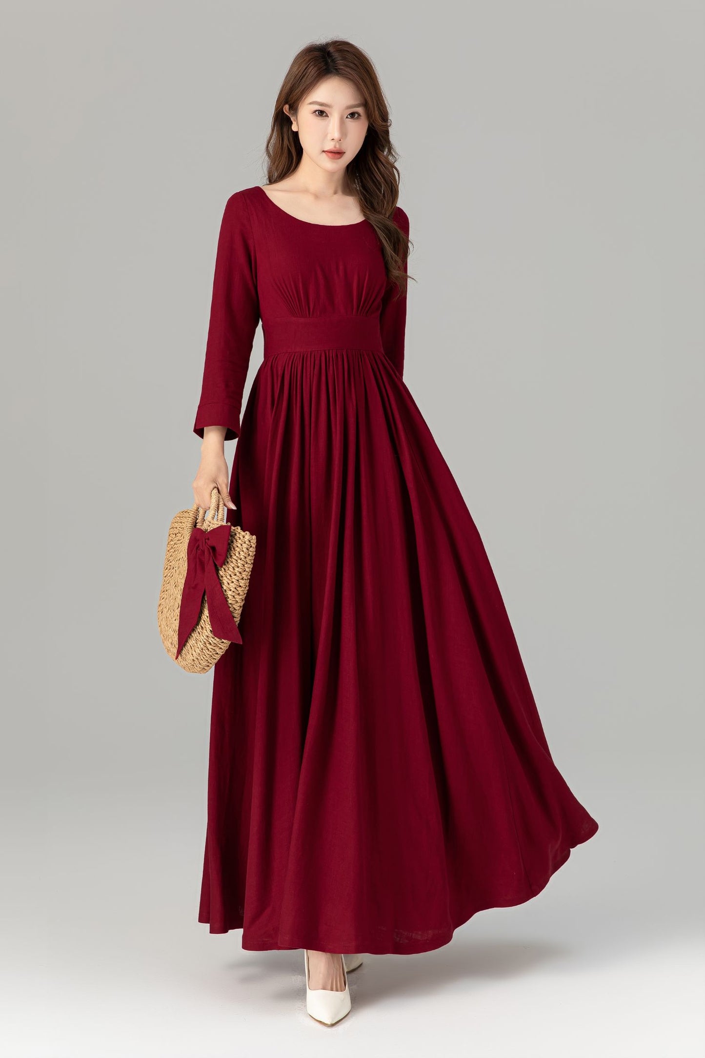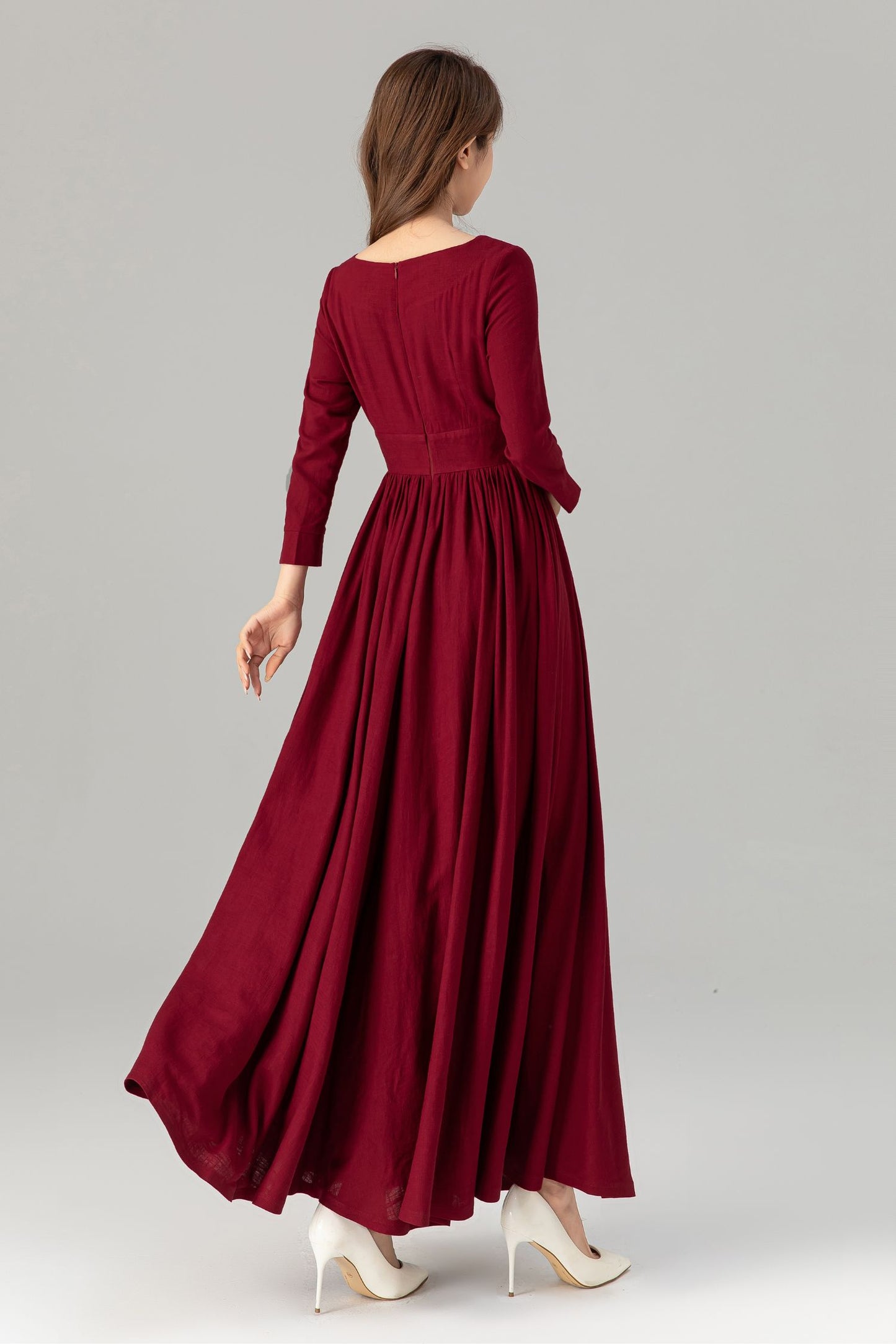 Burgundy prom high waisted spring linen dress 4924