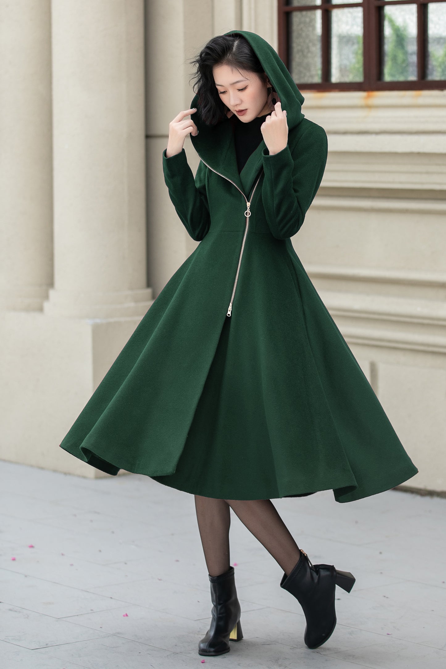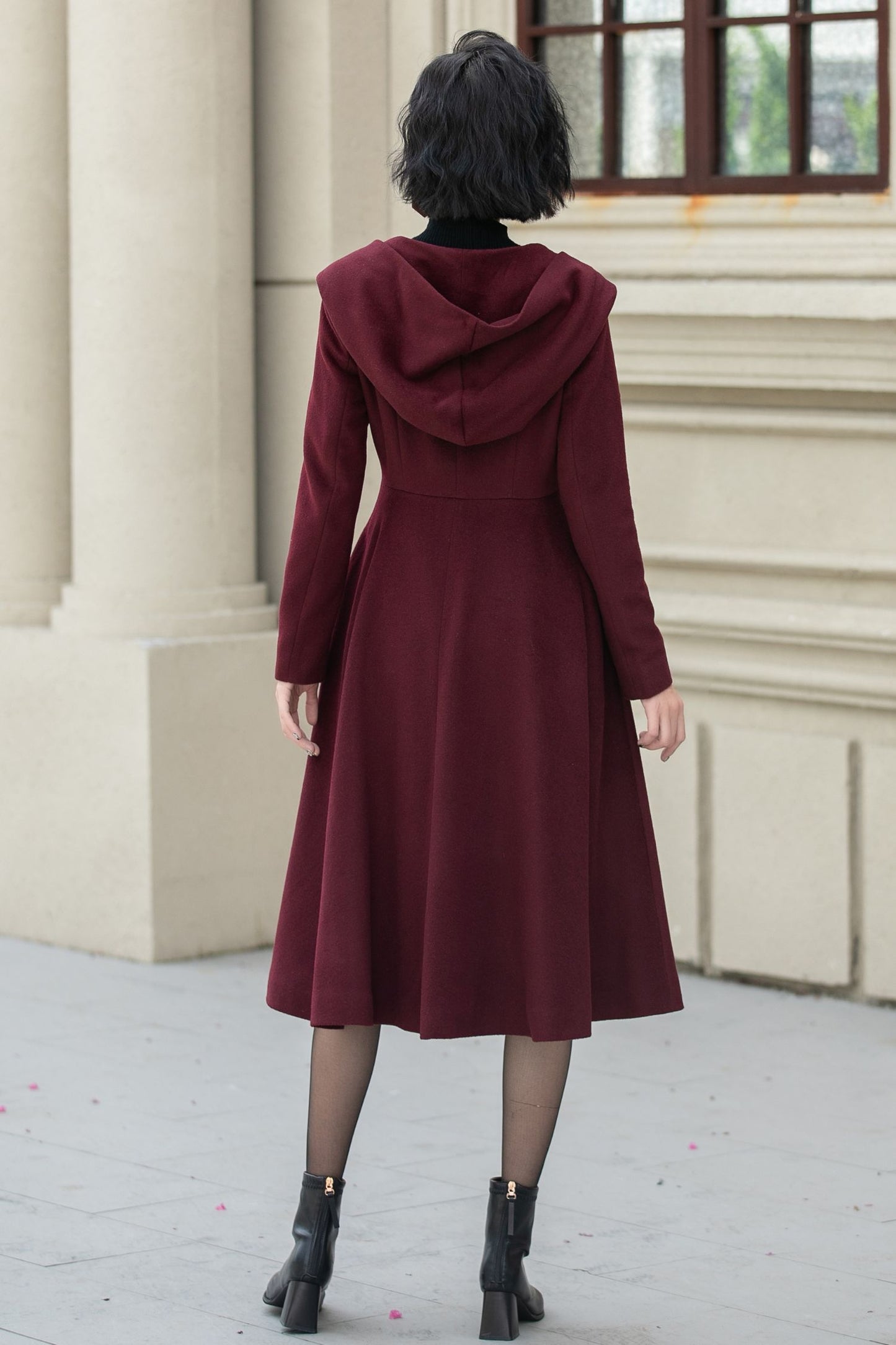 Step into winter elegance with this handmade burgundy wool coat. Designed with a dramatic hood, fitted waist, and flowing hemline, it captures timeless sophistication while keeping you warm. The full-length zipper makes it both practical and stylish—perfect for layering on chilly days or making a statement at evening gatherings.