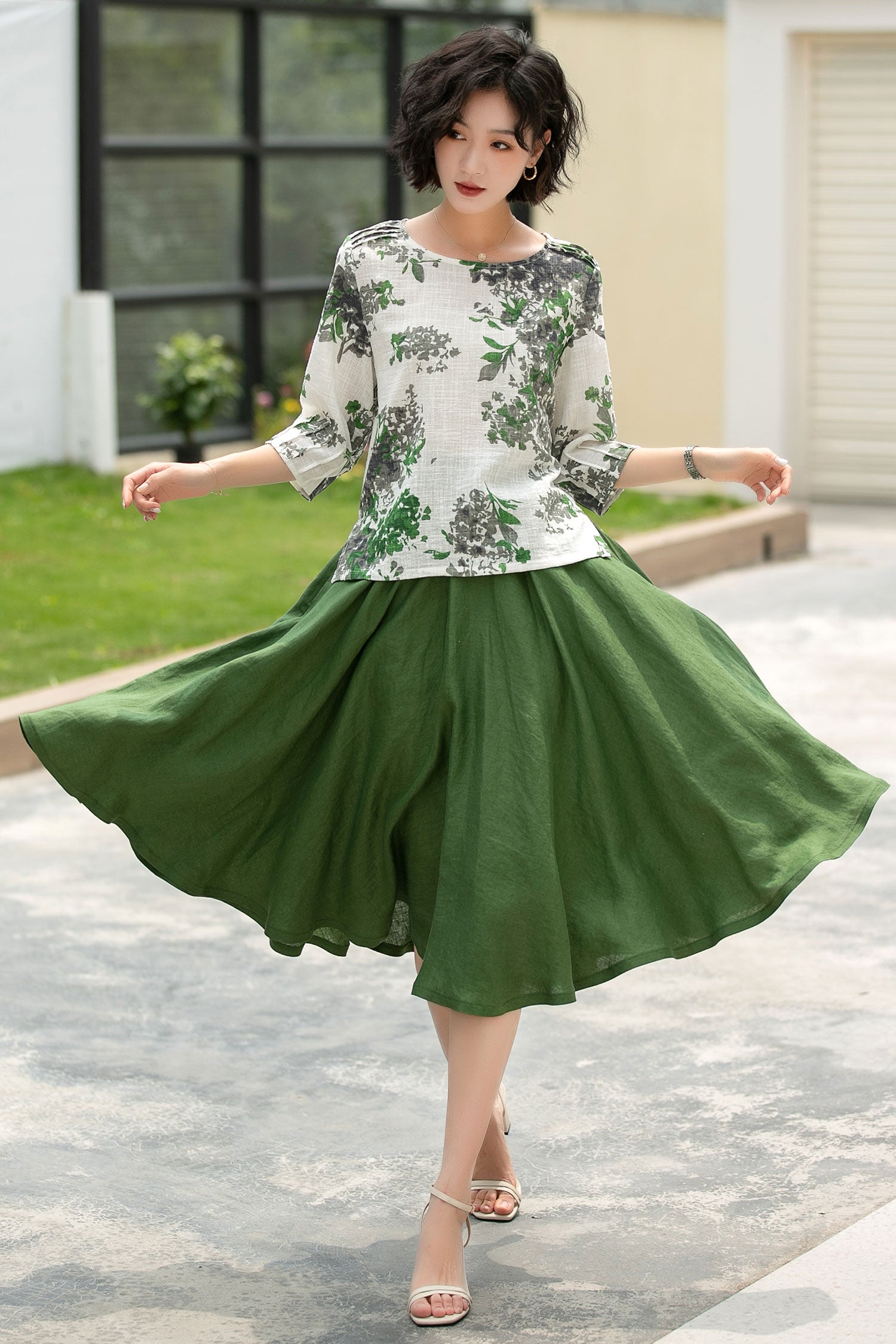 This off-white floral linen top feels light and breathable on the skin, with an easy drape that keeps you comfortable from warm mornings to sunset walks. The relaxed fit and soft round neckline create an effortless, flattering look for everyday wear.