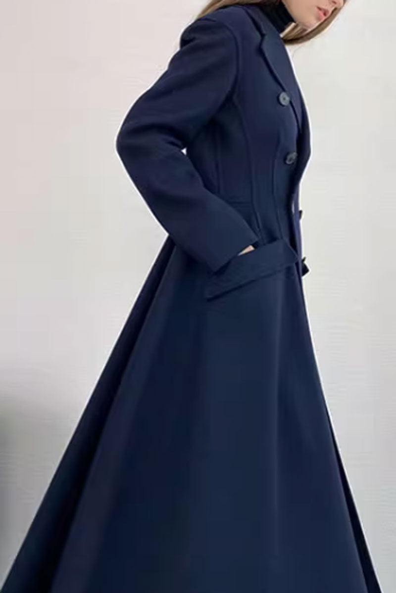 Indulge in luxurious style and warmth with our navy blue winter wool coat, complete with pockets for ultimate convenience. Crafted with the finest materials, this sophisticated piece will elevate your winter wardrobe. Stay chic and cozy all season long with our premium coat.