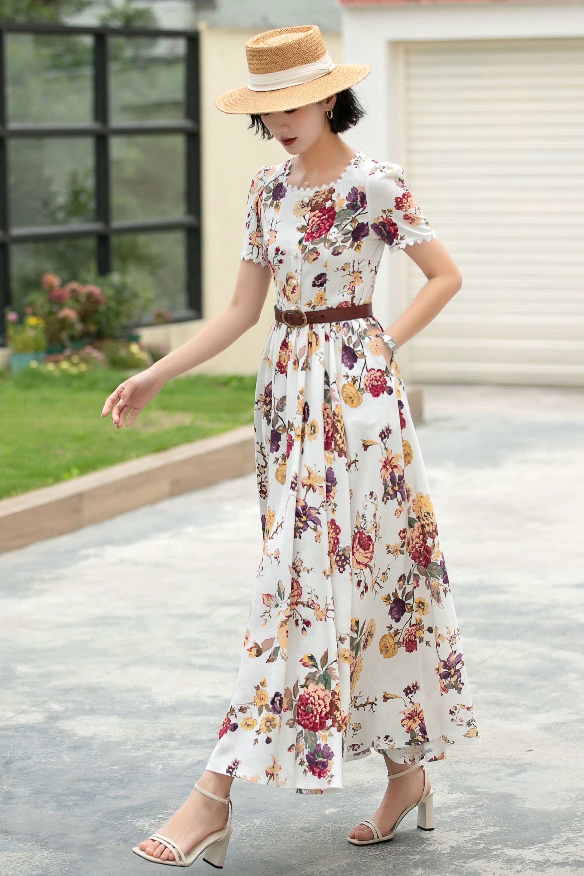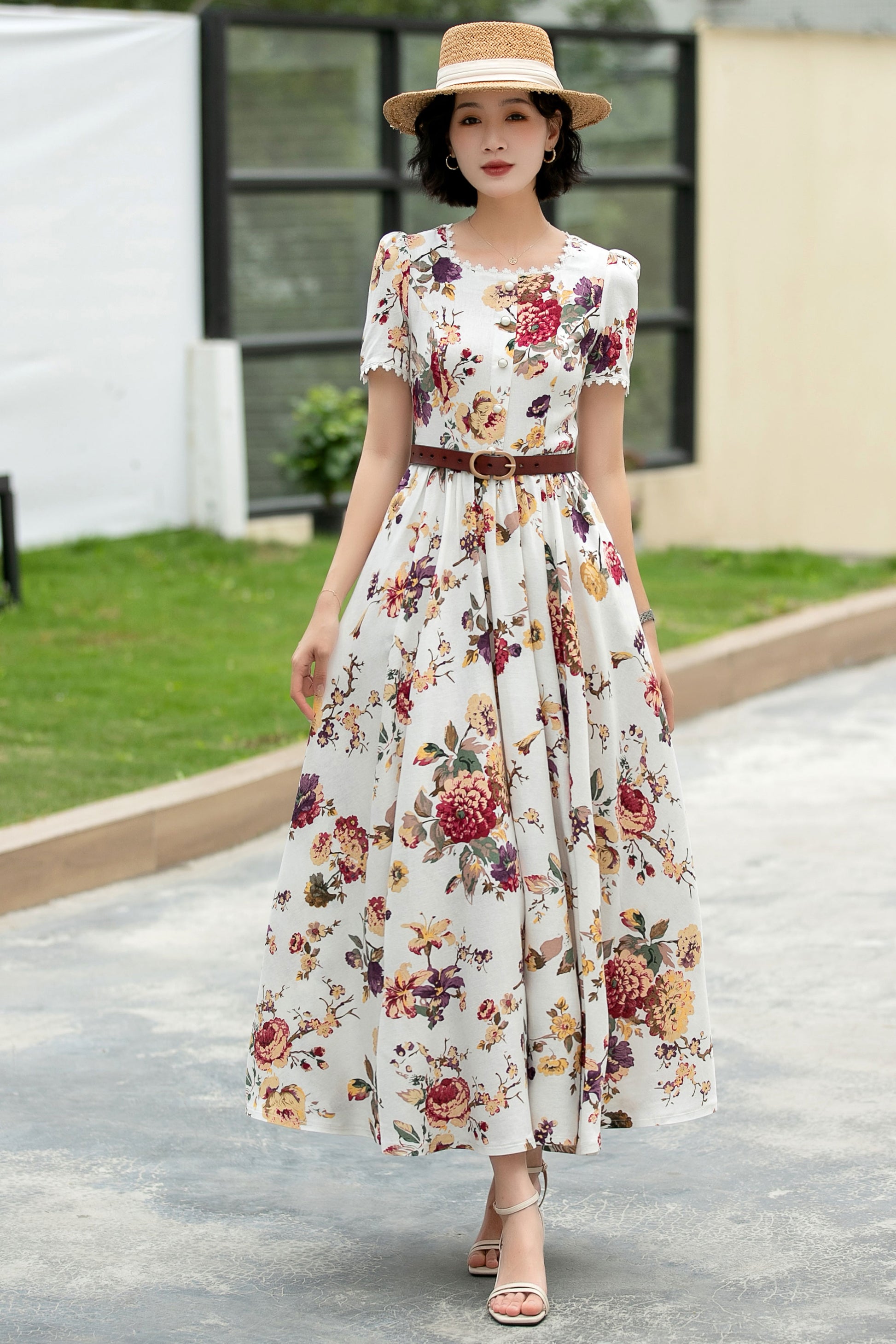 Family Gatherings dress, Floral Linen maxi dress 6045