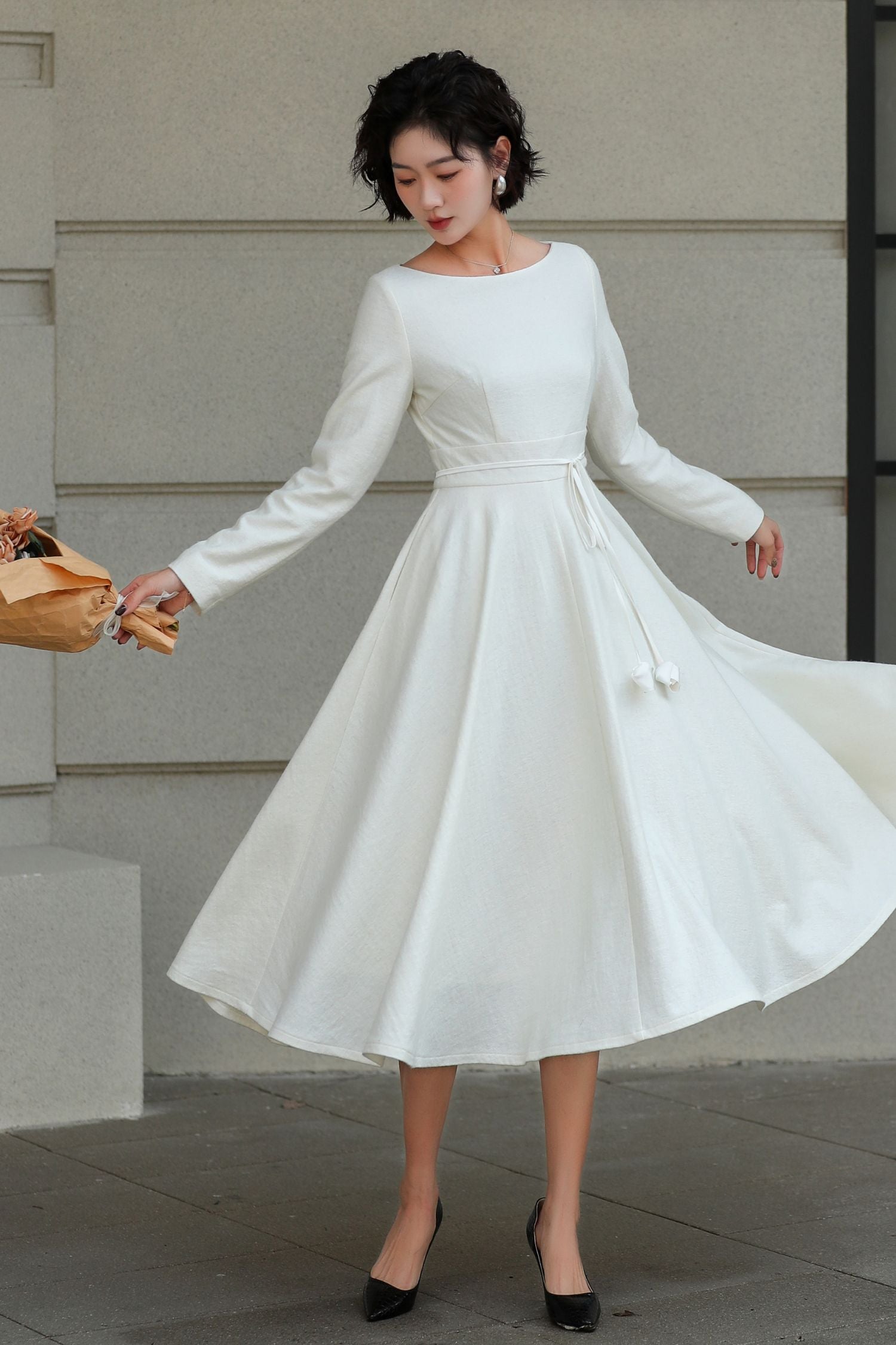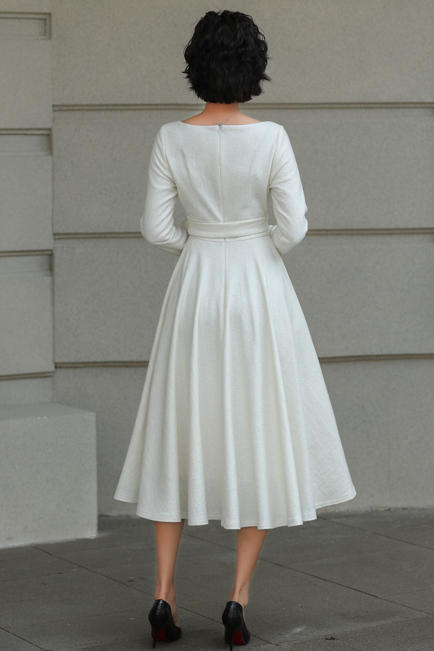 Imagine a crisp autumn morning, wrapped in the warmth of this handmade wool blend dress that captures timeless vintage charm. Inspired by 1950s silhouettes, it offers both elegance and comfort for your winter wardrobe. Perfect for weddings, gatherings, or serene weekends, this dress brings artisan craftsmanship to life.