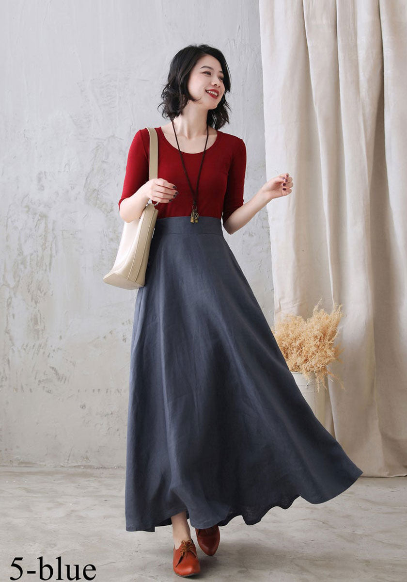 Gray A-Line Maxi Linen Skirt For Women 2822
