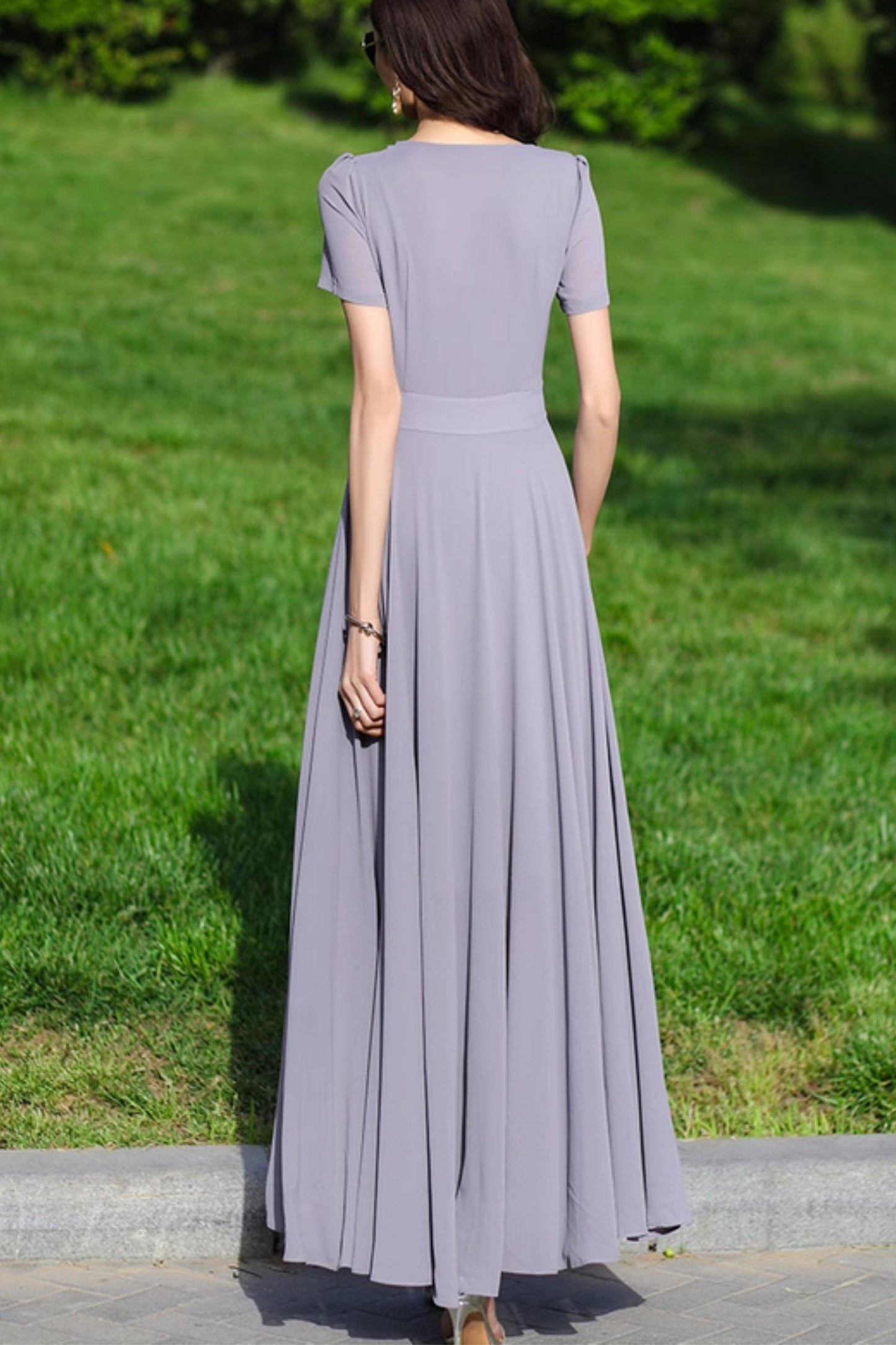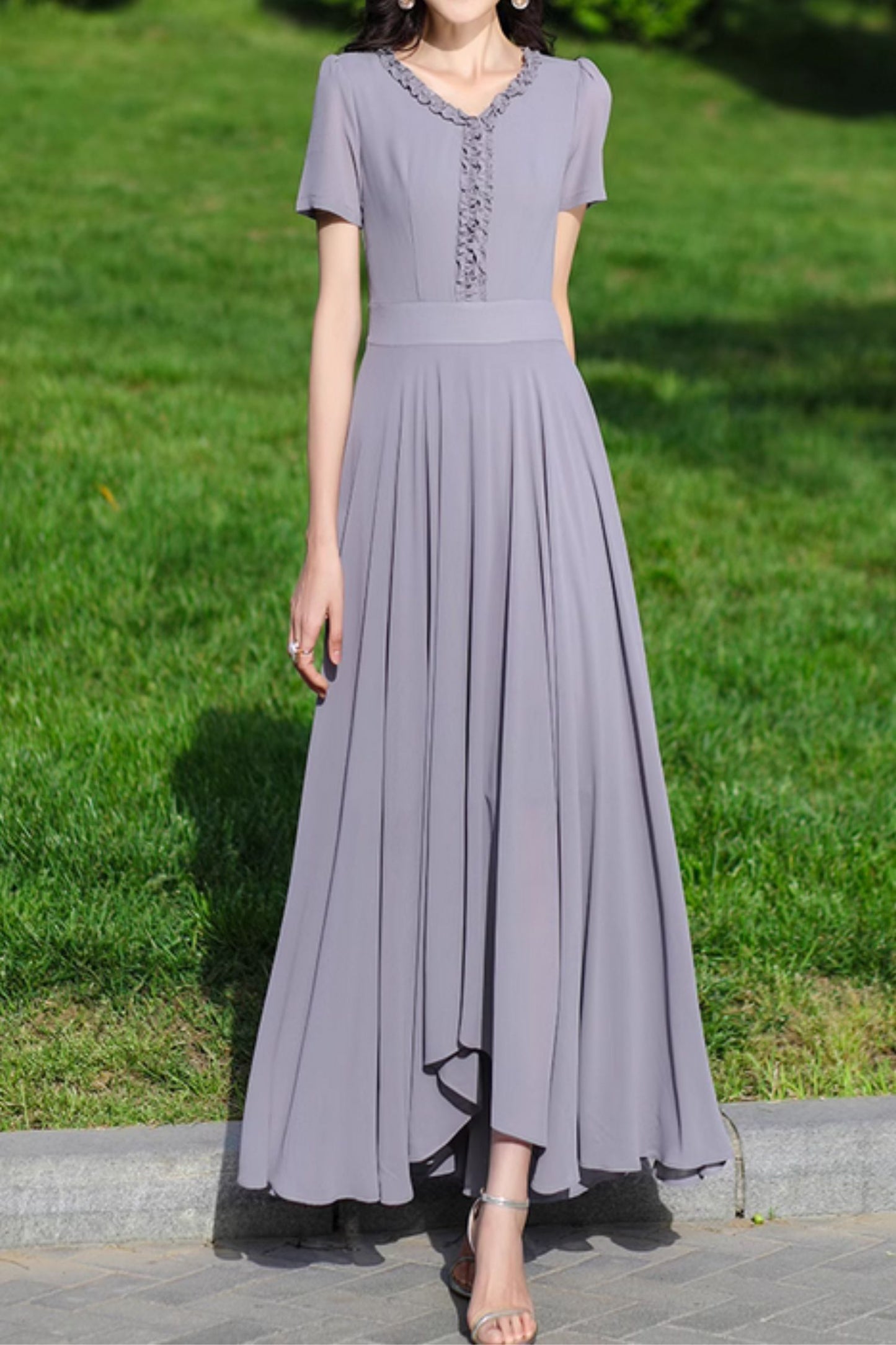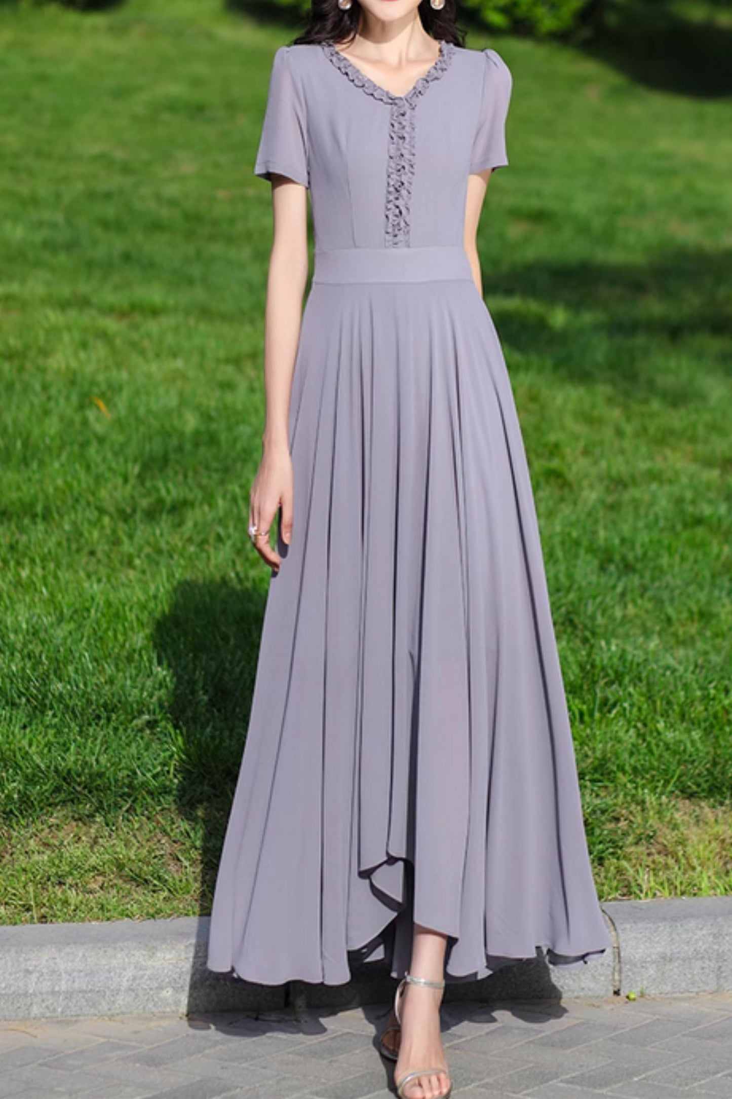 Expertly crafted with a flowing chiffon fabric, this gray irregular maxi summer dress (5088) is perfect for any season. Its unique design offers both elegance and comfort, making it a versatile addition to any wardrobe. Make a statement at any event with this effortlessly stylish dress.