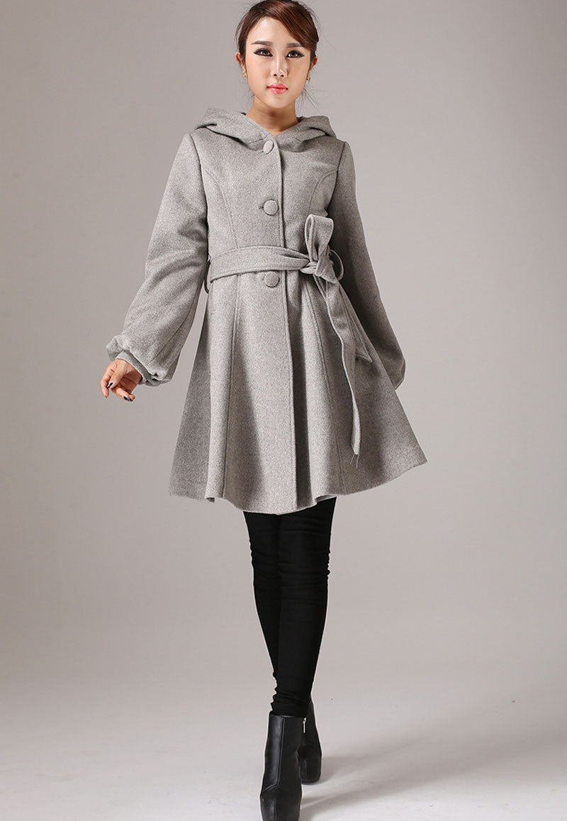 Embrace the cold-weather months in style with this gray short wool coat accented with Hood, Lantern Sleeve. Designed with a Fully Polyester lining, this thick Gray wool coat with a self tie belt adds a timeless and charming touch to your ensembles