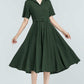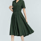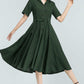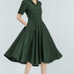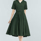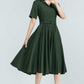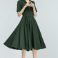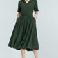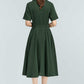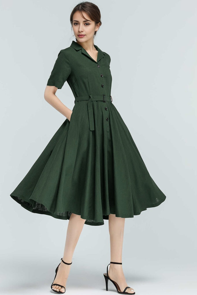 Vintage Green Linen Shirt Dress – 50s Inspired Swing Midi Dress 5764