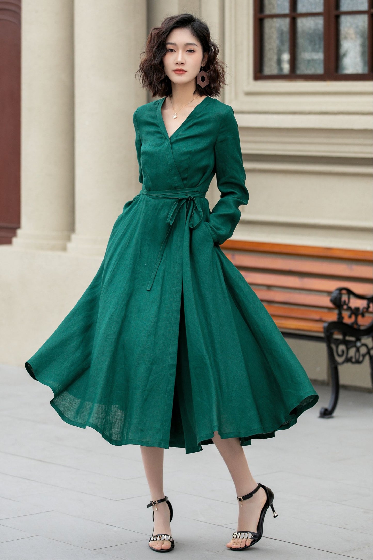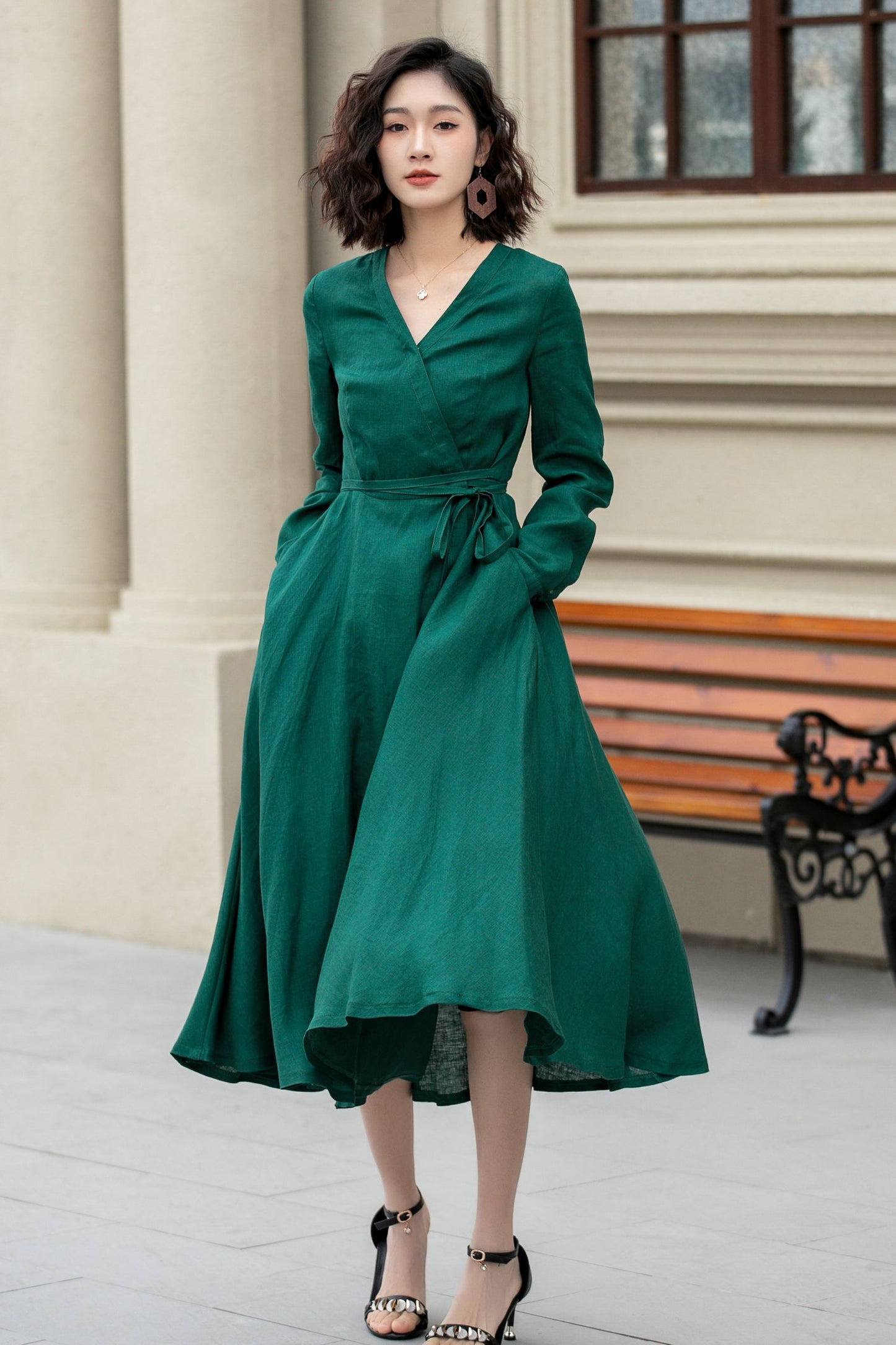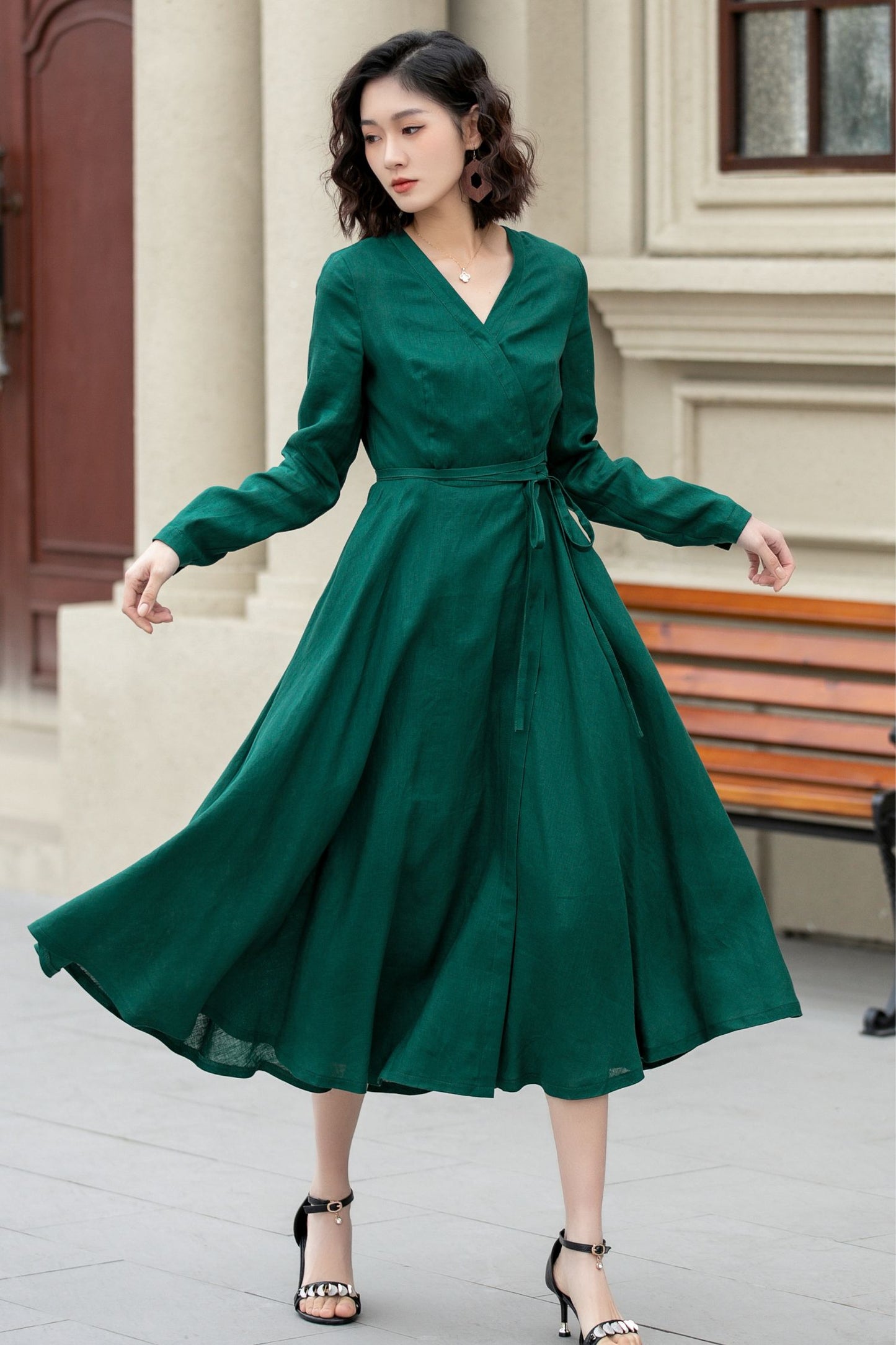 Conquer spring in this vibrant green fit and flare wrap dress. Channel your adventurous spirit with bold style and effortless motion. The flattering wrap design is perfect for any occasion. Take a risk and stand out in this must-have dress!
