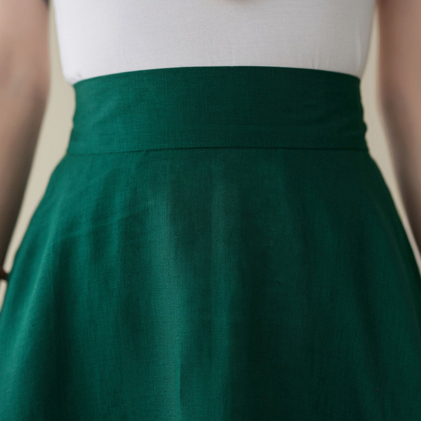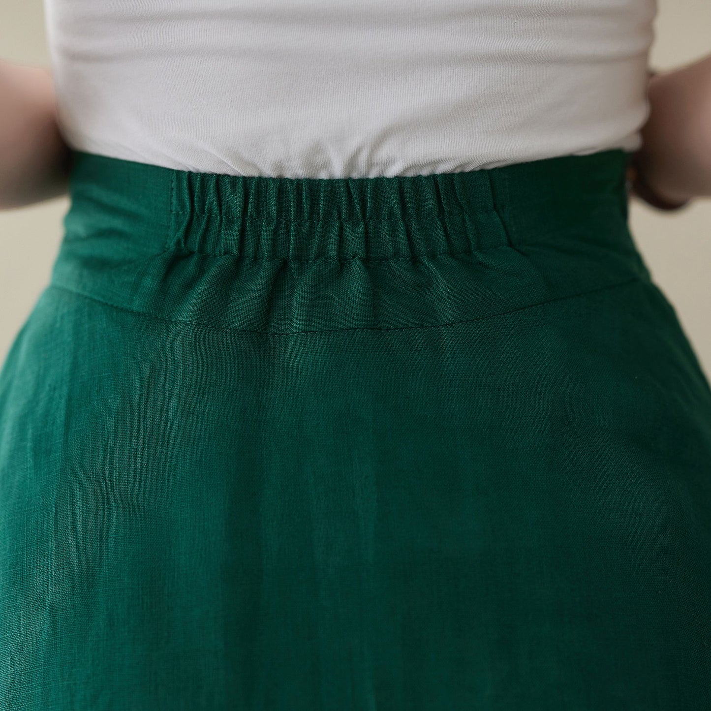 This green skirt designed with right hidden zipper, elastic band on back for sure and comfortable fit. This skirt can be a basic piece in your wardrobe. Due to its classic cut and rich solid color it can be easily matches with many different styles. You'll feel ultra chic and modern wearing the A Line skirt throughout the year.