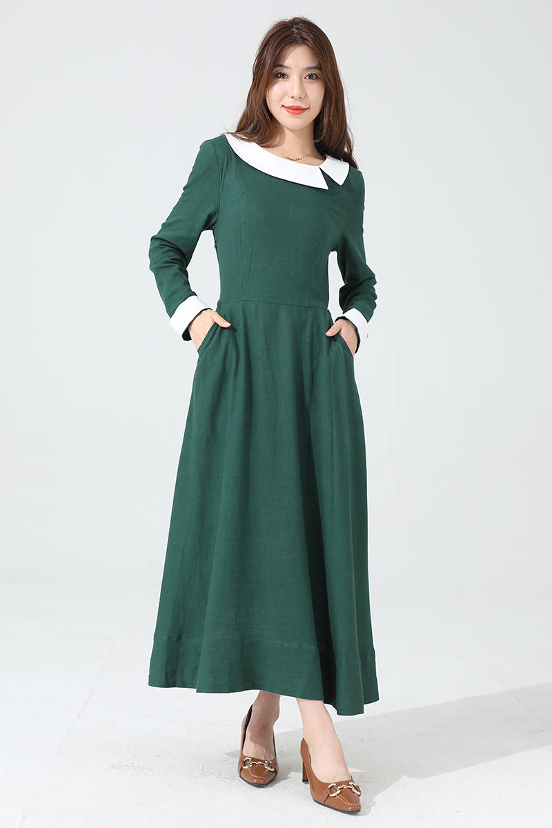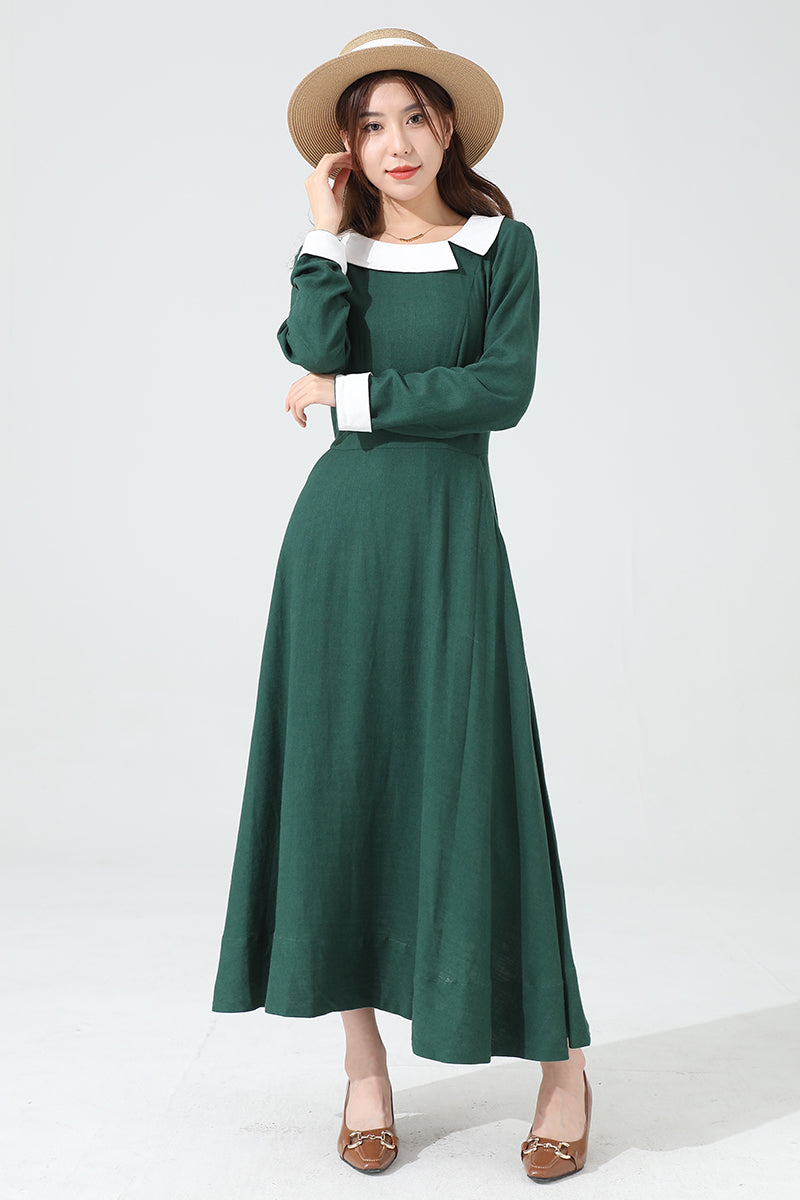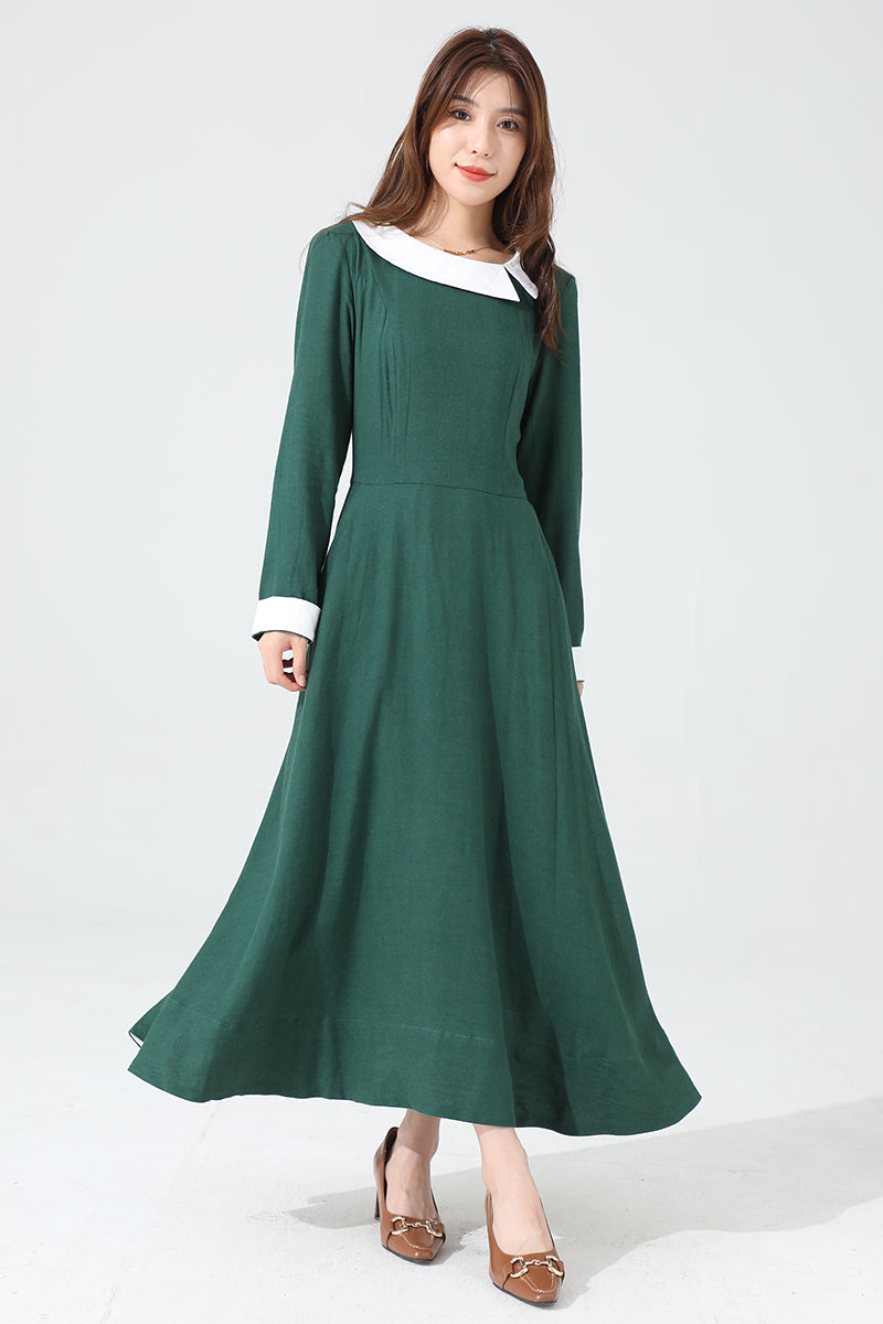 This Green Long Sleeve Linen Maxi Dress is made from high-quality linen material, providing both comfort and durability. The long sleeves and maxi length make it a versatile and elegant option for any occasion. The vibrant green color adds a touch of sophistication, making this dress a must-have for any wardrobe.