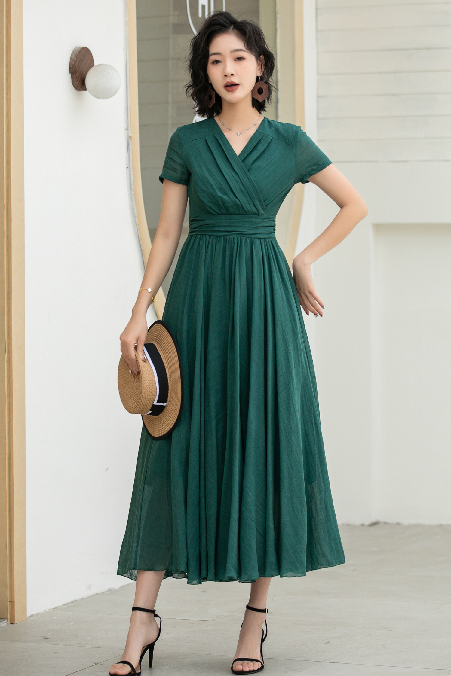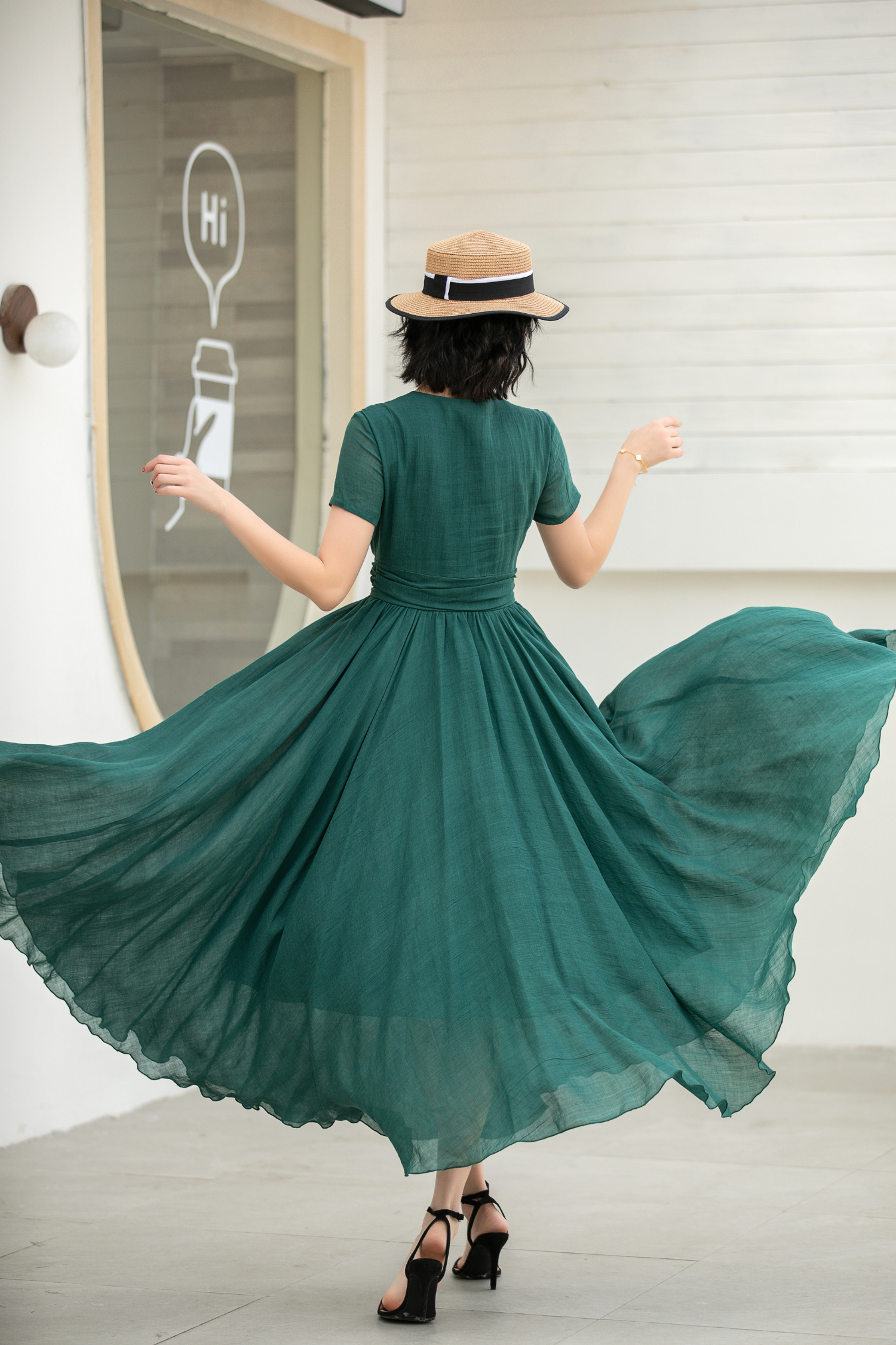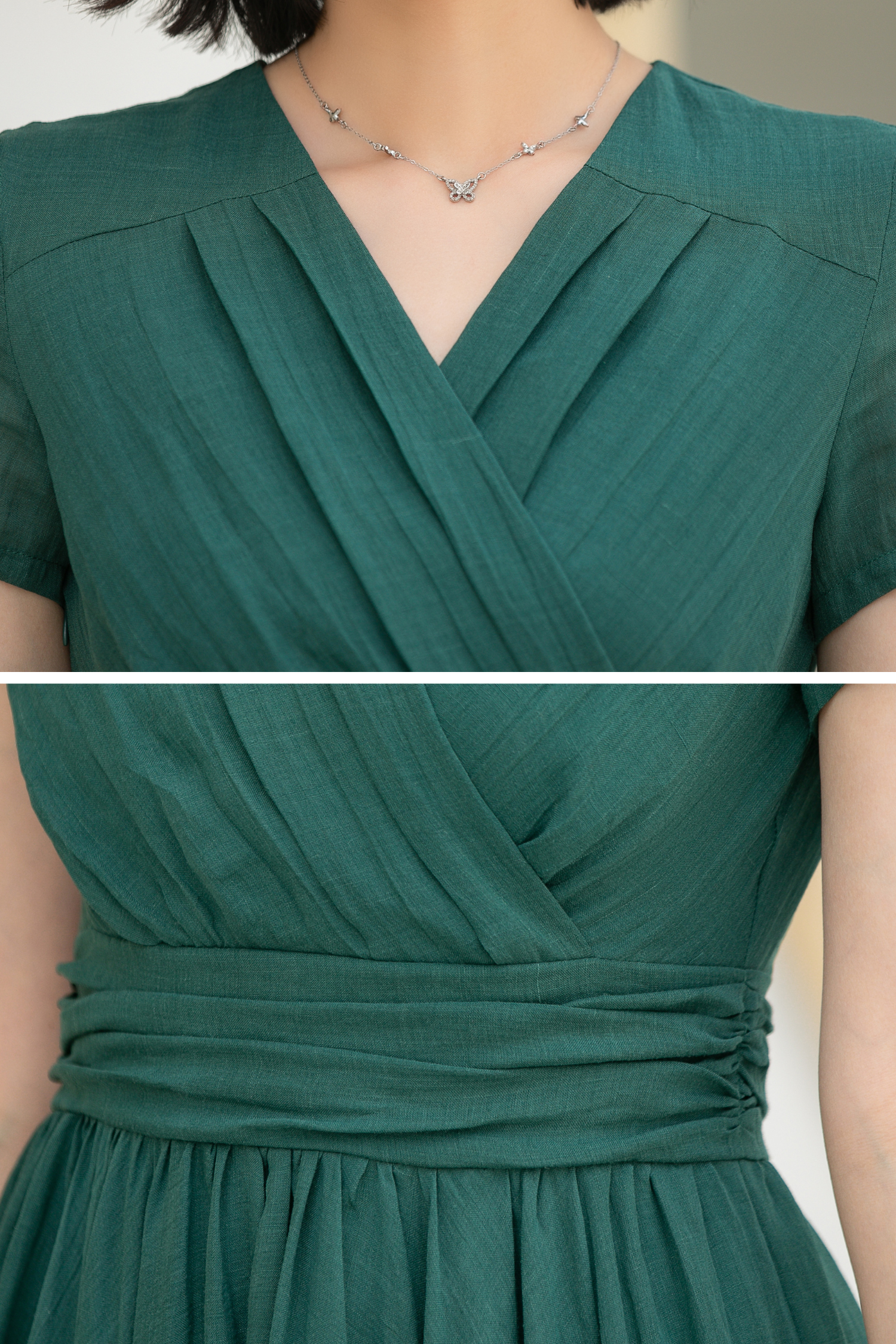 This flowy green dress makes you look different on a brilliant summer day. Delicate dresses with very large hemlines make them distinctive and have a convenient lining. Always look forward to this dress!