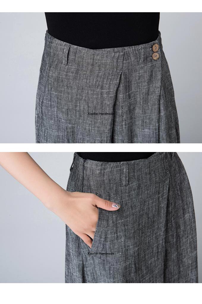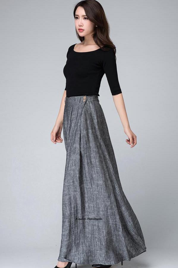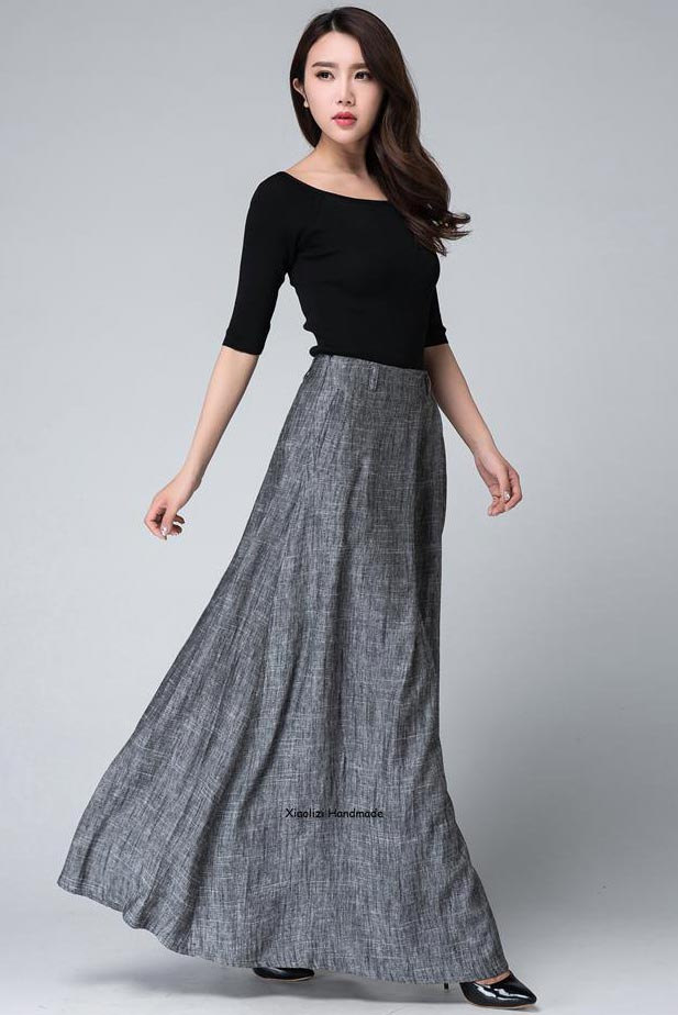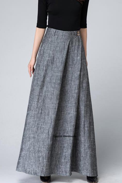 Grey Linen Cotton Maxi Skirt – Women’s High Waist Pleated Long Skirt 1506