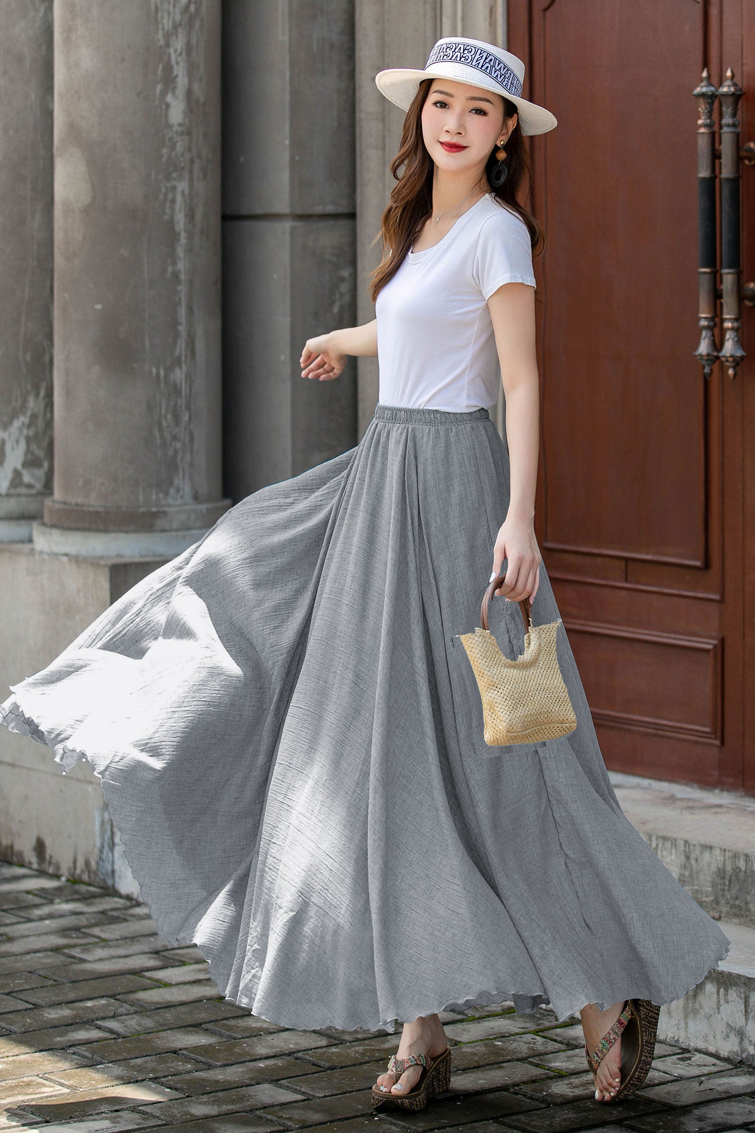 This skirt is the definition of flowy grace. Crafted from lightweight, breathable cotton with a soft lining, it moves beautifully with every step. The high-waisted elastic band flatters your silhouette while offering a flexible, comfy fit.