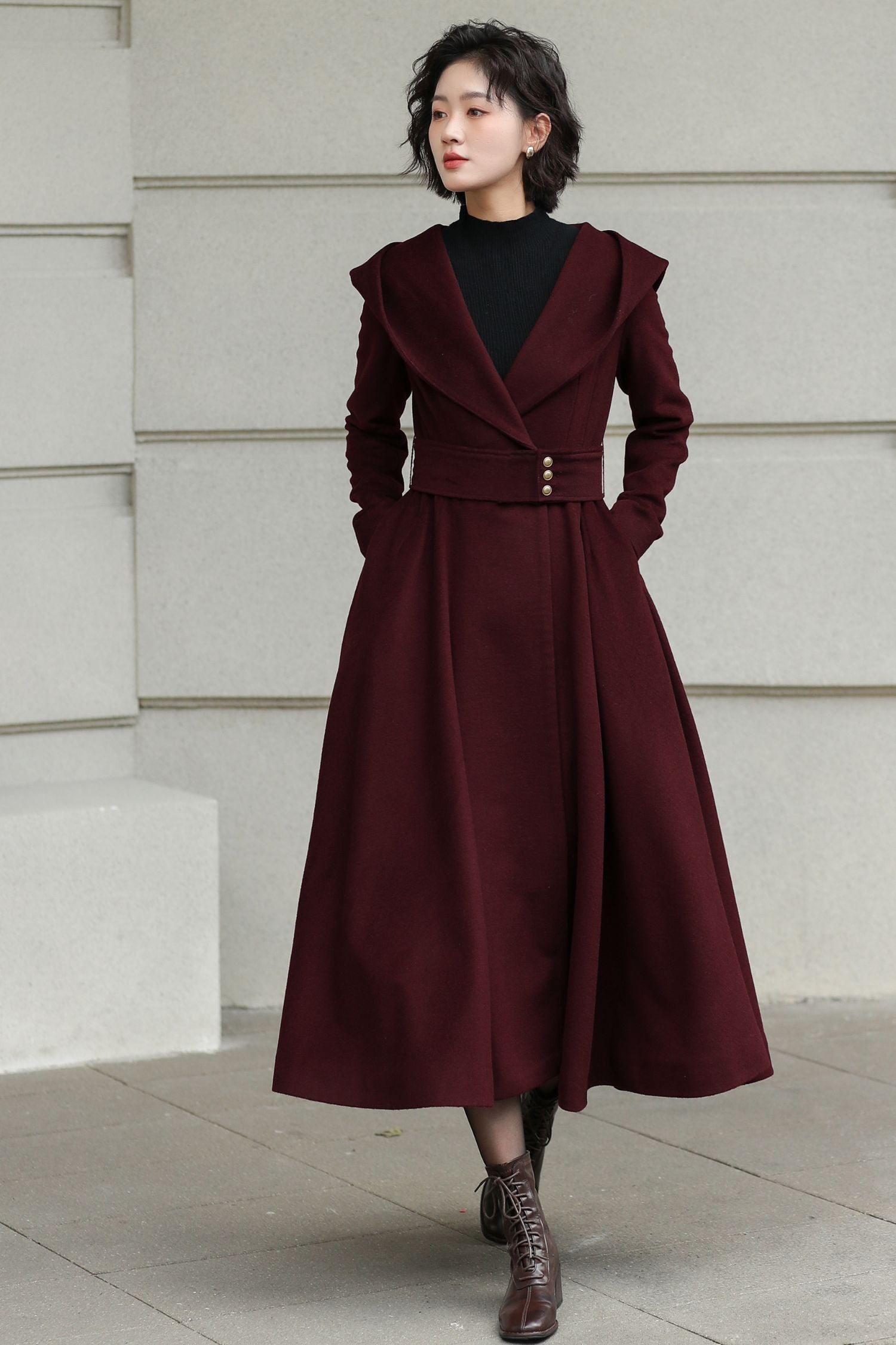 Handmade Hooded Long Wool Coat for Women – Elegant Winter Fashion 6534