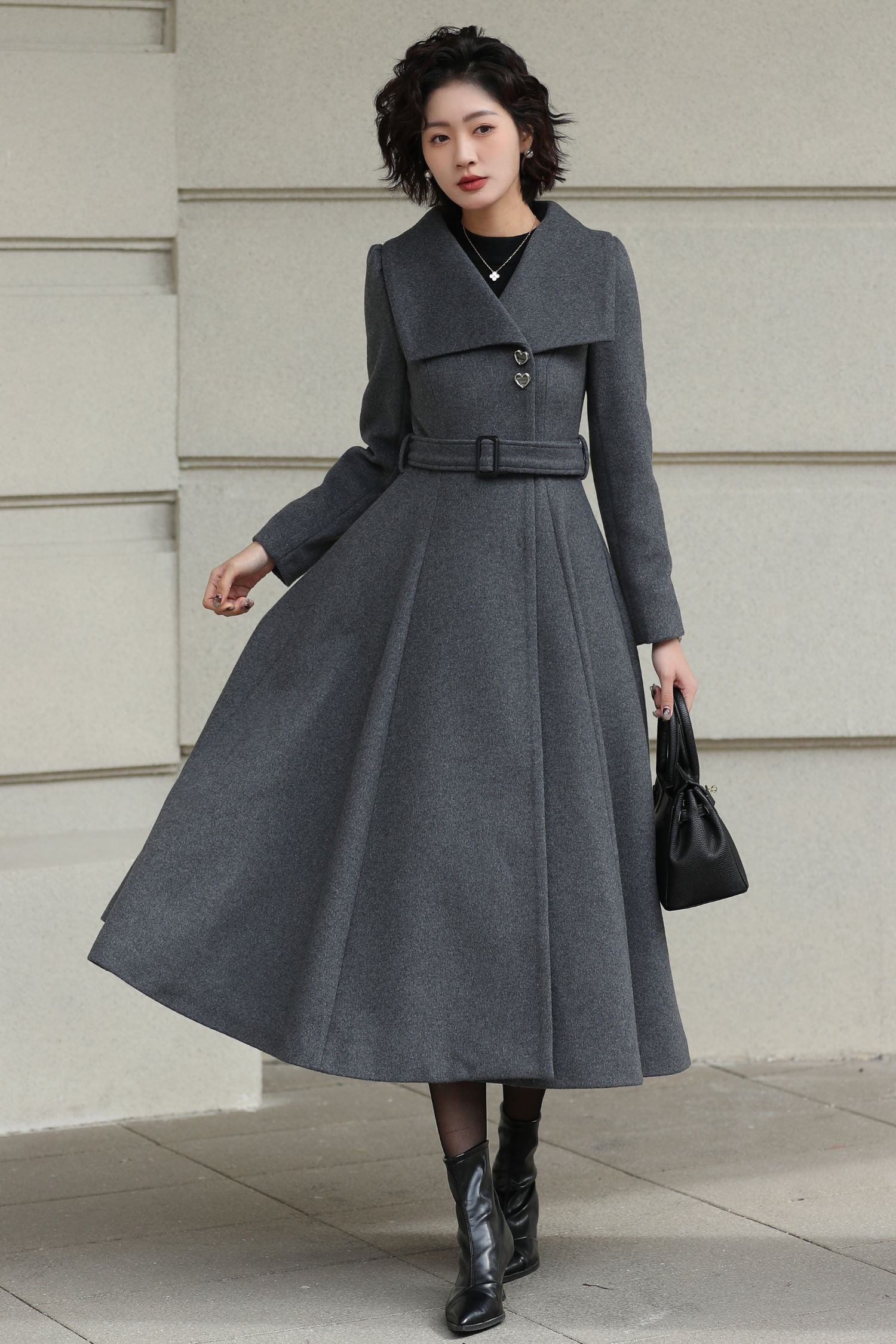 Imagine stepping into winter wrapped in a coat that feels composed, elegant, and quietly romantic. This handmade vintage wool coat is designed for women who value timeless tailoring and graceful femininity. Crafted in a classic gray wool blend, it reflects the refined beauty of vintage outerwear while remaining effortlessly wearable today.