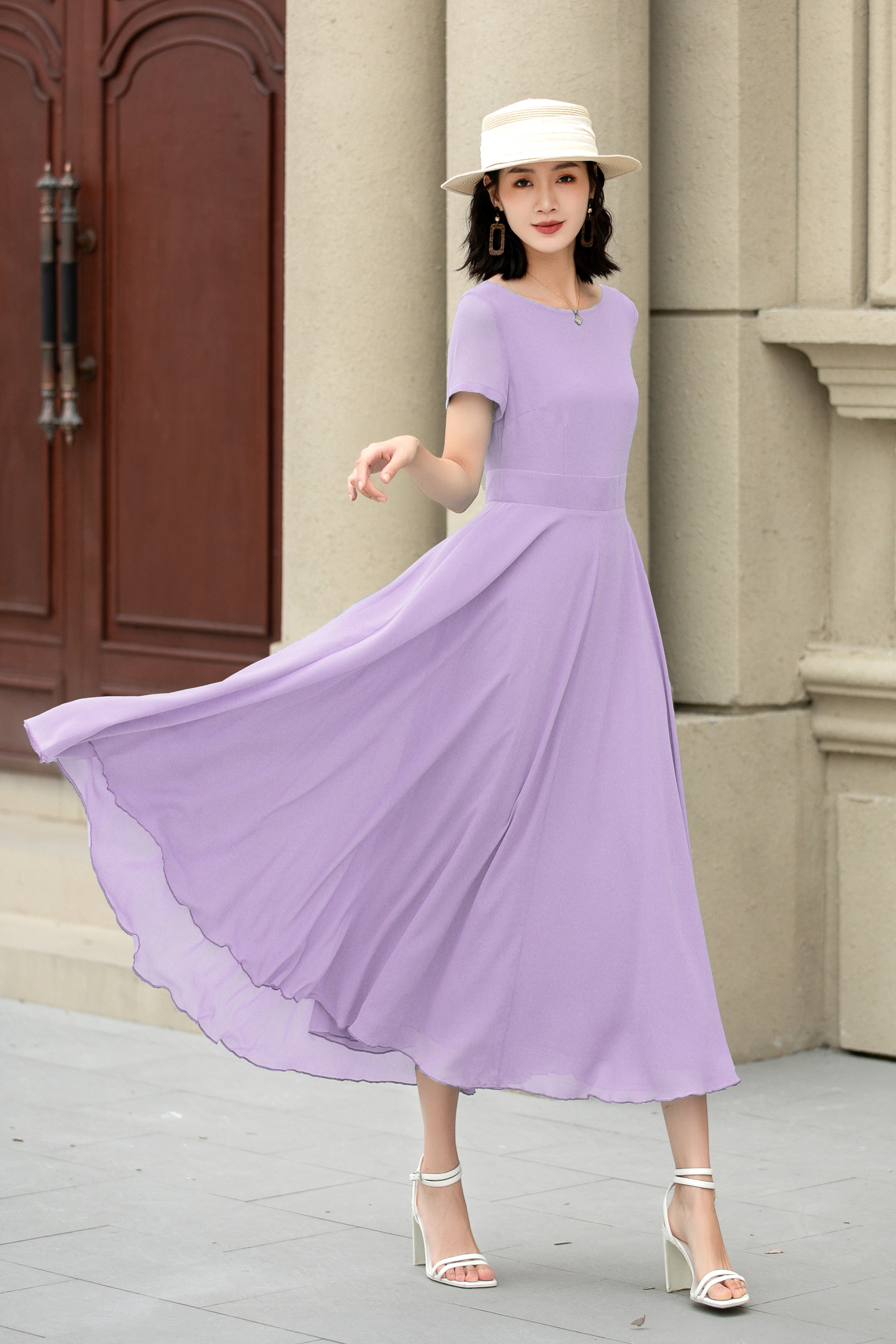 Handmade Womens's swing fit and flared chiffon dress 6117