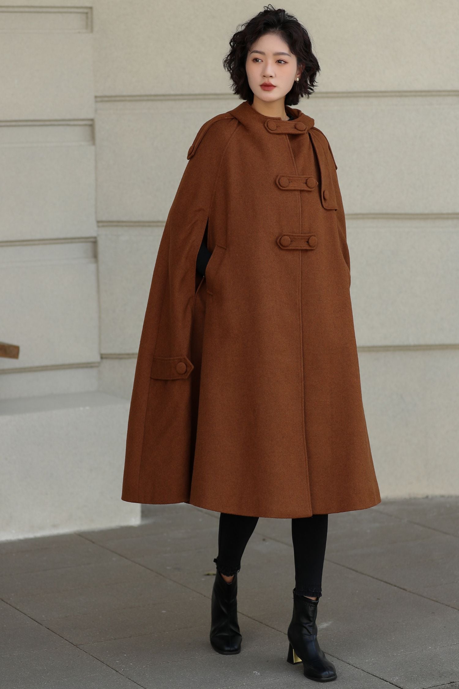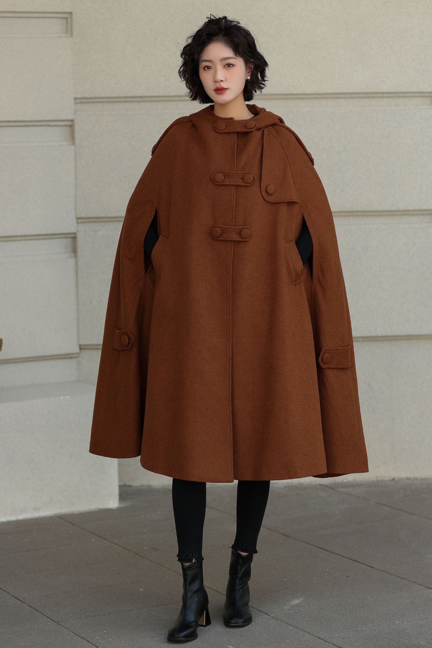 This handmade wool hooded cape combines timeless vintage style with practical warmth. Crafted from high-quality wool, it offers excellent insulation for chilly winter days. The integrated hood provides added protection against cold winds, while convenient pockets offer functionality without compromising design. Perfect for layering, this cloak brings both elegance and comfort to your winter wardrobe.