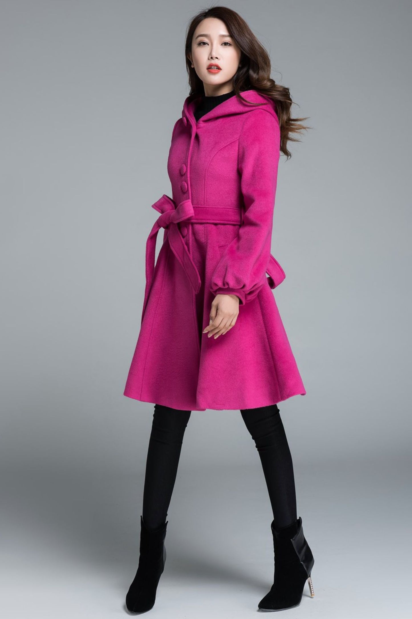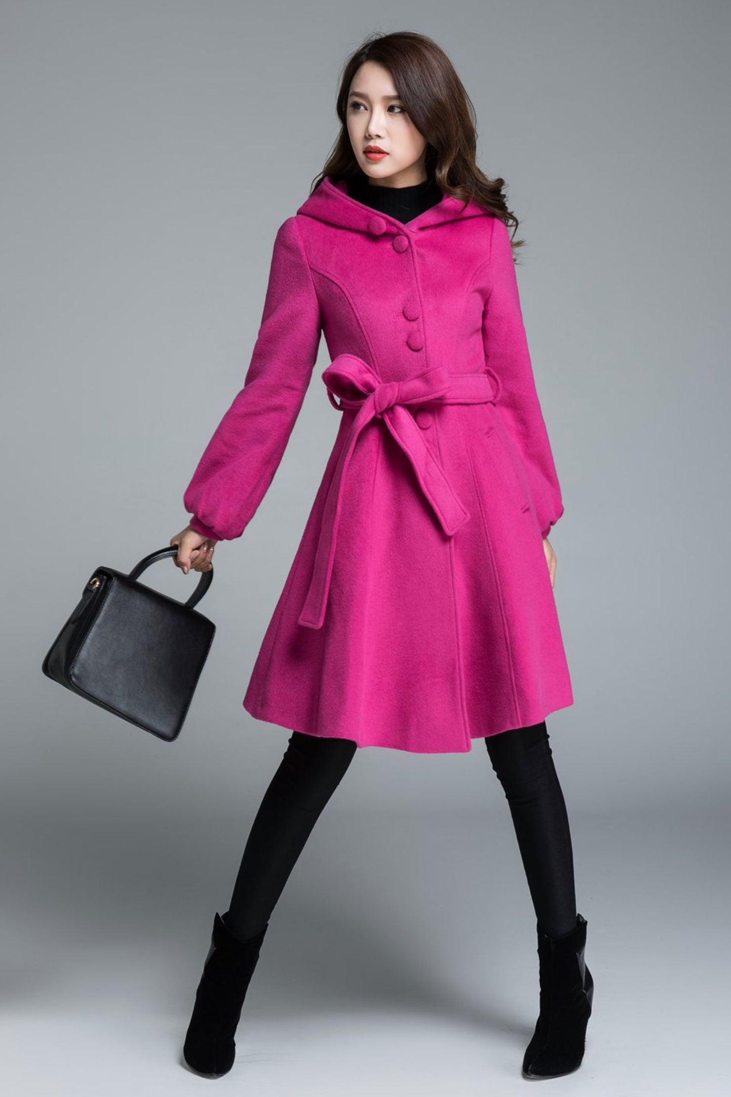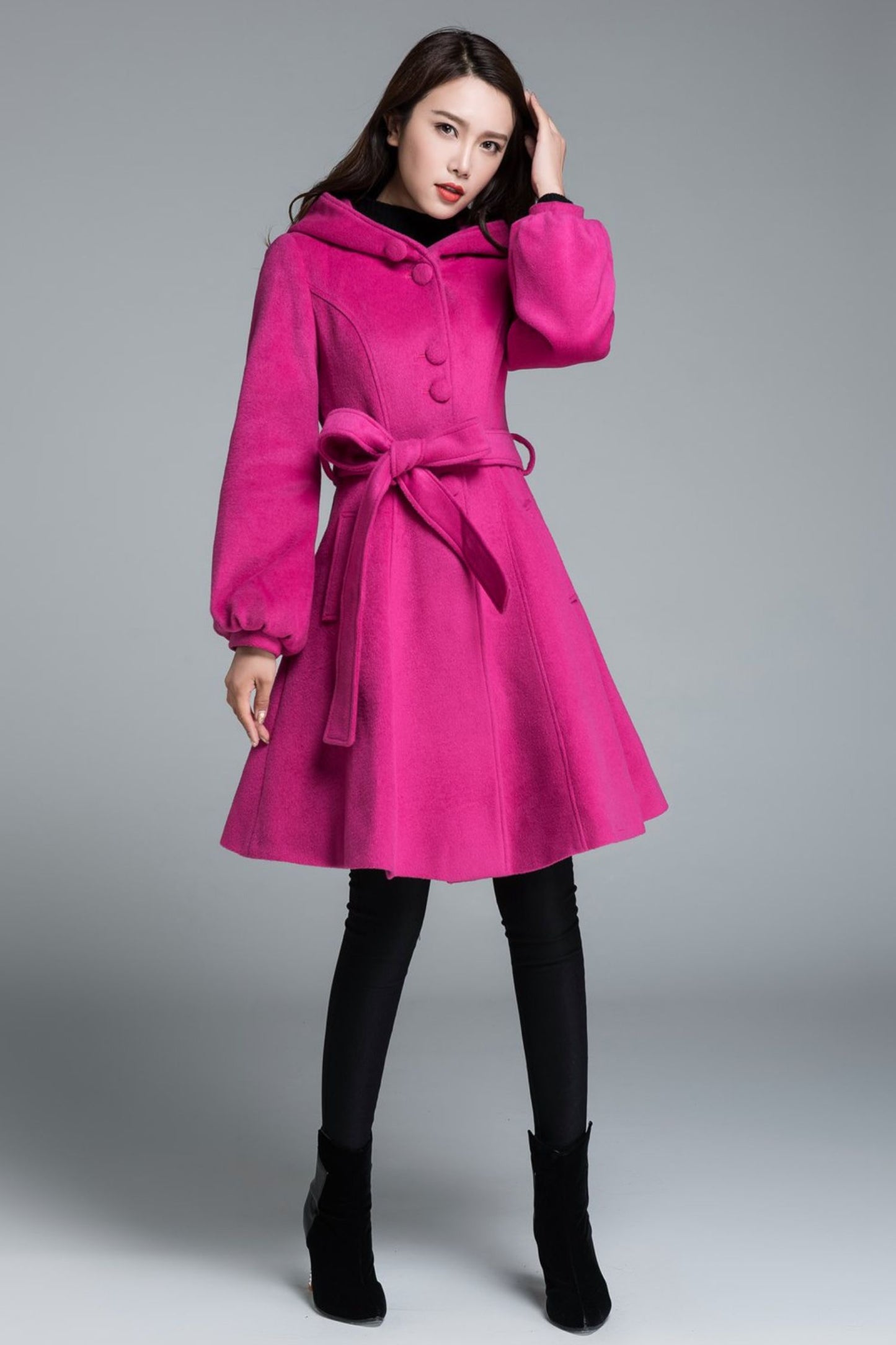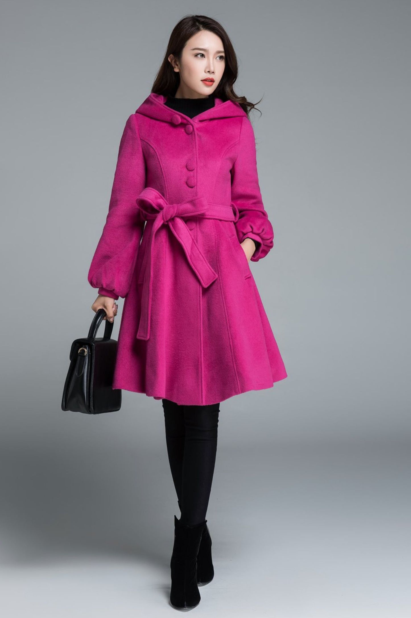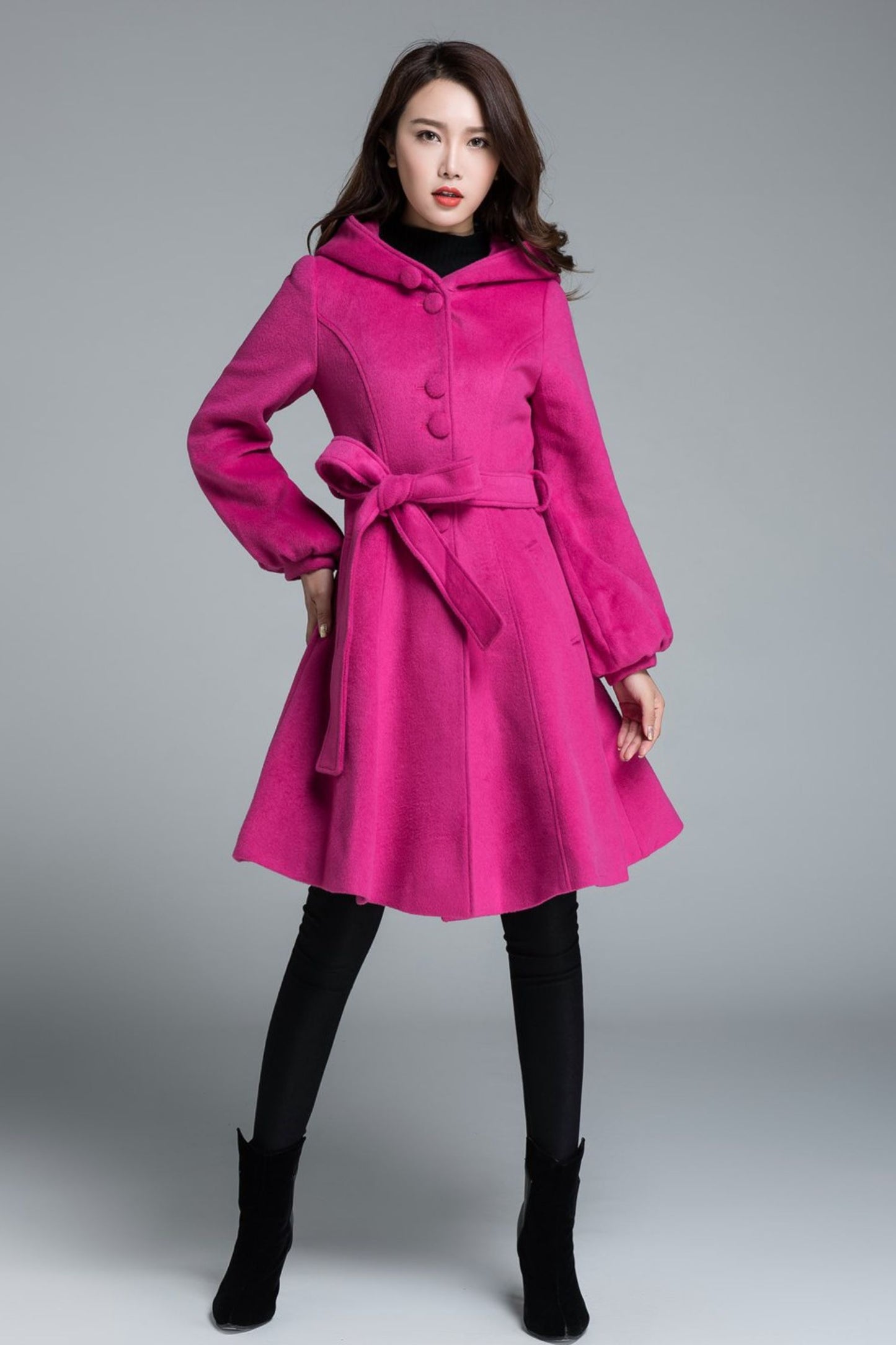 Effortlessly chic and functional, our hooded swing wool coat (style 1647) features a tie belt waist for a flattering fit. Keep warm and stylish with the added hood, perfect for the colder months. A must-have for any wardrobe.