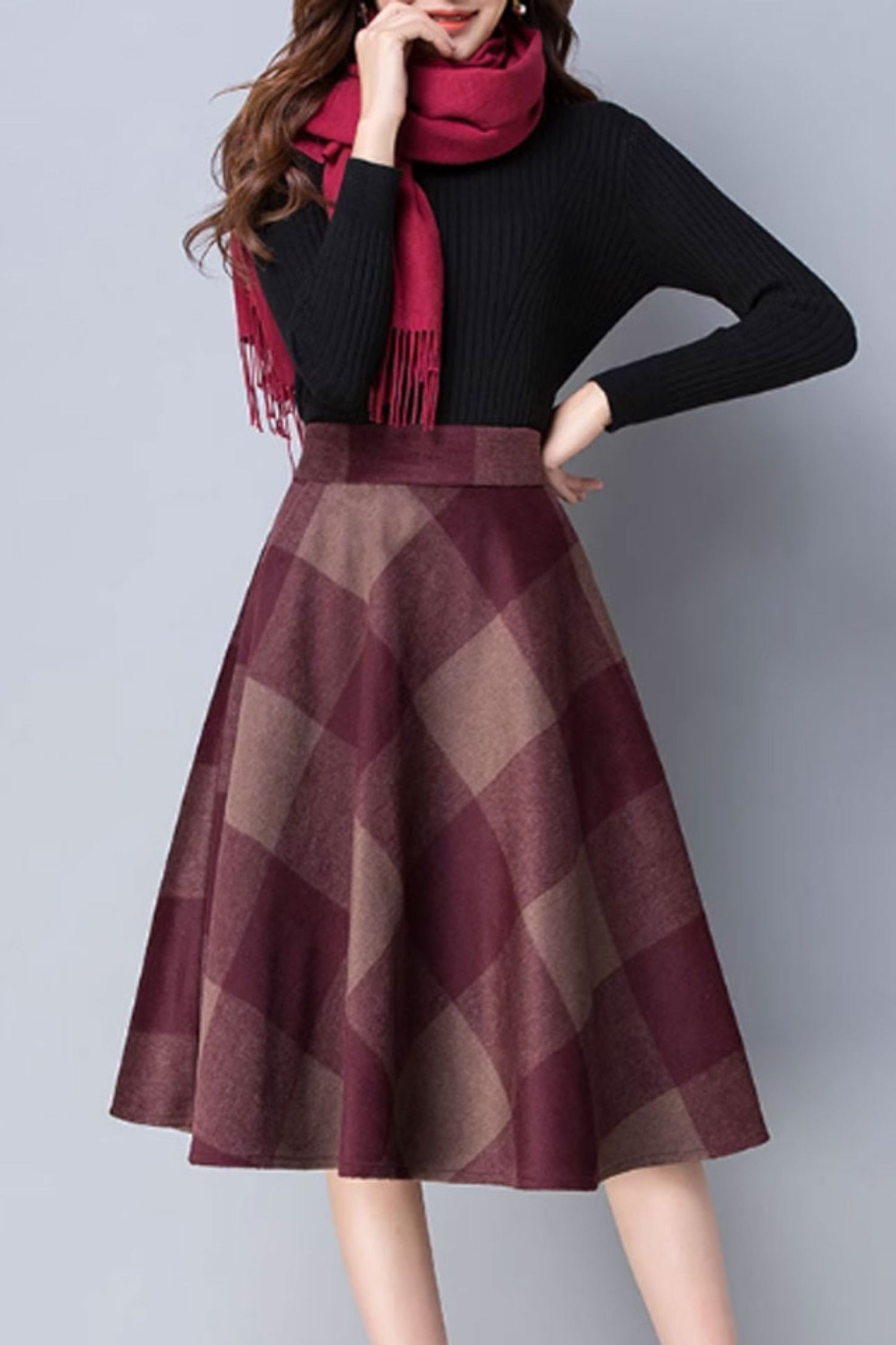 Elevate your winter wardrobe with our knee length plaid wool skirt. Crafted with warmth and style in mind, this skirt is the perfect addition to your cold-weather collection. Its elegant knee length and classic plaid pattern create a sophisticated look, making it a must-have for any fashion-forward individual.