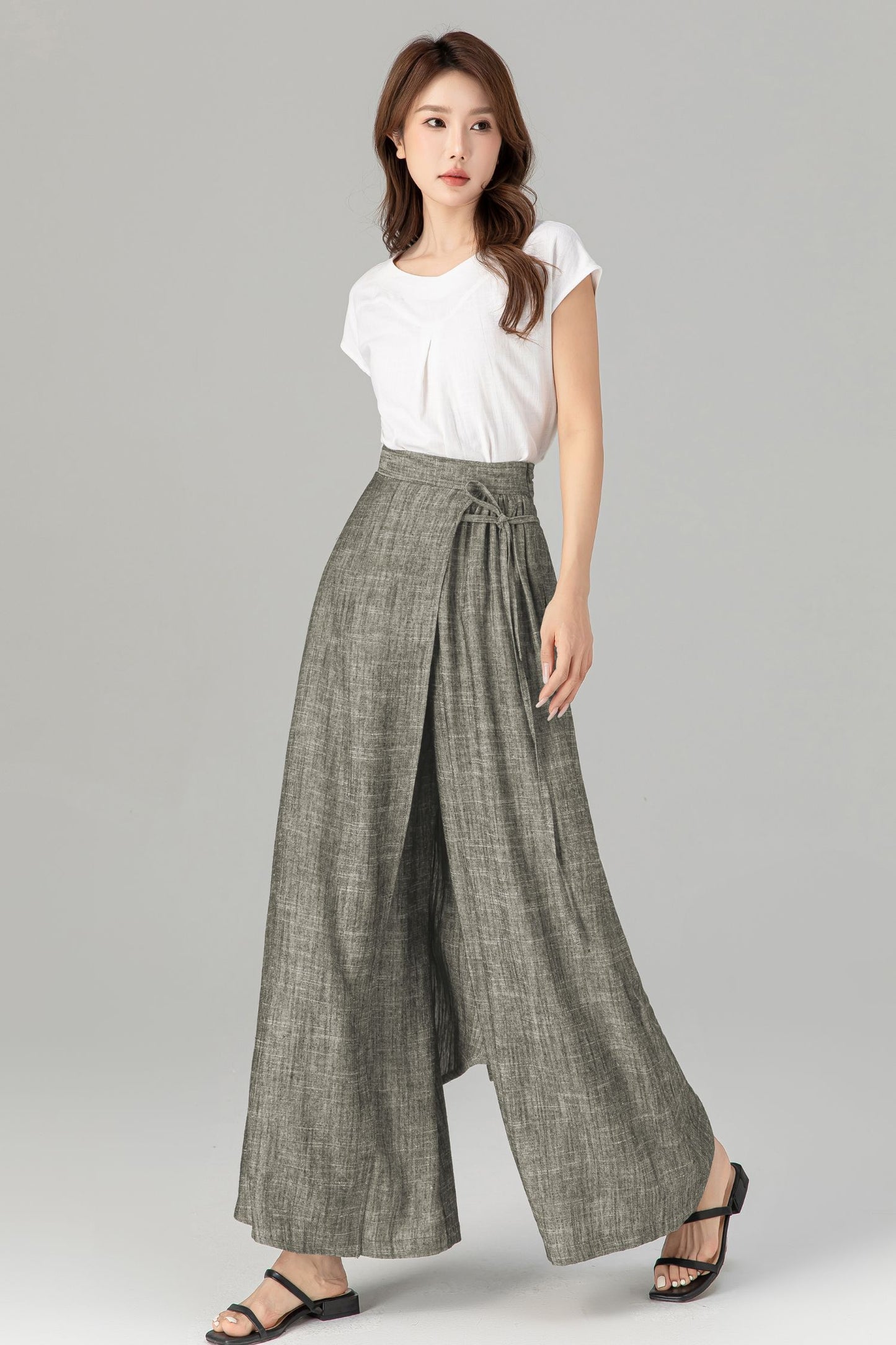 Crafted from high-quality linen fabric, they showcase a textured appearance that adds to their aesthetic appeal. The wide, flowing silhouette offers both style and comfort, making them a versatile addition to your wardrobe.