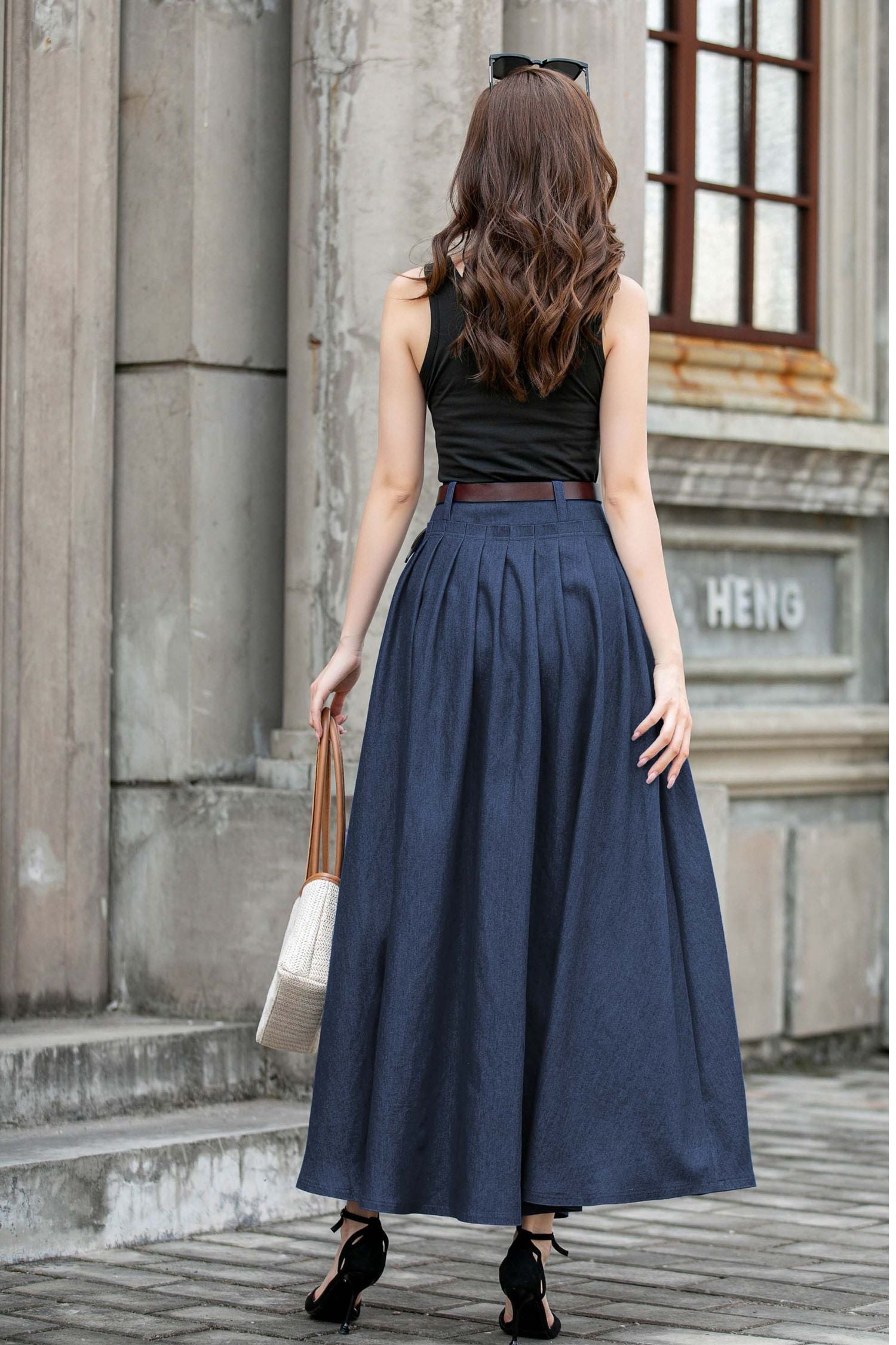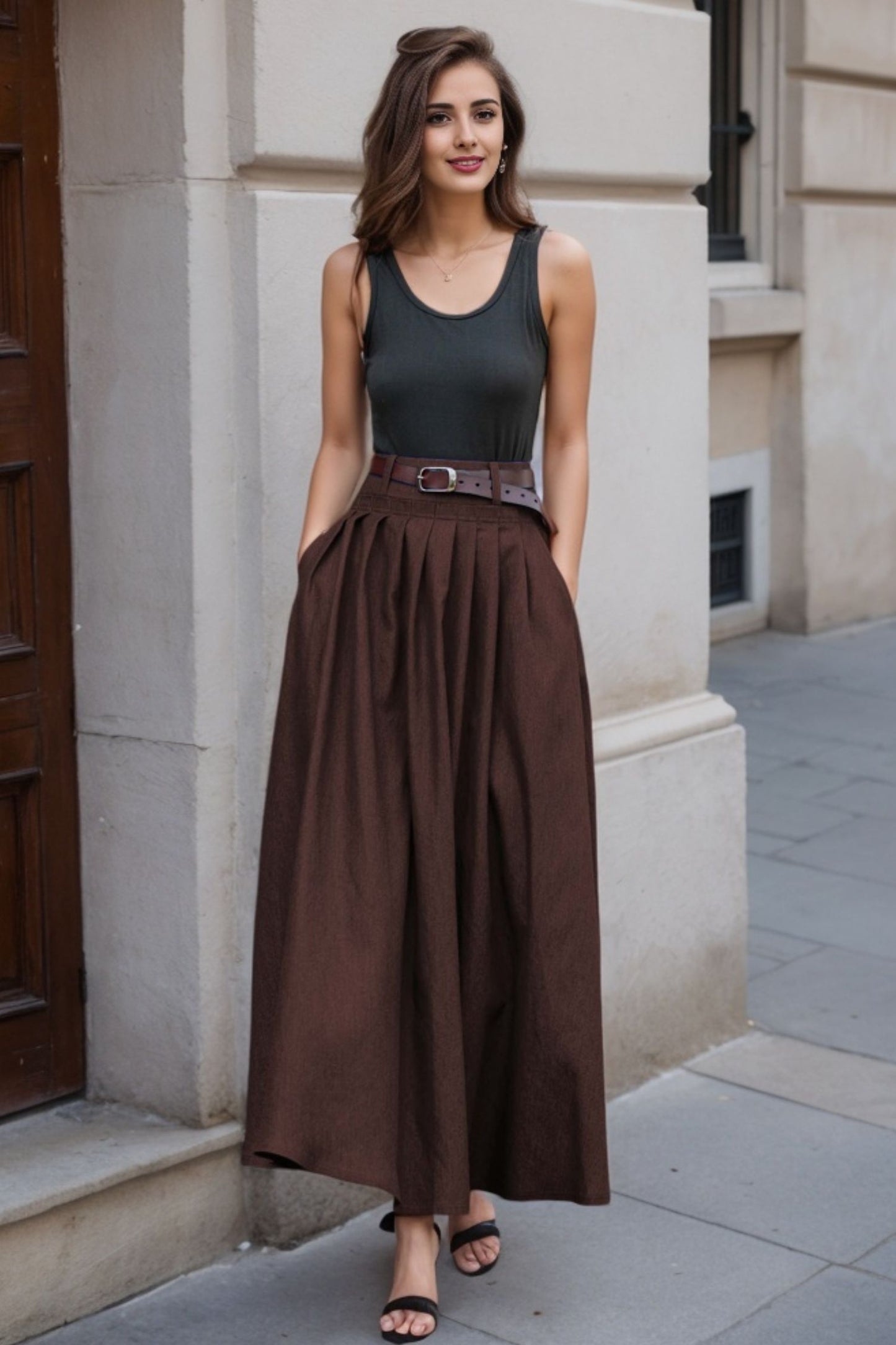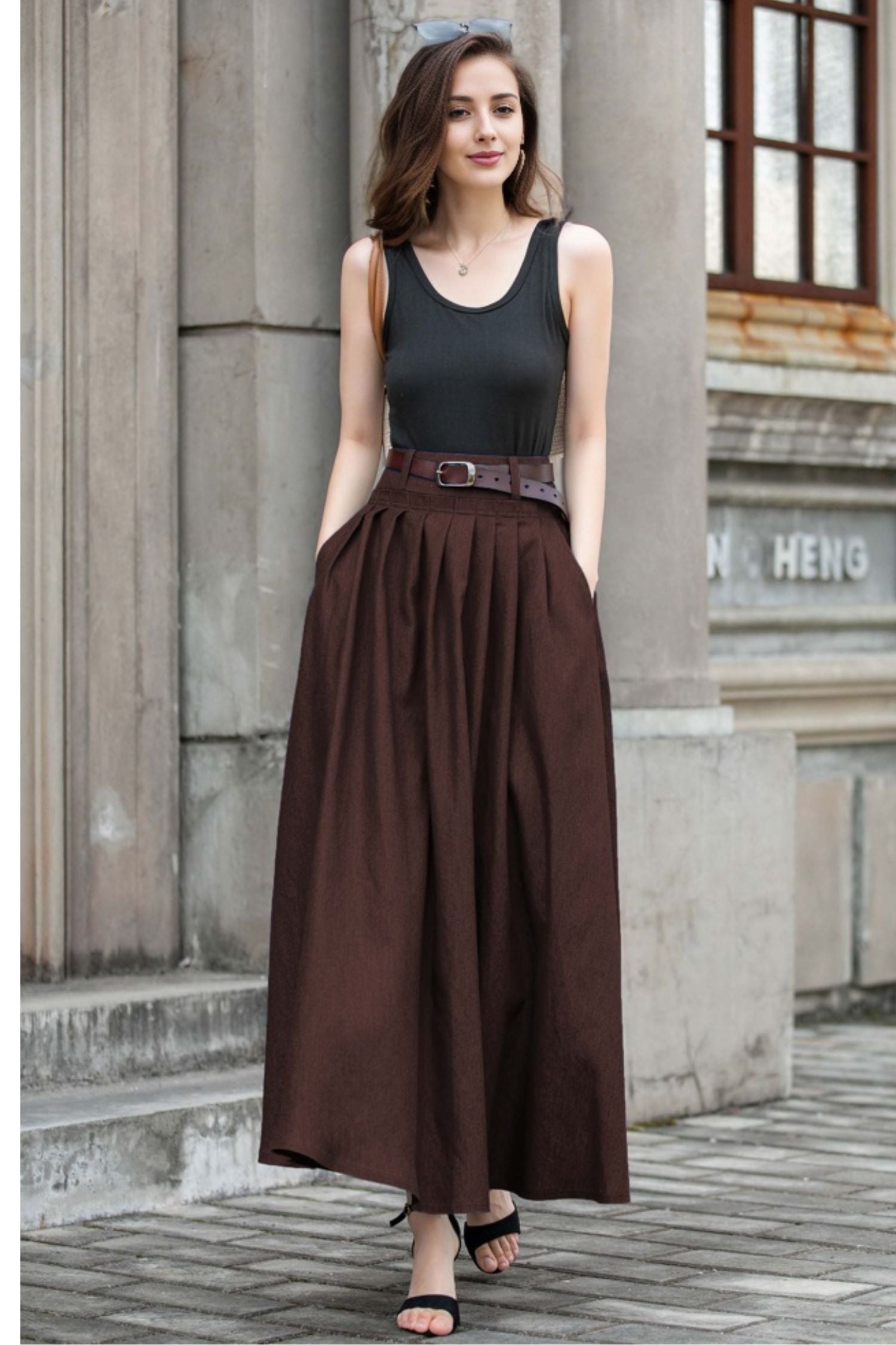 Get dressed and out of the door in classic good looks with this pleated Long maxi skirt, crafted with soft cotton fabric, featuring pleated waist detail and two big pockets