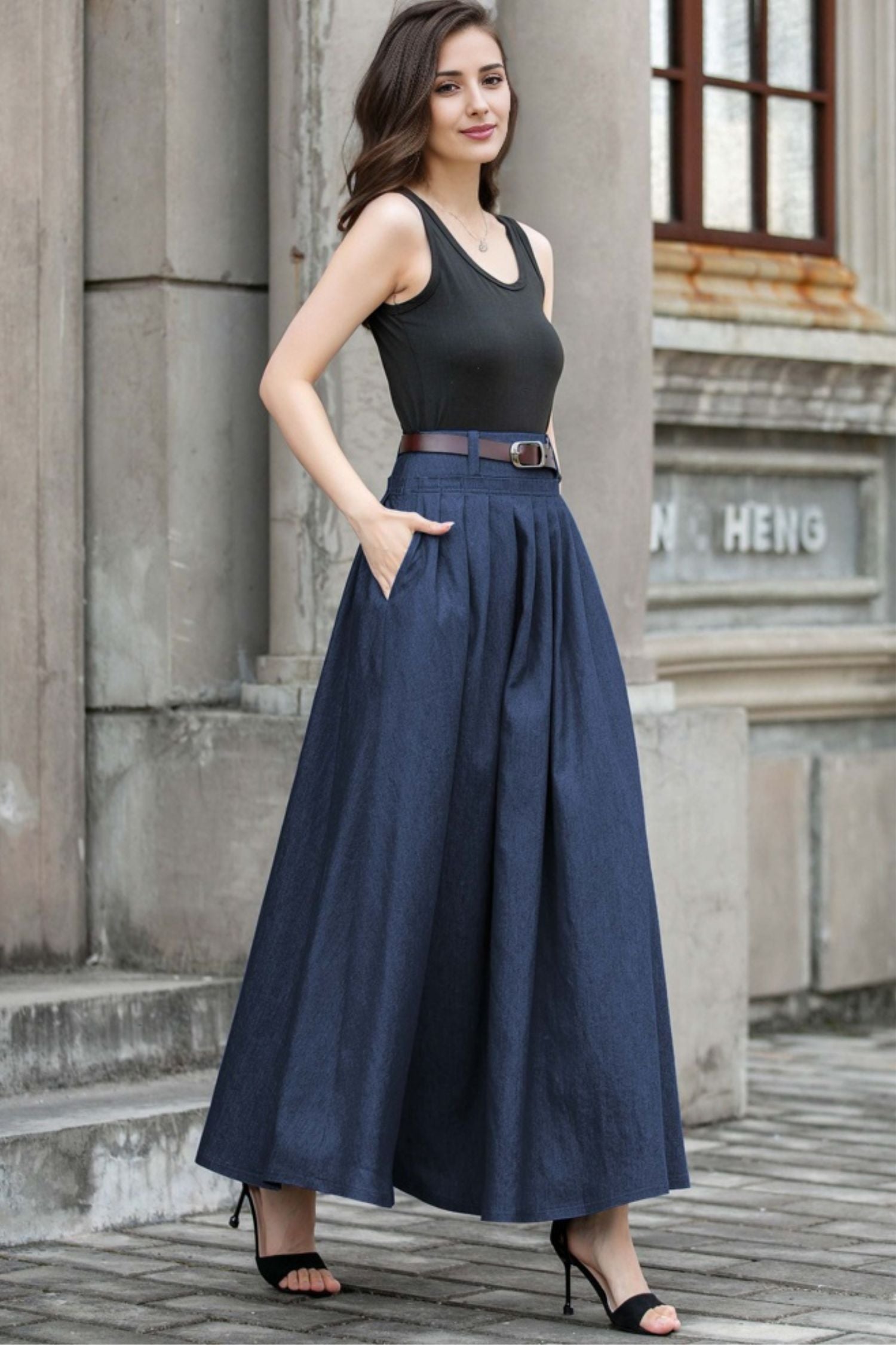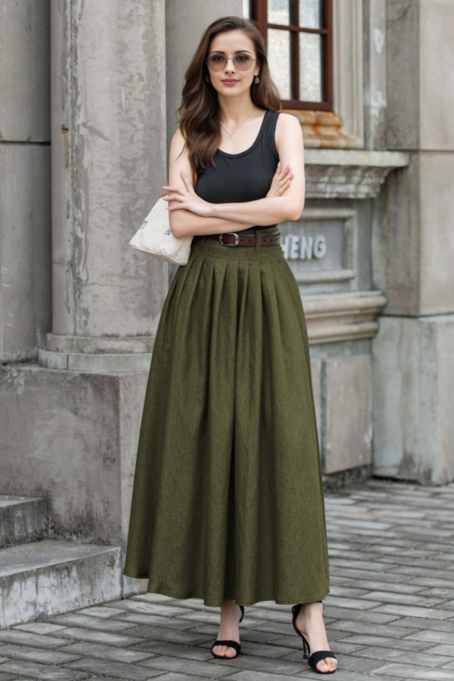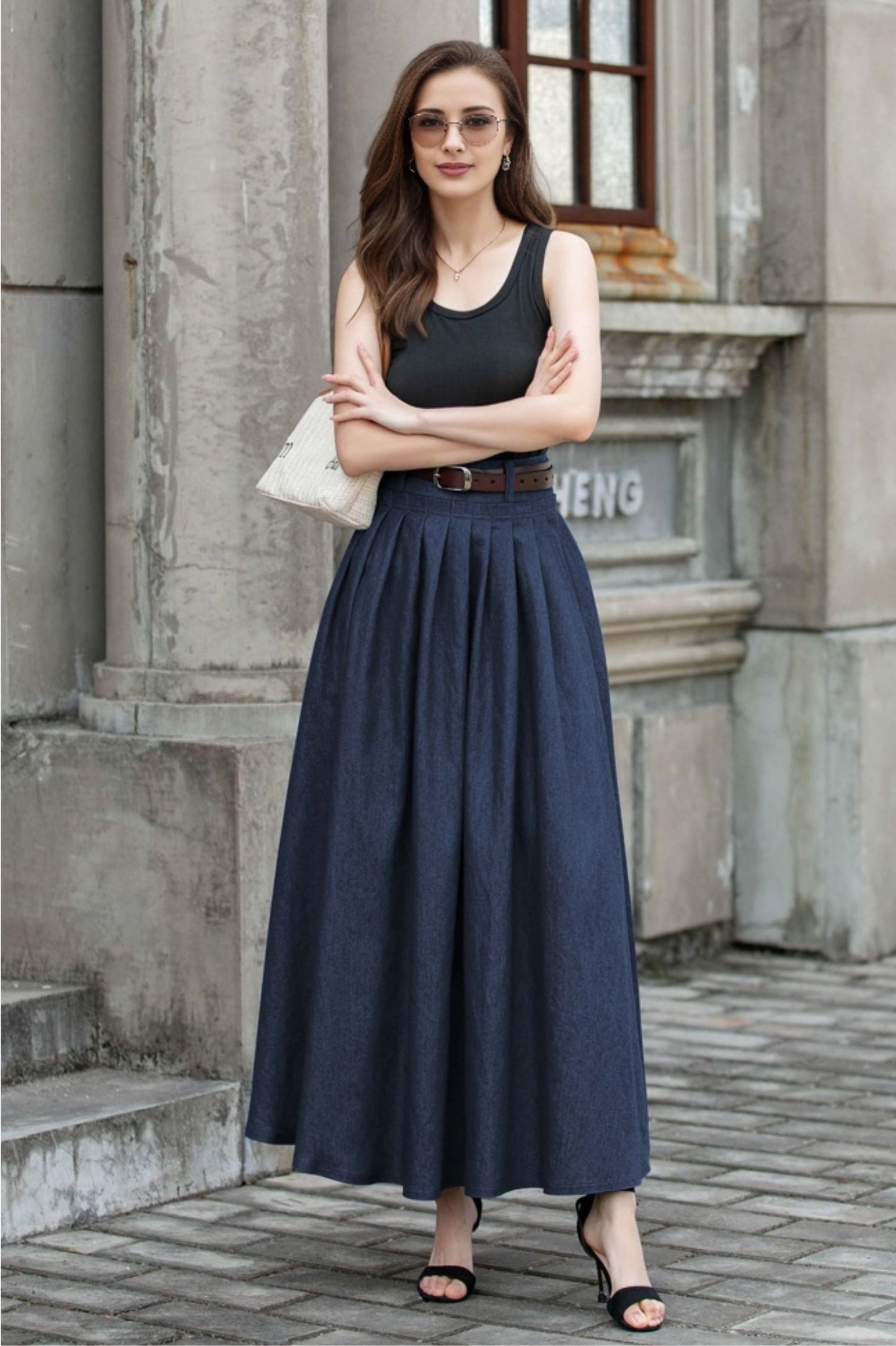 Get dressed and out of the door in classic good looks with this pleated Long maxi skirt, crafted with soft cotton fabric, featuring pleated waist detail and two big pockets