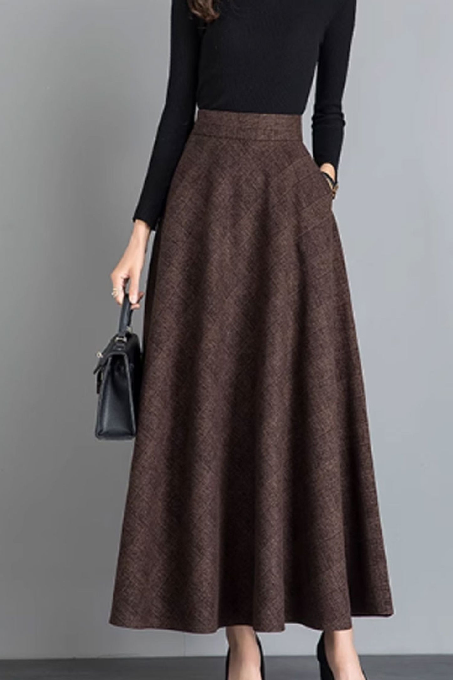 Experience the luxury and elegance of our Long Plaid Winter Wool Skirt. Made with premium wool fabric, this skirt is perfect for the colder months. With its classic plaid pattern and convenient pockets, it's both stylish and practical. Elevate your winter wardrobe with this sophisticated and exclusive addition.