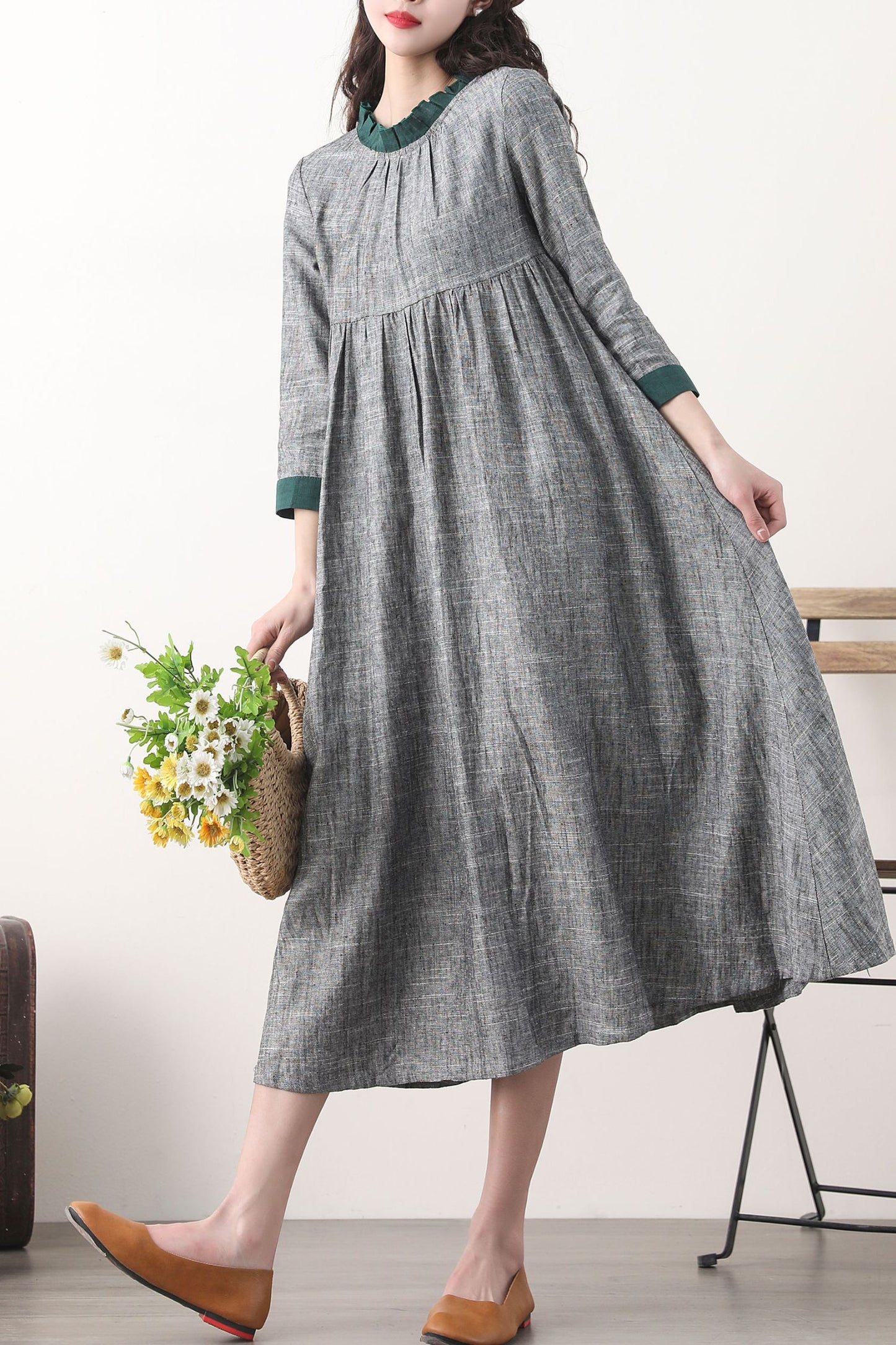 Embrace comfort and style with our loose-fitting linen dress. The relaxed silhouette allows for easy movement, making it perfect for casual outings or beach days. The natural hues complement various accessories. Elevate your wardrobe with this timeless piece that combines comfort and elegance.
