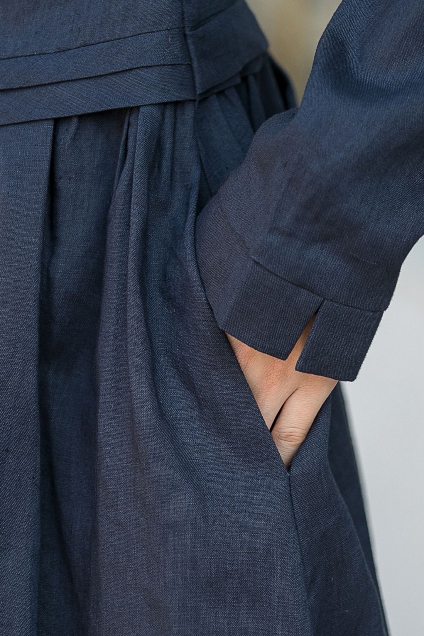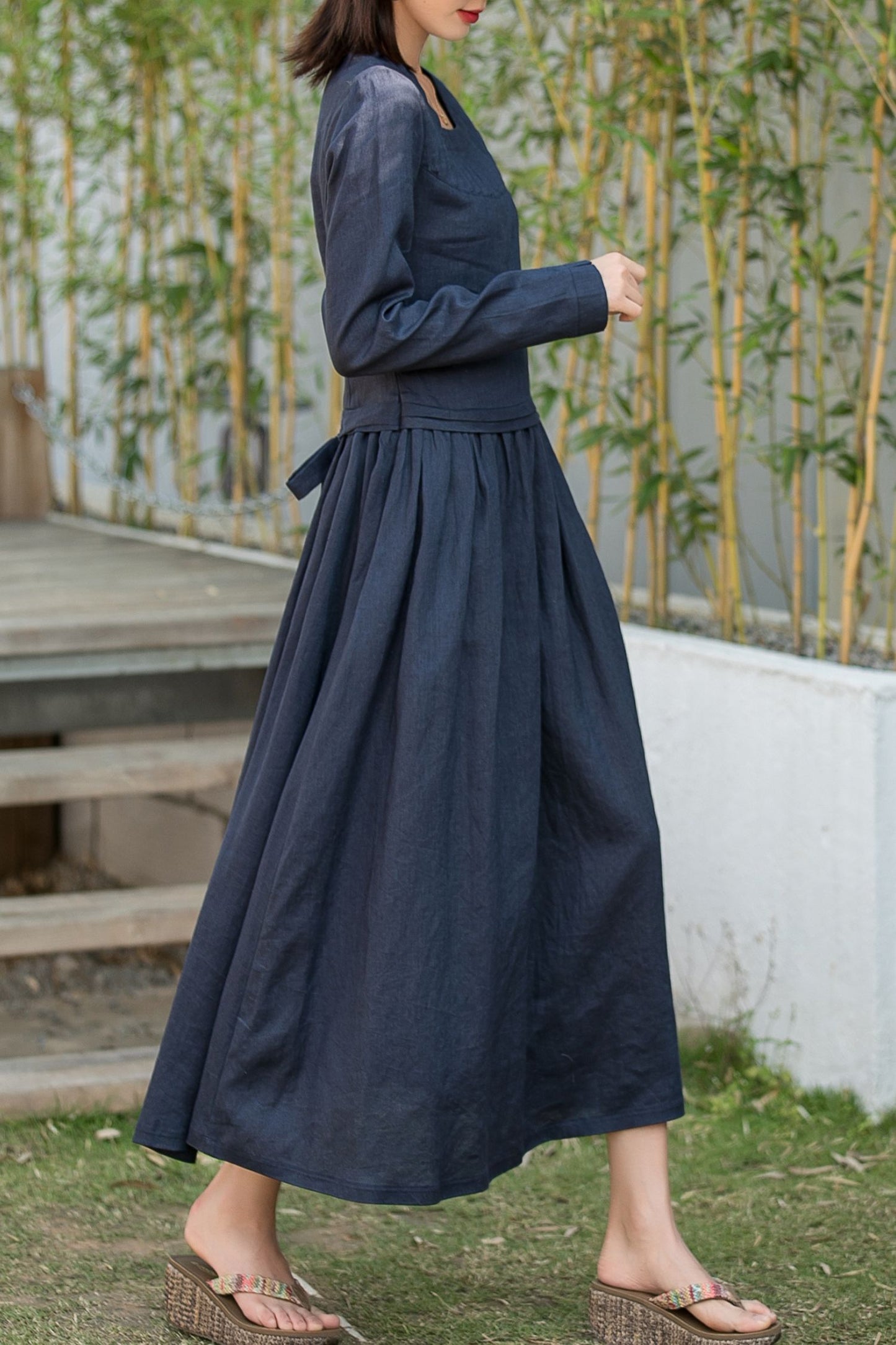 Get ready to turn heads in this maxi blue linen dress! Made with high-quality linen, this dress is both comfortable and stylish. The long sleeves and belt waist design adds a unique touch, making it perfect for any occasion. Don't miss out on this must-have addition to your wardrobe.